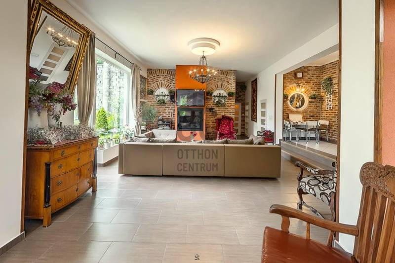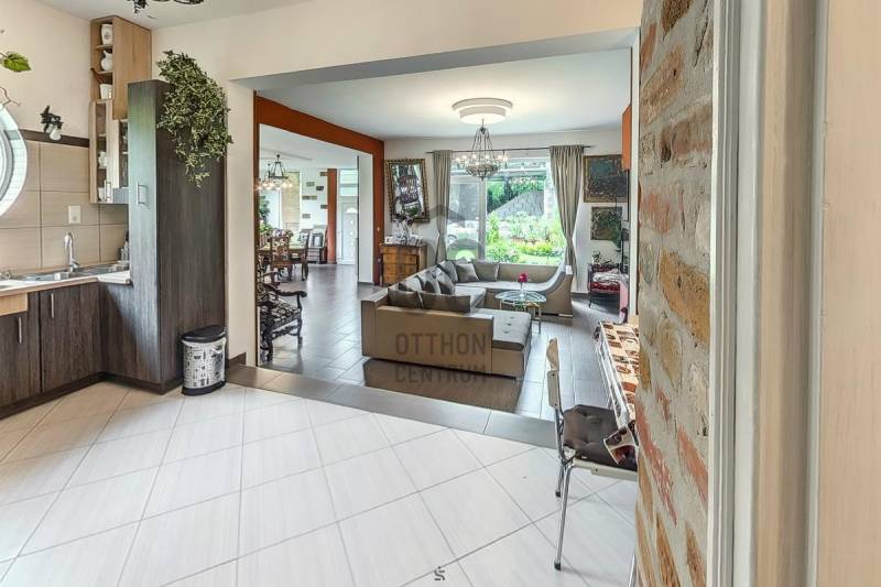 Eladó egy kétgenerációs családi ház, mely két család intim együttélésére kivállóan alkalmas.Érd, egyik legnívósabb illetve legdinamikusabban épülő helyén a Parkvárosban, eladásra kínálunk egy 10 éve épült, többgenerációs építésű családiházat. Az ingatlan meghitt hangulatát fokozza az őt körülvevő erdő és mediterrán jellegű növényzet, ahol több közismert személyiségnek illetve közszereplőnek is található az otthona. Továbbá a dinamikusan fejlődő rész annak köszönhető, hogy számos nagy villa, illetve projekt épülőben a környéken.A házról:Az előtérből, a család minden kényelmi igényét biztosító nagy nappali-étkezőbe érkezünk, amelyből az összes további szoba nyílik.A konyha, két lépcsőfoknak megfelelő szintkülönbséggel magasabban helyezkedik el.A reggeli ébredést követően, kávéját a közvetlen kertbe kilépve, virágok és a zöld gyep környezetében fogyaszthatja el.A hálószoba, a nagyméretű nyílászáróknak köszönhetően rendkívül világos.A háló szomszédságában van egy külön WC és kézmosó, szemben egy zuhanyzós fürdőszoba,valamint egy gardrób.A felső szintet egy külső lépcsőn közelíthetjük meg, ahol egy teljes nappali plusz 2 db. hálószoba, fürdőszoba - teljes lakószint került kialakításra, nagy terasszal. Ennek köszönhetően, akár két generáció is élhet nyugodtan egymás közelében, zavartalanul. Ennek a szintnek a kilátásra a zöld fenyvesekre nyíló panoráma. Az udvaron, egy nagy Tároló vagy (esetleg wellness helység), illetve 2 férőhelyes fedett kocsibeálló lett kialakítva, melynek tetején egy hangulatos tetőkert esetleg napozóterasz található,A háznak is van egy óriási tetőterasza az erdő ölelésében, csodálatos zöld panoráma, medence, sütögető és nyugalom várja a pihenni kívánó családtagokat és barátaikat.A ház mögöt teraszos telek található szintén remek kilátással a völgyre, amelyen a kertet tovább lehet bővíteni, alakítani. A ház intim az utcáról minimálisan lehet belátni.A ház jelenleg befejezésre vár, ugyanis a szigetelése megtörtént viszont a szín kiválasztása a leendő tulajdonosra vár.hívó szavak: zöldre nyíló panoráma, kertesház, nyugalom, kétgenerációs ház, frisslevegő, intim környezet. |