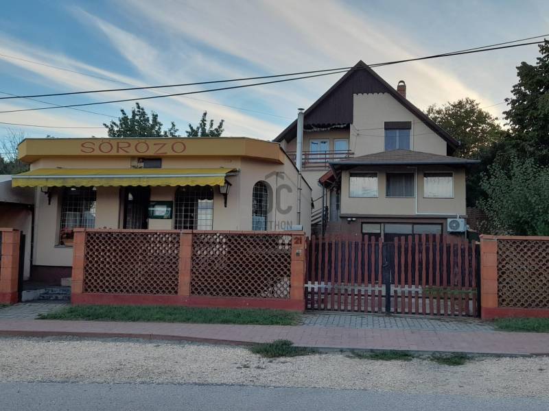Kivételes lehetőség! Ház üzlethelyiséggel.Jó műszaki és esztétikai állapotú, panorámás, 4 szobás, önálló családi ház, utcafrontra nyíló, különálló üzlethelyiséggel. Kiváló tájolású és elosztású, családi ház. Funkcionálisan minden igényt kielégítő otthon.Földszint: előszoba, tágas, világos nappali, konyha-étkező, nagy méretű közlekedő, fürdő, külön mellékhelyiség, szobaEmelet: tágas közlekedő, 2 szoba, fürdőszoba, loggia panorámás kilátással.Fűtése alapvetően gázkazánnal biztosított, azonban a költségtakarékosság jegyében hűtő-fűtő klímák kerültek beépítésre melyek a szigetelt házat télen is kellemesen felfűtik.A telek enyhén lejtős így a garázs és kazánház a lakótér alatt kapott helyet.A 960 m2 telken a 190nm nagyságú házon kívül található még egy, utcafrontra nyíló üzlethelyiség mely jelenleg sörözőként működik. Aszfaltozott utca, rendezett környezet, kellemes szomszédok.Per, teher, igénymentes. Ha az ingatlan felkeltette érdeklődését, vagy kérdése merülne fel, várom megkeresését telefonon! |