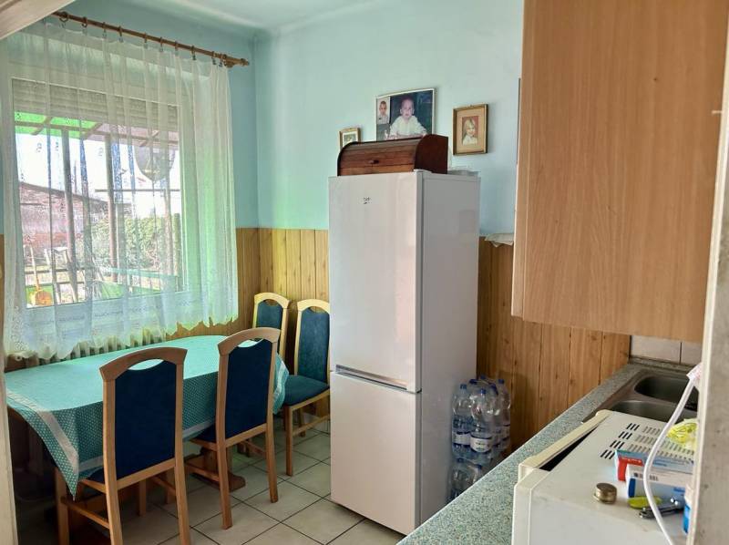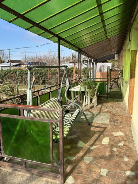 Soroksár Péteri majorban 2 szintes sorházi lakás, külön hatalmas kertrésszel eladó.Infrastruktúra: közelben buszmegálló, mellyel a város több központi része is könnyen elérhető.Újonnan átadott modern a játszótér az utca végében.Iskola, óvoda, bevásárlási lehetőség 1 km távolságon belül. Épület leírása:- 2 szintes tégla épület, szintenként 45-45 nm-el;- szintek közötti beton födém;- padlás szigetelés, pala tető;- teljes összközműves;- külön mérőórák;Lakás leírása:- földszint: nappali, konyha étkezővel, előszoba, fürdőszoba, lépcsőház;- emelet: 2 szoba, előtér- gázcírkó fűtés;- bútorozott konyha étkezővel;- alsó szinten műanyag nyílászárók redőnnyel;- felső szinten fa nyílászárók;- kádas fürdőszoba WC-vel.Sarok telek, mellékhelységekkel és saját, külön bejárattal rendelkező garázzsal.Hagyatéki ingatlan, ami teljes felújítást igényel ugyan, de a jelenlegi állapotában is lakható. Tarsásházi albetét, saját 749 nm kertrésszel, ami az alapító okiratban rögzítésre került.A felső szint, építési engedéllyel épült, de a használatbavételi engedély nem került beadásra a földhivatalhoz, így a térképszelvényen nem szerepel.Csendes, nyugodt családias, kertvárosi környezetben lévő ingatlant ajánlok azok részére, akik megunták a város \"zakatolását\" , és az otthonukban pihenésre vágynak, mindezt a főváros egyik kerületében, mindenhez közel. |