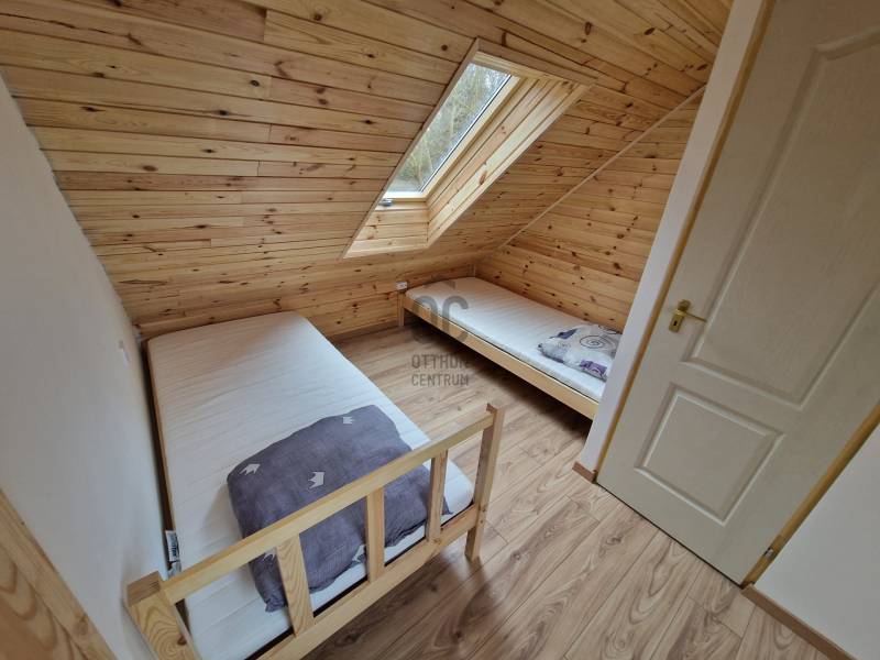 Debrecen déli ipari körzetének közelében, a CATL építkezéstől 7 km-re, kiadó egy csendes helyen lévő, 2024. márciusában megépített, 60 m2-es könnyűszerkezetes ház, új fürdőszobával, új konyhabútorral, 6 fő egyidejű elszállásolására alkalmasan. A terület erdőben található, a telken további építmények is vannak, többek között egy nagy méretű fedett közösségi tér, ahol étkezni, bográcsozni lehet. Több gépkocsi zárt telken belüli parkolására van lehetőség, az ár tartalmazza. |