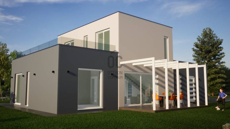 Mikepércs, új osztású részén épülő, 146 nm-es, 5 szobás, minimál stílusú, PASSZÍV ikerház eladó!Ingatlan paraméterei:- PASSZÍV ikerház, mely által a ház fenntartási költsége rendkívül alacsony- napelem biztosítja a ház energiaellátását- hőszivattyús fűtési rendszer padlófűtéssel- Porotherm 30 -as tégla 15;cm-és külső szigeteléssel- 3 rétegű hang és hőszigetelt nyílászárók- mennyezet hűtés-fűtés- egyedi külső megjelenés- nappali+4 különnyíló szoba- szobákhoz külön fürdőszoba tartozik, mely igény szerint még változtatható- csak a garázzsal kapcsolódnak- önálló 300 nm-es telekFöldszinten található nappali+ étkező egy légtérben, konyha, előtér, háztartási helyiség.Garázsból mely 21 nm-és, közvetlen bejárat a lakásba. Két szobához saját fürdőszoba tartozik.Nappaliból közvetlen kijárat a teraszra.Emeleti részen két különnyíló szoba található fürdőszobával.A szobákból kijárat a tetőteraszra. |