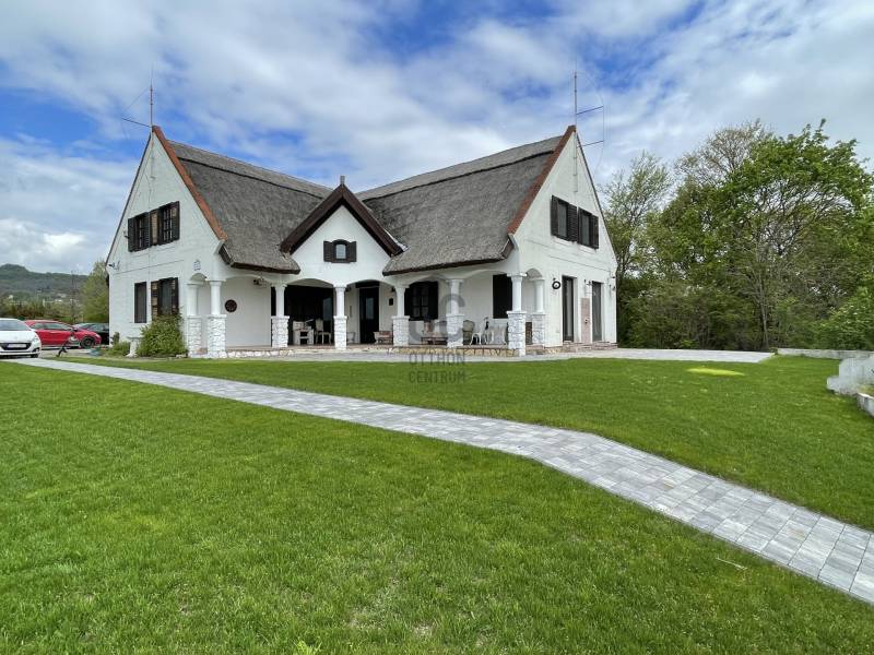 A VERANDA MAGAZIN 2008 JÚLIUSI CÍMLAPJÁNAK HÁZA !BALATONFELVIDÉKI GYÖNGYSZEM EGYEDI STÍLUSBAN !!!KIVÁLÓ BEFEKTETÉSI/ÜZLETI LEHETŐSÉG FALUSI TURIZMUSHOZ!KIZÁRÓLAGOS JOGÚ MEGBÍZÁS! CSAK AZ OTTHON CENTRUM KÍNÁLATÁBAN!Az ingatlan főbb jellemzői:-9 éve épült -az ingatlan a Tanúhegyek ölelésében , gyönyörű környzetben,szép kilátással a nyugalom szigetén található -a házhoz több mint 3 hektár terület tartozik ami még rengeteg lehetőséget rejt magában vagy egyszerűen csak biztosítja továbbra is a csendet és a nyugalmat -az ingatlanon kb 1 hektár van körbe kerítve,gondozva -a kertben öntöző redszer, kocsibeálló, kerti kiülő,gyermek játszótér és több gyümölcsfa is van -a házon minden ablak fából készült biztonsági üveggel szerelt,a nád fedés miatt speciális a NASA által kifejlesztett villámhárítók kerültek felszerelésre,kamarendszer van kiépítve a ház körül -a házban két féle fűtés rendszer is ki lett építeve.van elektreomos cirkó fűtés és ugyanez a rendszer üzemeltethető vegyes tűzelésű kazánnal is -a házban számtalan részlet egyedi,magyarországon nem beszerezhető elemeket rejt -az ingatlan pár évig vendégházként üzemelt,a falusi turizmus és Balaton Felvidék varázsa miatt az ingatlan vételára 6-8 év alatt megtérülhet !-az ingatlan jelen pillanatban kisebb ráfordítást igényel,hogy a fotókon látható állapotban legyen újra!Amennyiben felkeltettem érdeklődését és további kérdése van, hívjon bizalommal ! |