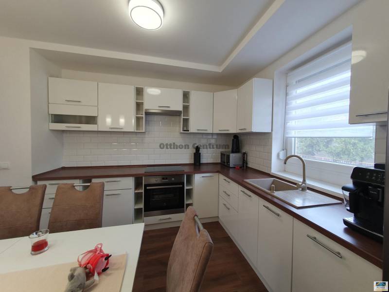 Önnek már nem kell felújítani - Ide csak költözni kell - Frissen felújított -Kedvező fenntartási költség.Családok részére ideális elosztású , hitelezhető .Mogyoród csendes, kertvárosi részén eladó egy 97,44 nm-es 3szoba + nappalis , teraszos , egyszintes, gázcirkó fűtésű családi ház, 617 nm-es összközműves telken.2022-ben a teljeskörű felújítás során új tetőszerkezetet és cserépfedést kapott.Műanyag nyílászárók kerültek beépítésre, teljes vízvezeték csere történt , a megújult fűtésrendszer gázcirkó üzemelésű, és az elektromos kábelek cseréje is teljeskörű.A ház fűtésére a jelenlegi támogatott (144köbméter/hó) gázmennyiség elegendő.A teljes ház alatt egy szuterén található , ami felújítandó és nagyon sok lehetőséget kínál.A ház külső homlokzatának csinosítása az új tulajdonos feladata lesz.Általános iskola, óvoda, gyógyszertár, orvosi rendelő, boltok néhány perc sétával elérhetőek.A legközelebbi buszmegálló 3 perc sétára ,a HÉV megálló kb 2 km-re található. |