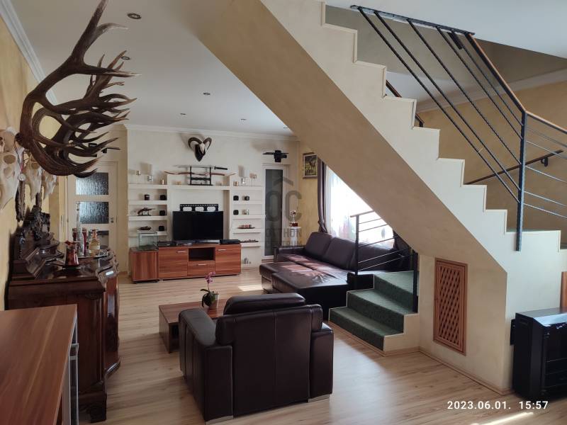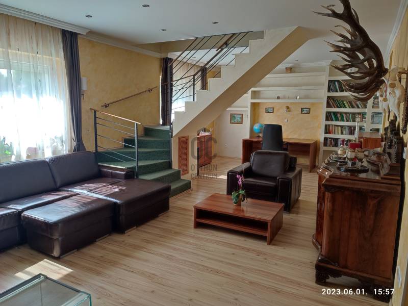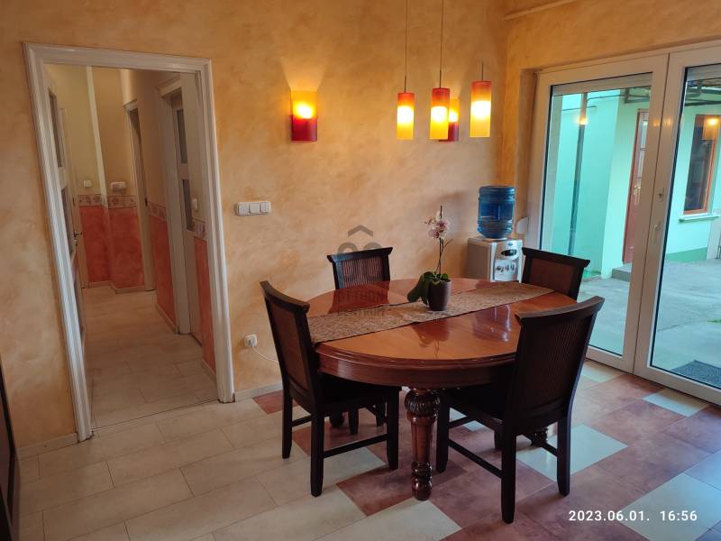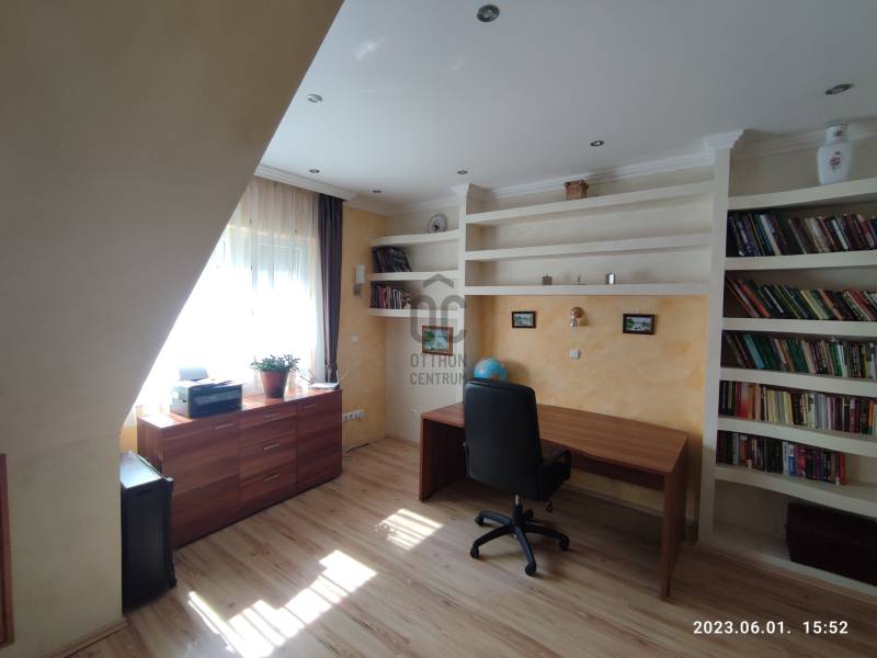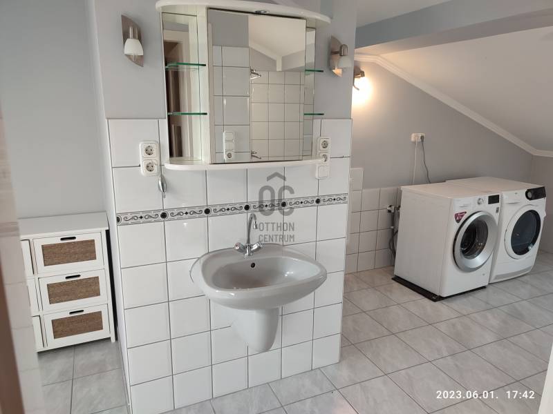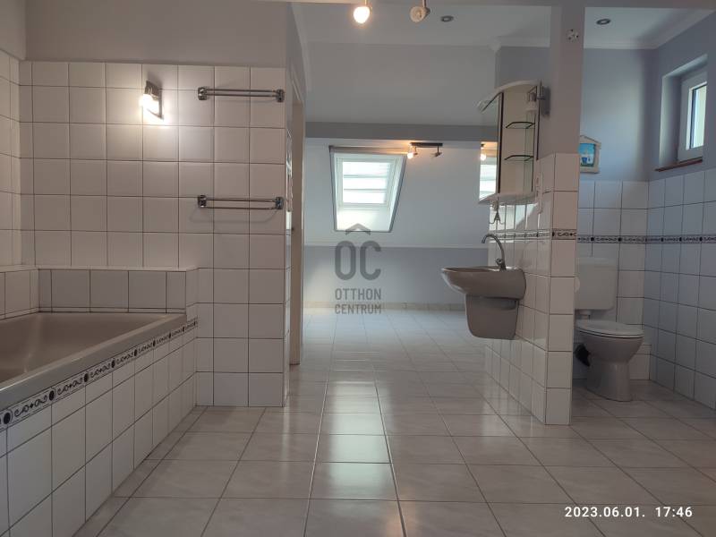 Baja kedvelt alvégi részén kínálunk eladásra egy 605 m2-es telken épült kétszintes, 172 m2-es, 4 szobás, kitűnő állapotban lévő családi házat. A földszinten konyha-étkező teraszkapcsolattal, kamra, nappali, zuhanyzós fürdőszoba szaunával és egy külön WC-kézmosóval került kialakításra. Az emeleten 3 szépen benapozott hálószoba és egy tágas, világos fürdőszoba-mosókonyha-WC szolgálja a lakók kényelmét. Fűtése: padlófűtés, melynek működését egy Baxi-típusú gázkazán biztosítja. A meleg vizet külön gázbojler szolgáltatja. A nyári melegben nagy teljesítményű klíma (hűtő-fűtő) gondoskodik a kellemes hőmérsékletről. Az épület teljes körűen szigetelt, a korszerű műanyag nyílászárók redőnnyel és szúnyoghálóval vannak ellátva. A szépen parkosított udvar automata öntözőrendszerrel, csapadékelvezető csatornával van kialakítva. Az udvaron fedett terasz, fedett grillező, medence és jakuzzi ad lehetőséget a pihenésre, kikapcsolódásra. A jelenleg tárolóknak és kondiszobának helyet adó, ~ 97 m2-es melléképület műszaki kialakítását tekintve, akár egy önálló lakásként is használható. Az épület részben szigetelésre került, nyílászárói korszerűek, 3 féle fűtési lehetőség (fatüzelésű kandalló, hűtő-fűtő klíma és gázkonvektor) is adott a helyiségekben. A ház előtt kényelmes, akár 4 autó parkolására alkalmas terület, a telken belül az épület bejáratánál egy tágas, fedett gépkocsibeálló került kialakításra.Az ingatlan tehermentes, 3 hónapos határidővel birtokba vehető!Igény esetén hitel, CSOK és biztosítás díjmentes ügyintézésével is rendelkezésére állunk!További kérdés, megtekintési szándék esetén keressen bizalommal! |