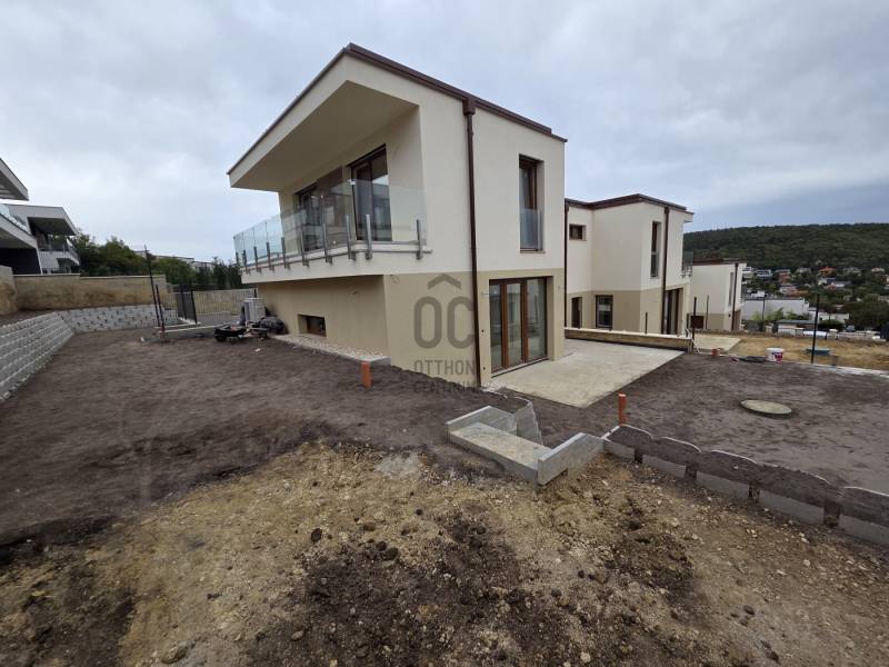 ARANYHEGYI VILLAPARK ÖRÖK PANORÁMÁVALEnergiatakarékos luxus ikerházak örök panorámával, GARÁZZSAL és további felszíni parkolókkal!A telket az Aranyhegy egyik legizgalmasabb részén található, ami kivételes lehetőségeket kínál.Egy karnyújtásnyira a várostól, mégis a természet közelében. Ez egy olyan közeg, ahol az intimitás adott, az okos otthon természetes, a luxus pedig garantált.Amikor megállsz majd a kapu előtt, a biztonságirendszer azonosít és beenged, a behajtón intelligens fények kísérnek végig a parkosított út mentén, hogy aztán egy igazi ékszerdoboz fogadjon a te igényeid szerint.Most pedig vesszünk el a részletekben.•Aranyhegyen új építésű prémium minőségű új ház, örök panorámával, nagy erkélyekkel, kertkapcsolattal és 1 állásos garázzsal rendelkezik.•Földszint amerikai konyhás nappalival dolgozó vagy hálószobával kerül kialakításra.•Kiszolgáló helyiségként megtalálható előtér, fürdő, külön WC, gardrób és háztartási helyiség.•Az emeleten 3 hálószoba és további 2 tágas fürdő áll a rendelkezésünkre.•Minden szoba erkélykapcsolatos, ahonnan csodás panoráma tárul elénk.•A házban található olyan fürdő, aminek kertkapcsolata van, így későbbiekben ki lehet alakítani egy kis wellness sarkot oly módon, hogy a fürdőbe szaunát építünk, a kertbe pedig jakuzzi-t telepítünk.•Jelenleg az alaprajzi elrendezés, burkolatok, falszínek még saját igényeire szabható!•Építés megkezdése: 2024. év I. negyedév•Ház átadása: PÁR HÉTEN BELÜLMűszaki tartalomSzerkezet•Vasbeton sávalap és lemezalap;•Vázkerámia fő és válasz falazatok;•Monolit vasbeton közbenső és zárófödém;Nyílászárók•3 rétegű üvegezésű, több légkamrás homlokzati oldalon aranytölgy színű műanyag•Motoros mozgatású alumínium redőnyök ELŐKÉSZÍTÉSE! (hőszigetelt redőnytok beépítése és elektromos betáp kiépítése);•CPL fóliás furatolt faforgácslap, teli kivitel 150.000,-Ft+ÁFA-ig.Gépészet•Az épület hőellátását levegő-víz hőszivattyú biztosítja;•Hőleadók központi mennyezet fűtés-hűtés és padlófűtés;•Fűtés-hűtés vezérlése helyiségszinten szobatermosztátokkal történik, távoli eléréssel online kapcsolat esetén;•Fürdőkbe kiegészítő fűtésként törölközőszárítós radiátor kerül elhelyezésre;•Használati melegvíz készítését villanybojler állítja elő;•Erős- és gyengeáramú hálózat•Lakás önálló napszakos és H tarifás mérővel rendelkezik;•Teljesítmény 3 x 20A;•Kaputelefon;•Alapfokú riasztórendszer telepítése földszinten, mozgás- és nyitásérzékelőkkel;•Kamerarendszer előkészítés;•Kábeltévé és internet előkészítés;•Villanysütő és főzőlap kiállás;•Fűtött garázslejáró;•Napelem előkészítése.Burkolatok•Hidegburkolatok 7.000,-Ft+ÁFA/m2•Melegburkolatok 6.000,-Ft+ÁFA/m2Alapáron felül rendelhető tételek igény esetén:Szauna telepítése;Jakuzzi telepítése;Kertépítés;Kert burkolatok építése;Kertvilágítás kiépítéseBiztonsági rendszerek telepítése (beléptető, riasztó és kamerarendszerek);Okosotthon telepítése;Szellőztető rendszer kiépítése;Napelemes rendszer telepítése;Stb.Élje át azt a luxust amit a hely és új otthona adhat. Várom hívását. |
