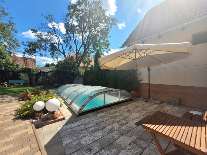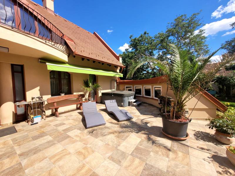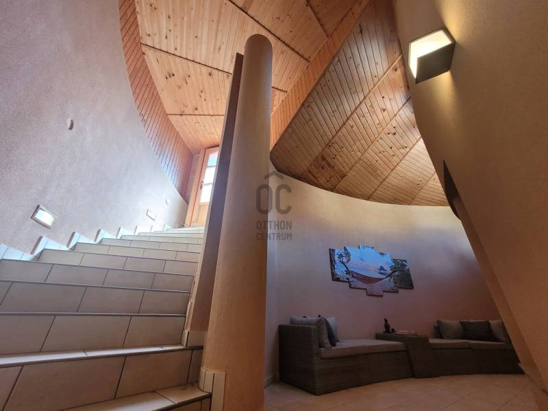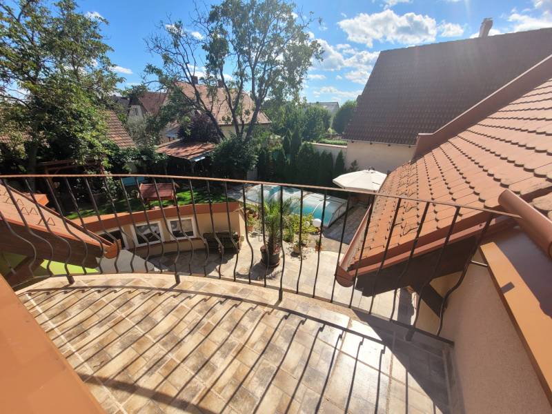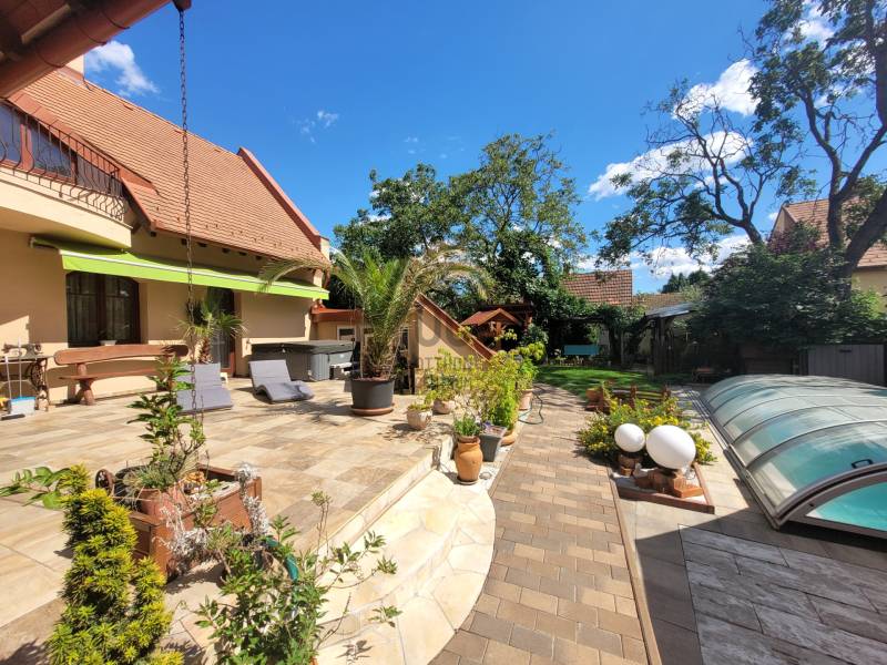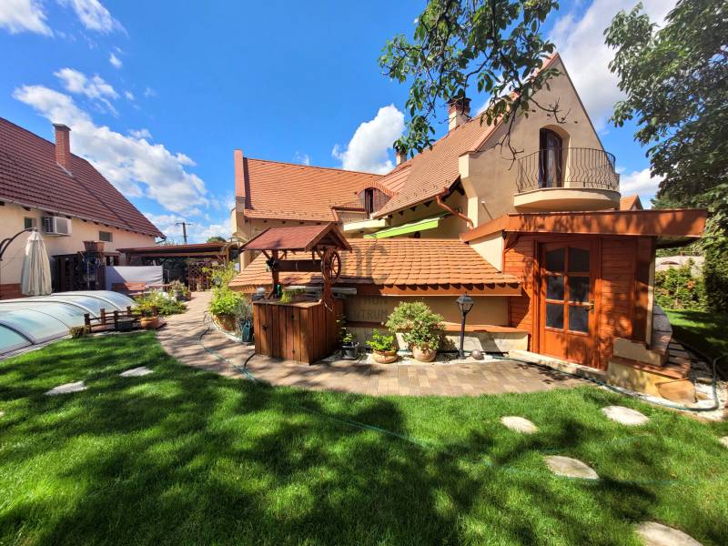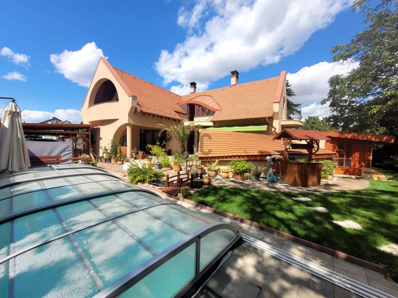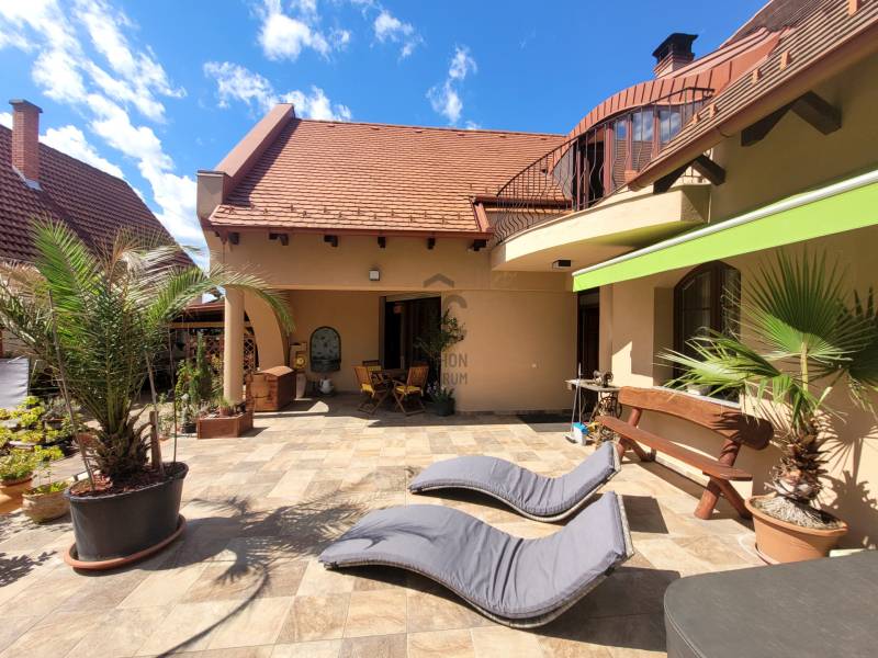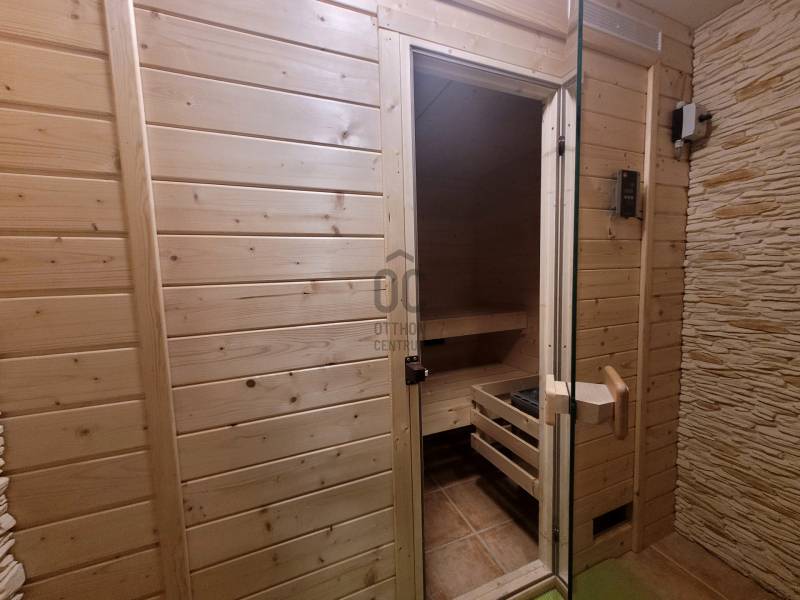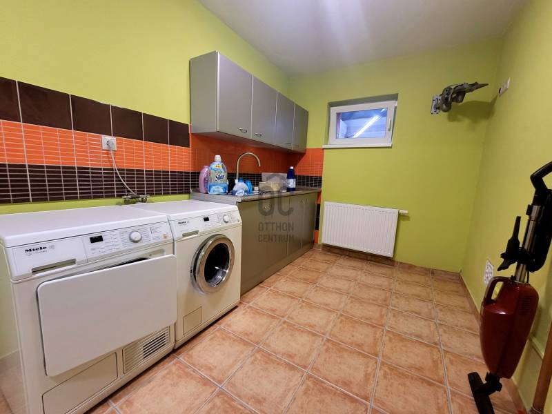 Szombathely kimagaslóan kedvelt városrészén, Herényben kínálunk eladásra egy téglaépítésű, 400 nm-es, 5 szoba + nappalival és 4 fürdőszobával rendelkező családi házat.Az ingatlan kiváló lehetőséget nyújt több generáció együttélésére, kisebb átgondolással a szintek, akár teljesen elkülöníthetőek egymástól, hiszen mind a fsz.-emeleten, mind a szuterén szinten rendelkezésre áll minden ahhoz, hogy külön lakrészként funkcionálhasson.A ház minőségi anyagok felhasználásával és rendkívül praktikus, egyedi tervezéssel került megépítésre 2006-ban. Energetikai besorolása: CC, a 44-es Porotherm falazatnak, szigetelésnek, a minőségi nyílászáróknak és az egész ház precíz kivitelezésének köszönhetően alacsony a fenntartási költsége. Az otthon melegét gázkazán biztosítja radiátoros hőleadással, alternatív megoldás lehet még a vegyestüzelésű kazán és a kandalló. A földszinten az étkező-nappali-közlekedő alatt padlófűtés húzódik.Élhető, tágas terek és kényelmi szempontokból is átgondolt kivitelezés jellemzi az egész ingatlant. Leendő tulajdonosa az év bármely szakaszában kikapcsolódhat anélkül, hogy kitenné a lábát otthonából: a 712 nm-es kert igazán intim, varázslatos hangulatot áraszt, itt rendelkezésre áll jakuzzi (5 személyes), fedett medence (6*3 m-es és 1,5 m mély+hangulatvilágítás), hatalmas terasz (44,06 nm), melyen élvezhetjük a nyári napsütést, vagy kiülve akár elfogyaszthatjuk reggelinket madárcsicsergés kíséretében. Borongósabb napokon szauna, szolárium és a nappaliban elhelyezett kandalló tüze segíthet kizökkenni a szürke hétköznapokból.További lehetőséget rejt magában a szuterén szinten található un. hobby szoba (40,70 nm), mely csak arra vár, hogy következő tulajdonosa megálmodja: legyen az saját szórakoztatásuk, hobbijuk rendelkezésére egy edzőterem, akár wellness részleg; vagy vállalkozásból adódóan iroda, tárgyalóhelyiség, szépségszalon, egyéb üzlethelyiség; akár egy rendelő, vagy épp műhely...bármi megvalósítható!!Több autó számára is kényelmes parkolást biztosít egy fedett kocsibeálló és egy dupla garázs (36 nm), mely fűthető -a felhajtó is.Szinte a teljes berendezéssel együtt az Öné lehet ez az igazán különleges és magával ragadó családi ház, ahol garantáltan az egész családja jól fogja érezni magát! Jöjjön el és tekintsük meg együtt!Hitelre van szüksége? Az Otthon Centrum az ország egyik legnagyobb és legmegbízhatóbb hitelközvetítőjeként, teljes körű és díjmentes hitel ügyintézéssel, biztosításkötéssel áll rendelkezésére! Kérje személyre szabott ajánlatunkat Kollégáinktól!Válassza ki az Önnek legmegfelelőbbet!Vas vármegye családi házVas vármegye eladó családi házSzombathely családi házSzombathely eladó családi házSzombathely igényes családi házSzombathely családi ház medence |