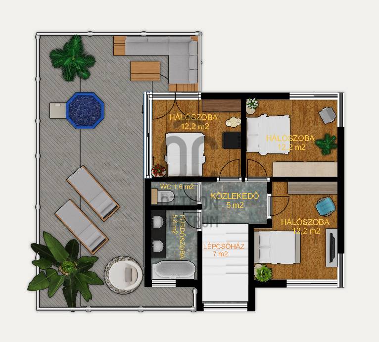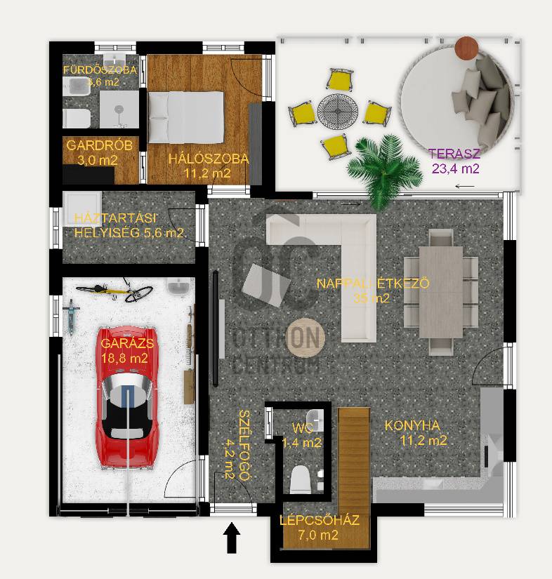 Székesfehérváron Öreghegy közkedvelt részén eladásra kínálunk ÚJ ÉPÍTÉSŰ, 150 m2-es, 5 szobás, luxus kivitelezésű önálló családi OKOS házakat. A privát lakóparkban 6 ház épül, garázzsal, teraszokkal, kertkapcsolattal.A modern, kétszintes lakóépület szintjei, praktikus belső helyiségkiosztása alkalmazkodik a telek és a kilátás viszonyaihoz.Az alsó szinten a grandiózus terekkel rendelkező étkező-nappali-konyha található, továbbiakban beépített gardrób, fürdőszoba, wc, hálószoba és a szerszámok és kerékpárok tárolására alkalmas garázs lett kialakítva. A kilátást nyújtó felső szinten kaptak helyet a hálószobák egy fürdőszobával és mellékhelyiséggel kiegészítve. Ezenkivül minden szinten kényelemes tágas teraszok találhatóak.Az ingatlan alsó szintjén szauna kialakítására is van lehetőség.Az új építésű kimagaslóan energiatakarékos családi ház, az Incelor Kft. által forgalmazott Loxone Gold okosító otthon eszközökkel és vezérlőkkel lesznek felszerelve.OKOS OTTHON LEÍRÁS-érintő paneles kapcsolók, amelyek több funkcióval rendelkeznek, a tulajdonos igényei szerint állíthatóak és magába foglalja a termosztátot- minden helyiségben jelenlét érzékelő, amelynek köszönhetően programozható a hűtés, fűtés, világítás és a redőnyök- bejáratnál rendszerkezelő fali táblagép és ingyenesen használható mobil alkalmazás- a jelenlét érzékelők riasztó funkcióval is felokosíthatók- ezen belül bármilyen elektromos eszköz hozzá csatlakoztatható a rendszerhez, így a vevő folyamatosan fejlesztheti saját igényei szerint.MŰSZAKI PARAMÉTEREKMelegvíz és fűtés módja: -levegő-víz rendszerű hőszivattyú, a hő leadás módja padlófűtés és falfűtés,ezenkívül gázkazán is beépítésre kerül a hőszivattyú mellett.Hűtés: -beépített mennyezeti klímaANYAGOK ISMERTETÉSEAlapozás: -vasbeton alap, talajmechanikai és alapozási terv szerint.Lábazat: -vasbeton helyszíni kibetonozással, hőszigetelése extrudált lemezzel.Vízszigetelés: -vasalt aljzatbetonra vízszintesen teljes felületen ragasztott bitumenes lemeztalajnedvesség elleni szigetelés készül.Teherhordó falazat: -vázkerámia 30-as falazóblokk rendszerrel készül.Áthidalók: -előregyártottak beépítésével, ill. mon. vasbeton áthidalók, redőny szekrény kialakítással.Koszorúk: -monolit vasbetonból, extrudált lemez elé dübelezéssel.Födémszerkezet: -monolit vb. födém, felülről pvc csapadék elleni szigeteléssel fedve, alulról vakolva ésgipszkarton álmennyezet.Bádogos munka: -alumínium lemez hajlatbádogozás, ablakkönyöklő, és esőcsatorna készül.Válaszfalak: -vázkerámia 10 cm-es válaszfalelemekből 2 oldali vakolattal.Nyílászárók: -műanyag profilokból, hőszigetelő üvegezéssel készülő ablakok és homlokzati nyílászárók,a belső ajtók típus szerkezetek, lazúros mázolással kerülnek beépítésre.KÖRNYÉKCsendes, családi házas, kertvárosias környezet.MEGKÖZELÍTHETŐSÉGAz M7-es autópálya 4 perc, 23, 23E, 25, 31, 31E jelű autóbuszok buszmegállója 400 m-en belül elérhető.Hitelre van szüksége? Az Otthon Centrumnál bankfüggetlen tanácsadó kollégánk, díjmentes bank semleges hitelügyintézéssel áll rendelkezésére.Segítségére lesz az önnek legmegfelelőbb konstrukció kiválasztásában.További információért és megtekintési időpontért hívjon bizalommal a hét bármely napján! |