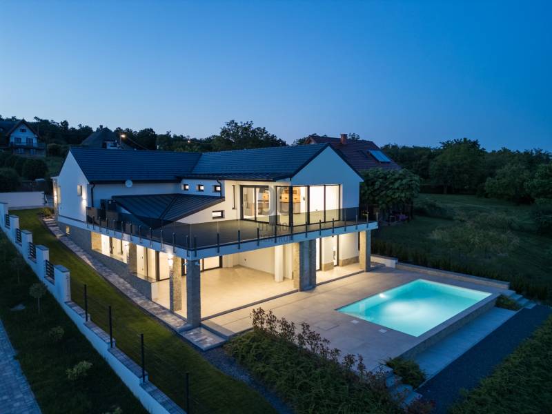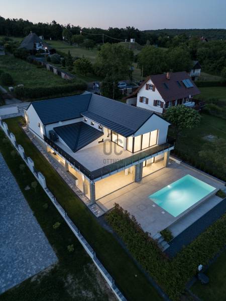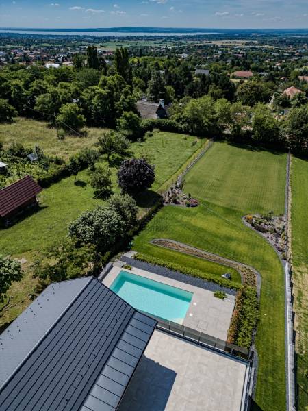KIEMELET AJÁNAT , CSAK AZ OTTHON CENTRUM KÍNÁLATÁBAN!Eladásra kínálok Cserszegtomaj impozáns , festői szépségű környezetében egy igazán egyedi adottságú, dupla teraszos , 316 m²-es, exkluzív okos otthont , magával ragadó pazar panorámával a Balatonra és Hévízre ! A Balatonnak van valami különleges elbűvölő, vonzereje, amitől megbékél az ember lelke. S ahol a legpörgősebb urbanista is képes lelassulni kiülve egy panorámás teraszra, belefeledkezve a látványba, illatokba. Mindezen lehengerlő környezethez párosul a legmodernebb technikákkal épült , minden igényt kielégítő ,kivételes adottságú családi ház. Ez a ház tökéletes választás mindazoknak, akik értékelik a kényelmet és a luxust. Az ingatlan Loxon rendszerrel van felszerelve, ami optimalizálja magát a házat ,mellyel kényelmi funkciója révén családja igényeire szabva vezérelheti , teheti komfortossá okos otthonát.A LUXUS INGATLAN FŐBB JELLEMZŐI:- **Méret**: 316 m2- **Telek méret**: 2026 m2- **Építés éve**:2023-**Falazat/Szigetelés/ Fődém**: alapzat terasz felől vasalt síklemez, B30 téglafalak, első födém vasbeton, második fafödém.Az aljzatok 12 cm lépésálló szigeteléssel ellátva, fafödémnél gipszkartonos kialakítás van, 50 cm légréssel és ezt 30 cm üveggyapot-szigetelés követi. A külső falak 15 cm grafit szigetelésűek, a föld alatt lévő falak vízszigetelve lettek 2 rétegben és 10 cm XPS-szigetelve. A tető héjazata beton cserép és részben korcolt bádog - **Loxon okosházrendszer**: Minden helyiség hűtési-fűtési igényét figyeli, egyedi hőfokszabályzást biztosítva.- **Fűtés /hűtés**: Hot Jet levegő hőszivattyú (14-19,6 kW), padlófűtés mindenhol (kivéve a kamrát). Hűtés Fan-Coil rendszerrel: konyha-étkező mennyezetbe épített, nappali falba épített, hálószoba mennyezetbe épített, többi hálószoba parapetes.- **Okos érintős kapcsolók**: Világítás, redőnyvezérlés, hőmérséklet- és páratartalom mérés, hangosítás, internetrádió, riasztó élesítés, különböző érintésekre többfajta parancs.- **Jelenlétérzékelők**: Automatikus lámpakapcsolás este, riasztó érzékelő funkció, mozgásnaplózás (kikapcsolható).- **Nyílászárók**: Kömmerling 76 háromrétegű üvegezés, nyitásérzékelő, aluminium redőnyök Somfy motorral, Loxon rendszer vezérléssel- **Helios légkezelő**: Friss levegő ellátás, légelszívás fürdőszobákból és WC-ből, légbeömlés a lakótérbe. Intenzív, otthoni vagy távozó módozat.- **Központi porszívó**: Csatlakozási pontok a vendégszobában, konyha-étkezőben, nappaliban, hálószobában, gyerekszobákban.- **Konyha**: Átgondolt kialakítás, kamra kapcsolatos. AEG márkájú gépek (mosogatógép, sütő, mikró, tűzhely, melegen tartó fiók), Liebherr beépített hűtő, Cata páraelszívó távirányítóval.- **Hangosítás**: Konyha-étkező, alsó kinti fedett terasz, medence felöli oldal, szauna. Internetrádió, Spotify, könyvtár, lejátszási lista, hangosbemondó funkció.- **Fűtött tükrök**: Alsó hálószoba fürdő, szauna fürdő, párakialakulás ellen.- **Szauna**: 6 személyes finn szauna fényterápiás kialakítással.- **Gépészeti helyiség**: Vízlágyító, központi porszívó főegység, légkezelő egység, IT szekrény, 500 l használati melegvíz puffertartály, 500 l hűtés-fűtés puffertartály, Hot Jet hőszivattyú beltéri egysége (távoli hozzáférés, hibaelhárítás).- **Biztonság**: Loxon rendszer, kamerarendszer.- **Medence**: 4 x 8 méteres fóliázott medence.- **Extrák:**A házhoz tartozik egy kényelmes, kétállásos garázs elektromos autótöltő előkészítéssel. A gépészeti előszobából közvetlenül elérhető a fedett terasz, mely padlófűtéssel van előkészítve, így télikertként is használható. A medence részhez tartozik egy napozóterasz és egy kültéri zuhanyzó, melyek tökéletesek a nyári pihenéshez és kikapcsolódáshoz. Az alsó részt kintről mindkét irányból meg lehet közelíteni, így biztosítva a kényelmes hozzáférést.-**További kényelem:**A ház teljesen parkosított kerttel rendelkezik, automata öntözőrendszerrel, valamint egy Husqvarna AM430x Nera robotfűnyíróval, mely a gyep tökéletes állapotát biztosítja. Az ingatlan bútorozott helységei között megtalálható a konyha, kamra, gardróbok, fürdőszobák és a mosókonyha is.AMENNYIBEN FELKELTETTE ÉRDEKLŐDÉSÉT EZ AZ IGAZÁN EGYEDÜLÁLLÓ ÉKSZERDOBOZ AZ ELADÓSORBAN LÉVŐ INGATLANOK PIACÁN, VÁROM HÍVÁSÁT AZ ORSZÁG LEGNAGYOBB ÉS LEGELISMERTEBB INGATLANKÖZVETÍTŐ HÁLÓZATA NEVÉBEN! |