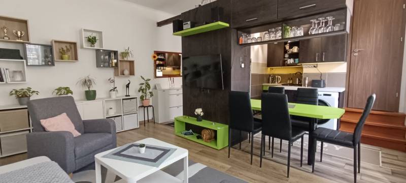 Pécs-Belvárosban, a Hungária úton eladó 4 lakásos társasházban egy 62 m2-es, 1. emeleti 2 szoba+ nappali-étkezős téglalakás.A lakás nettó alapterülete 62m2, melyet egy belső zárt udvarról lehet megközelíteni és tartozik hozzá egy 9m2 méretű saját pince. Parkolás biztosított a lakáshoz.Az lakás elrendezés nagyon jó, minden helységet külön lehet megközelíteni. Az előtérből nyílik egy amerikai konyhás nappali étkezővel, majd ezt követi két különnyíló szoba és a fürdőszoba.A lakás 4 éve teljesen fel lett újítva, ebbe bele tartozik a teljes villanyhálózat, víz, illetve szennyvízcsövek, új nyílászárók bejárati-beltéri ajtók, radiátorok, hideg és meleg burkolatok egyaránt és a konyhabútor cseréje. Fűtésről és a melegvízről gázkazán gondoskodik.A tető szintén fel lett újítva, kapott új léceket és fedést. A lépcsőház felújítása folyamatban van, festés és bejárati ajtó csere várható.Parkoláshoz saját udvari beálló van, de garázs bérlés is megoldható.Lokációját tekintve remek helyen van, mind a Széchenyi Tér, mind pedig a POTE 5-10 perc alatt megközelíthető. Közelben buszmegálló, gyógyszertár, iskola, óvoda, élelmiszerbolt megtalálható.Ha szeretne többet megtudni erről az ingatlanról, vagy bármilyen kérdése van az ingatlanpiaccal kapcsolatban, forduljon hozzánk bizalommal! Ügyfélszolgálatunk mindig készen áll arra, hogy segítsen a legjobb döntések meghozatalában. |