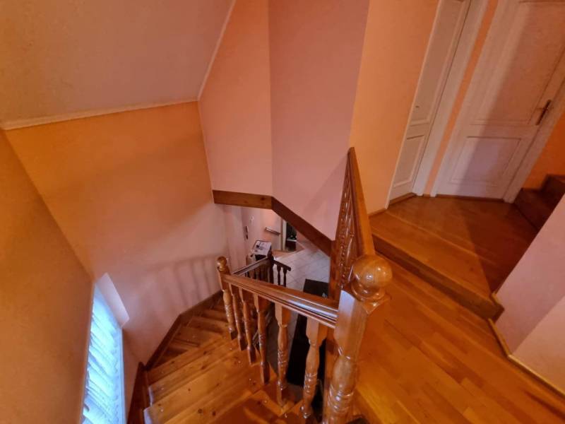 Több generációs ház Solymár központjához közel, mégis kis forgalmú csendes mellékutcában!A 388 nm lakófelülettel rendelkező ház alsó szintjén a 60 nm-es két állásos garázs mögött előszoba ,egy szoba, konyha, fürdőszoba, mosókonyha, zuhanyzó, wc épült.A fölötte lévő szinten nappali-étkező-konyha hangulatos kandallóval, teraszkapcsolattal, mosdó+wc, gardrób és szauna került kialakításra.Az emeleten 4 szoba, 2 fürdőszoba, egy kádas és egy zuhanyzós található.Az épület rendkívül masszív, 1988- ban poroton téglából épült 3 cm-es es kent szigeteléssel és a ház 2000- ben fel lett újítva. A fa nyílászárók hőszigetelő üvegezéssel, redőnnyel és szúnyoghálóval szereltek.Az otthon melegét egy Vaillant kondenzációs kazán biztosítja, a rezsi alacsony! Légkondícionáló van.A kert igazi paradicsom! A nappali teraszával szemben egy 4x7 méteres, 1,4 m mély fűthető medence van, ahol kora nyártól késő őszig rengeteg időt tölt a család.A medence melletti faházban teljesen felszerelt nyárikonyha-étkező található gáztűzhellyel, mikróval,mosogatóval, mosogatógéppel, hűtőszekrénnyel, TV-vel.A gyönyörűen parkosított kert jól körbenapozott, nagy része füves, körben igényesen bokrokkal beültetve , de egy kis veteményes kert is kialakításra került.A garázs előtt térköves autóbeálló van, ahol két- három autó is elfér.A közlekedés kiváló, a buszmegálló gyalog elérhető, a vasútállomás kocsival vagy busszal csak néhány percre van. Budapest belvárosa 25 perc vonattal!Ha felkeltettem érdeklődését jöjjön el és tekintse meg velem ezt az ingatlant akár hétvégén is! :)Hiteligény esetén irodánk ingyenes hitel tanácsadással segíti ügyfeleit!Várom hívását!Lengyel Katalin |
