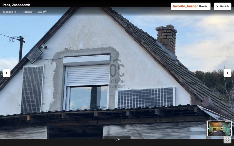 Eladó Pécs-Zsebdombon, egy 32 nm-es, tégla építésű művelés alól kivont zártkerti ingatlan. Az ingatlan 750 nm-es telken épült Az ingatlan területére csak az áram van bevezetve az ivóvizet telken található fúrtkút biztosítja, fűtése elektromos, nyílászárói hőszigetelt műanyagok, melyek redőnnyel vannak felszerelve. Az ingatlan nyugodt csendes környezetbe található, szomszédba lakó illetve ugyan ilyen zárt kerti ingatlanok találhatóak. |