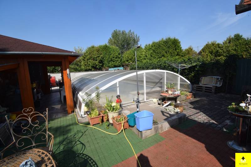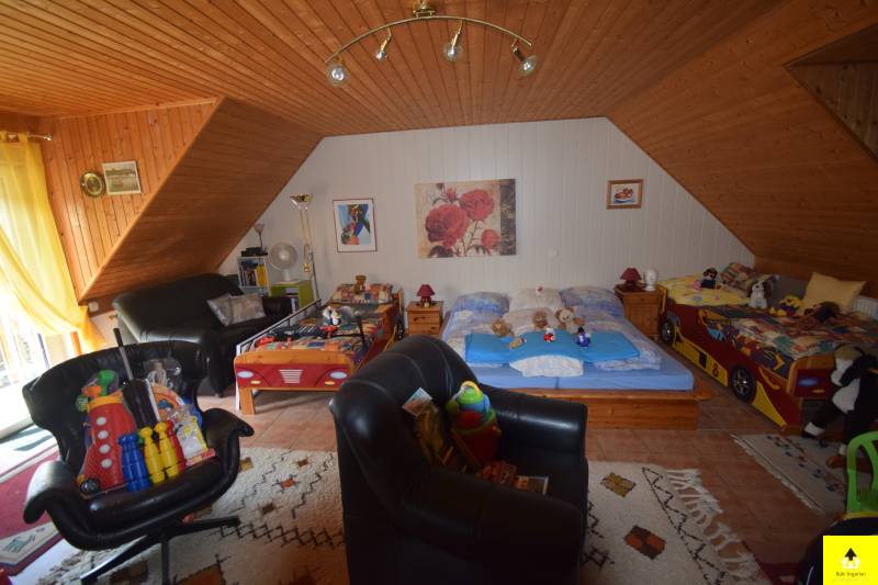 Az osztrák határ közelében, Bőben csendes, nyugodt kis település zsákutcájában, kiváló állapotú családi ház eladó. A településen óvoda és iskola is működik.Az épület 1998-ban kapott lakhatási engedélyt. Építése minőségi, korszerű anyagok felhasználásával történt. Műanyag nyílászárói hőszigeteltek és az ablakok redőnnyel szereltek. Az ingatlan helyiségeinek az elosztása nagyon kényelmes és praktikus, a terei tágasak és világosak.A 160 m2-es alsó szinten kialakításra került egy tágas nappali, amit egy egyedi cserépkályha tesz hangulatossá, egy étkező, egy kényelmes konyha, egy kamra, 2 hálószoba és mindkettőhöz tartozik zuhanyzó wc-vel, egy külön vendég wc és egy szélfogó. Ezen a szinten található egy 23 m2-es teraszra, mely a nappaliból is megközelíthető, valamint egy két állásos 35 m2-es garázs.A felső szint 118 m2-es, ami kialakításának köszönhetően akár önálló lakrésszé alakítható. Ezen a szinten található egy nagy konyha-étkező, egy 32 m2-es és 27 m2 hálószoba, mindkettőhöz saját fürdőszoba és erkély is tartozik.A ház fűtését kondenzációs gázkazán biztosítja, hűtéséről pedig klímaberendezés gondoskodik.Az ingatlan ideális méretű 1360 m2-es telken helyezkedik el. A kertben 32 m2 vízfelületű medence, egy pihenőház, egy kút, egy pici kerti tó, gyümölcsfák és gondozott dísznövények találhatóak.A telekre méreténél fogva és elhelyezkedésének köszönhetően akár még egy önálló családi ház építhető, külön bejárattal és külön közművekkel.Az ingatlan ára euróban fizetendő.Az ingatlan ára: 300.000 Euro |