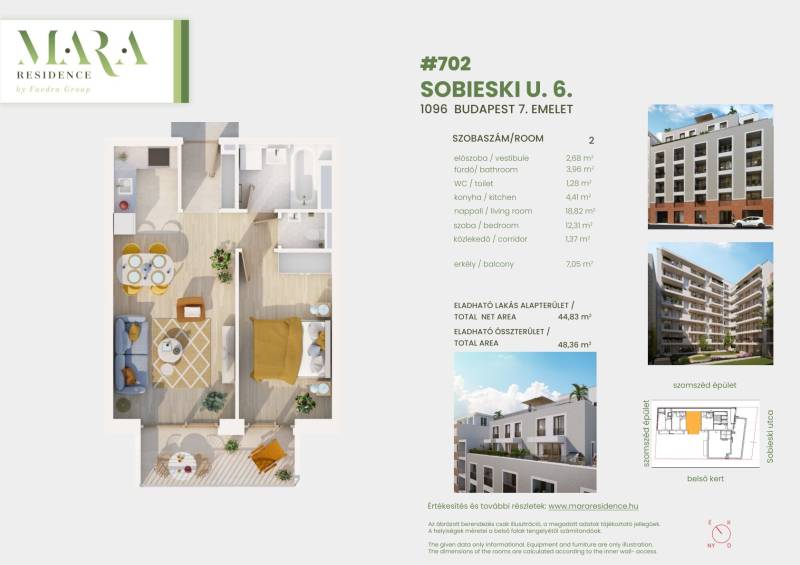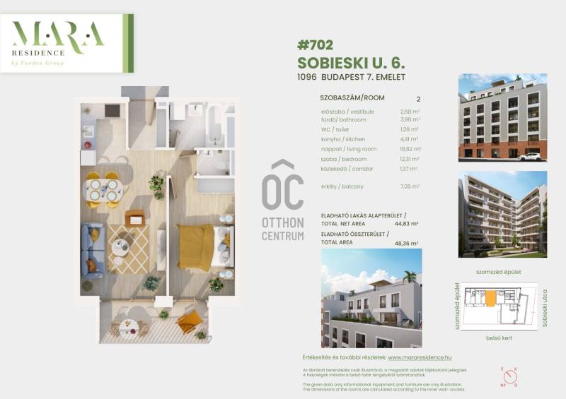 Projekt bemutatásaAzoknak, akik nem szeretik a több száz lakásos társasházakat, kitűnő lehetőség ez a 67 lakásos társasház Ferencvárosban.Dinamikusan fejlődő közvetlen környezet- további értéknövekedési potenciál!A LAKÁSOK 80%-a MÁR ELKELT!A MARA RESIDENCE-től egy sarokra számos villamosmegálló található (2,24, 28, 37, 51, 51A), de a Klinikák és a Nagyvárad téri metro megálló is csak kb.10 perc, illetve a 4-6-os villamos vonala is 10-15 perc sétával elérhető. Így a város bármely pontjára könnyen és gyorsan eljuthat.A belvárosi lokációnak köszönhetően, a közelben sokféle üzlet és szolgáltatás érhető el. Egy kellemes sétával kiváló kulturális és szórakozási lehetőségek között válogathatnak az környéken élők. Legyen szó egy jó szórakozóhelyről, múzeumról, moziról, vagy színházról, nem kell messze menni.A társasház közvetlen környezetében számtalan kellemes étterem, bár található, de aki csak egy kis levegőre vágyik az egy sarokra megtalálja a Kerekerdő Parkot vagy sétálhat egy nagyot a közeli Dunaparton.KÖNNYŰ, GARANTÁLT BÉRBEADHATÓSÁG, MAGAS BÉRLETI DÍJAKA környéken található, részben a közelmúltban épült egyetemi tömbök és irodaházak közelsége miatt egyre több külföldi diák, valamint a közelben, multinacionális nagyvállalatoknál dolgozó, stabil anyagi háttérrel rendelkező munkavállaló szeretne a területen lakást bérelni. Ugyanakkor a rendelkezésre álló bérbeadó, jó minőségű ingatlanállomány ezt az igényt egyelőre nem képes kiszolgálni.A bérleti díjak évről-évre emelkednek, ezáltal biztosítva a befektetési céllal vásárlóknak megfelelő hozamot.ÉRTÉKÁLLÓ, BIZTONSÁGOS BEFEKTETÉSA megújult lakókörnyezetet biztosító IX. kerület kiváló elhelyezkedésével, gondozott parkjaival, kellemes utcáival, szép épületeivel, kiváló infrastruktúrájával az utóbbi évtizedekben tömegesen vonzza az ide költözni vágyókat. Emiatt a lakások ára folyamatosan emelkedik és akkor sem kell aggódnia, ha újra értékesíteni szeretné majd, hiszen azt bármikor könnyen megteheti.HA NAGYOBB LAKÁSBA KÖLTÖZNIE A CSALÁDJÁVAL?Használja ki a Családi Otthonteremtési kedvezmény (CSOK), hiszen nálunk minden igényt kielégítő újépítésű családi otthonok közül is válogathat, melyekhez ki tudja használni a most elérhető állami támogatásokat. A CSOK mellé használja ki az áfa visszatérítést és illetékmentességet is!KÖZÖSSÉGI ÉLMÉNYA társasház 7.emeletének tetőteraszán egy 80m2-es közösségi grillterasz kerül kialakításra. Családi, baráti események kiváló helyszíne lehet majd ez kényelmes közösségi tér.Az alaprajzokat a lehető legjobban átgondoltuk, de előfordulhat, hogy Önnek más elképzelései vannak így még MÉG LEHETŐSÉGE VAN AZ ALAP - RAJZOK MÓDOSÍTÁSÁRA, ami magában foglalja akár az elektromos szerelvények elhelyezését és hasonló, a mindennapokban fontos apróságok egyeztetését is, amihez belsőépítész és lakberendező kollégáink szakértő segítséget nyújtanak!Személyes konzultációnk során nem csak az alaprajzi elrendezésre és optimalizálására van lehetősége, de számíthat ránk abban is, hogy az alapkínálatunkban szereplő burkolóanyagok közül megtalálja az egyéniségéhez legközelebb állót. Célunk, hogy az Ön lakása olyan legyen, amilyet megálmodott.VEVŐKIJELÖLÉS! Bármikor kiszállhat! Ha Ön úgy dönt, hogy már az átadás előtt eladná leszerződött ingatlanját, bármikor kereshet rá új Vevőt. Vevőkijelöléssel kötött szerződés esetén, szívesen átszerződünk az Ön által megjelölt ügyféllel. A vevőkijelöléssel kötött szerződés feltételeiről, várjuk érdeklődését.KEDVEZŐ FIZETÉSI ÜTEMEZÉS: 2 M Ft regisztrációs díj, majd 15 napon belül előszerződés aláírásakor a vételár 15%-ig kiegészítve, 85% pedig műszaki átadást követően. Tervezett átadása: legkésőbb 2027.01.negyedévHOGY ÖNNEK A LEGKÉNYELMESEBB LEGYEN AZ INGATLANVÁSÁRLÁS ÉS A HASZNOSÍTÁS EGYARÁNT:-BELSŐÉPÍTESZETI TANÁCSADÁS-LAKBERENDEZÉSI TANÁCSADÁS, LÁTVÁNYTERVEZÉS-HOME STAGING – Bérbeadásra felkészítés-KONYHA és BEÉPÍTETT BÚTOR TERVEZÉS, KIVITELEZÉS-RESALE és MÁSODÉRTÉKESÍTÉS-DÍJMENTES HITEL és CSOK ÜGYINTÉZÉS is része a szolgáltatásainknak.Várjuk megtisztelő érdeklődését |