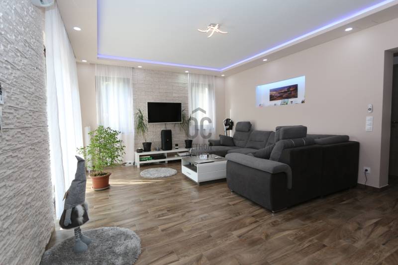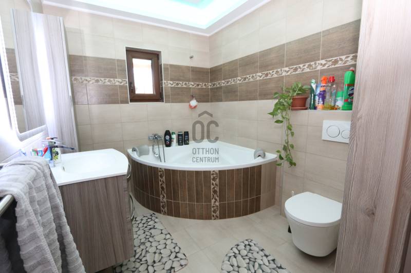 Nagytarcsán, az Öregszőlő Lakóparkban eladó egy 2020-ban épült, 152 m² bruttó alapterületű, 110 m²-es, földszintes, fűtött garázsos önálló családi ház.AZ INGATLANRÓL:-A házban 2 hálószoba található + nappali, külön étkező-konyhával, modern mediterrán stílusban épült továbba sok extrával rendelkezik.Két terasz kapcsolódik a házhoz, 12 és 27 nm valamint egy 8 nm-es fedett bejárati rész. Az ingatlan fűtése padlófűtéses, kandallós, és inverteres klímával is felszerelt.Az ingatlan alacsony havi rezsivel fenntartható.Tartozik hozzá egy 45 m²-es kis épület, amely kis ráfordítással vendégházként vagy bérbeadásra is alkalmas lehet. TELEK:A ház egy 744 m²-es telken fekszik, automata öntözőrendszerrel és robotfűnyíróval.Az ingatlan biztonságáról HIKVISION kamerarendszer gondoskodik.PARKOLÁS:-Parkolni az ingatlan területén lehet, valamint az ingatlan előtt és a 2 fedett zárható garázsban.További információért keressen bizalommal a hét bármely napján!JÖJJÖN EL és NÉZZE MEG legyen ÖN az első aki ajánlatot tesz! |