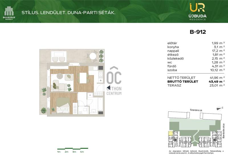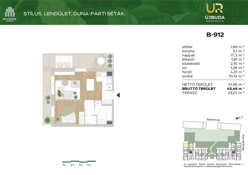 Projekt bemutatásaA Budapest XI. kerületében, a Barázda utcában megvalósuló Újbuda Residence nem csupán egy új építésű lakópark, hanem egy olyan innovatív fejlesztés, amely kivételes lehetőséget kínál mindazok számára, akik otthonukat vagy befektetésüket egy dinamikusan fejlődő, mégis nyugodt környezetben képzelik el.Ez a modern, 240 lakóegységet magában foglaló fejlesztés Újbuda folyamatosan megújuló környezetében, a Duna-parttól mindössze egy karnyújtásnyira található. Az épület kiváló választás lehet azok számára, akik a fővárosban szeretnének élni, de mégis közel a természethez és a vízparthoz. Az új lakások mellett tárolók és gépkocsi beállók is rendelkezésre állnak, ezzel biztosítva a lakók maximális kényelmét és praktikus életvitelét. A változatos méretű lakások között mindenki megtalálhatja a számára legmegfelelőbbet, legyen szó kisebb vagy nagyobb lakóterületről.A fejlesztés keretében egy fiatalok számára ideális, kisebb lakóegységekből álló épület is megvalósításra kerül, ami különösen vonzó lehet a fiatalabb generációk számára, akik a város nyüzsgése mellett szeretnének élni, ugyanakkor közel a természethez és a szabadidős tevékenységekhez.Az Újbuda Residence fejlesztésében változatos méretű és elrendezésű lakások kerülnek kialakításra, a 27 m2-es stúdiólakásoktól egészen a 70 m2-es, háromszobás lakásokig. Az épület alsóbb szintjein található lakások saját privát kertkapcsolattal rendelkeznek, míg a felsőbb emeletekről lenyűgöző panoráma nyílik a Gellért-hegyre. Minden lakás erkélyes, így a lakók élvezhetik a szabad levegő nyújtotta kényelmet és a környező zöldterületek látványát.A lakások kialakításánál elsőrangú belsőépítészeti megoldásokat alkalmaztak, amelyek több mint 4000 korábbi vásárlói visszajelzés alapján kerültek kidolgozásra. A belső anyagválasztékot a legjobb minőségű alapanyagokból állították össze, a lakások pedig egyedi igények szerint is alakíthatók, így mindenki megtalálhatja a számára legideálisabb megoldást.A rozsdaövezeti besorolásnak köszönhetően a vásárlók 5%-os áfa-visszaigénylésre is jogosultak, ami tovább növeli a fejlesztés vonzerejét.Az Újbuda Residence ideális választás fiatal egyedülállók, párok, kisgyermekes családok, valamint középkorúak számára, akik olyan lakóhelyet keresnek, ahol egyszerre élvezhetik a város nyújtotta lehetőségeket és a természet közelségét. A fejlesztés fiatalos, modern megjelenése, valamint a tágas parkok, zöldterületek biztosítják a nyugodt és kellemes életvitelt.A lakópark egyediségét tovább növeli a lakók számára kialakított tágas, dús növényzettel borított belső kert, amely tökéletes helyszínt biztosít a pihenésre és a kikapcsolódásra. Az épület alsóbb szintjein elhelyezkedő lakások privát kertkapcsolata pedig még inkább otthonossá varázsolja az itt eltöltött időt. |