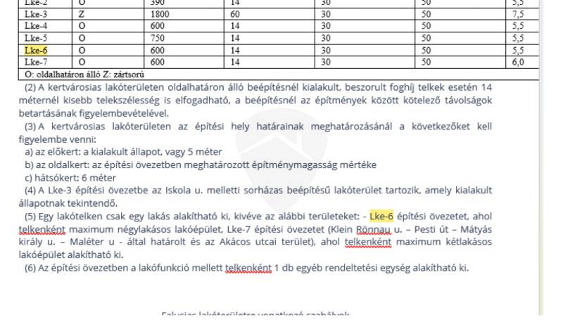 Tökölön kínálok összközműves telket megvételre nagyméretű családiház építésére. A Fővárosi Vízművek \"Elvi hozzájárulása\" alapján az Lke-6 besorolás mellett is csak 1 db családi ház építése lehetséges.Az 1480 m2-es telek utcafrontja 30 méter fölötti, 30%-a beépíthető, így az épület maximális alapterülete meghaladhatja a 590 m²-t.Építménymagasság:A szabályzatnak megfelelően az építmények maximális magassága 5,5 méter lehet, tehát 2.szint, tetőtér beépítés lehetséges.Mivel a sorházas városrészben elhelyezkedő egyik utolsó beépítetlen telek, amely 4 lakásos társasházak között helyezkedik el, a későbbiekben a csatorna terhelési tilalom után 4 lakásos társasház építésére alkalmas, de telekalakítási tilalom is életbe lépett, így a korábban összevont telek, jelenleg nem megosztható, de a későbbiekben ezt remélhetőleg feloldják.Az utcafrontja 30 méter fölötti, így az Lke-6 besorolásnak majd megosztva is megfelel.A telek baloldalán van víz-, csatorna-, gáz beállás, villany.Ha viszont egy önálló vagy ikerházban gondolkodik, akkor a nagy telek abszolút alkalmas rá, kellemes méretű udvarral.Ne hagyja ki ezt a remek lehetőséget, vegye fel velem a kapcsolatot! Kérdéseire szívesen válaszolok, VÉGIG VEZETEM A FOLYAMATOKON.Telefonhívásával, üzenetével hozzájárul adatainak a szükséges mértékű kezeléséhez. Várom jelentkezését! |