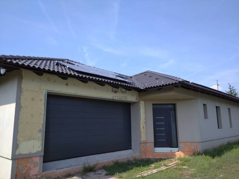 Pákozd frekventált utcájában, ÚJ MODERN ÉPÍTÉSŰ nettó 169,84 m2-es ,fölszintes nagy nappali-étkező-konyha - nagy TERASZ, 4 szobás, 2 fürdőszobás, vendég wc-s, 2 állásos garázzsal épülő HÁZ ELADÓ!Az előírásoknak megfelelően 5m-es előkerttel és 6 m-es hátsóoldali távolsággal épülő MODERN EGYSZINTES HÁZ, tágas nappali-étkezővel, melyhez kapcsolódik a konyha , illetve a pergolás TERASZ, valamint a konyha teréből nyíló kamra is.Az étkező-nappali teréből érhető el a szülői háló, melyhez egy fürdőszoba kapcsolódik és a közlekedő is elérhető.A közlekedőből a három hálószoba és a fürdő közelíthető meg.Megfelelő feltételek esetén a szaniter és a burkolatok VÁLASZTHATÓK!Az idén még igénybe vehető CSALÁDTÁMOGATÁSOK:- CSOK+- 3%-os CSOK HITEL- 5%-os Áfa visszatérítés-ILLETÉKMENTESSÉGMűszaki:- vasbeton sávalapra épül- tartófalak POROTHERM falazóblokkal épülnek- válaszfalak 10 cm-es válaszfallapokból készül- födém: monolit vb födémmel készül- tetőszerkezet: kontytető 10x15 cm-es szalufa,15x15 cm-es szelemen, 5x 15 cm-es fogópár keresztmetszetekkel fedélszékterv szerint készül, antracit cserép héjalással.- nyílászárók műanyagszerkezetűek, ALBALUX típusúak ANTRACIT színben, alumínium, automata redőnyökkel szúnyoghálóval ellátva.- fűtés-hűtés HŐSZIVATTYÚVAL padlófűtéssel és mennyezeti hűtés-fűtéssel megoldott, mely ráadásul helyiségenként távirányítással külön-külön szabályozható!- 16,2 Kw-os napelem biztosítja a ház teljes áramellátását- Kandalónak külön kémény biztosított!Automata garázskapun keresztül jutunk a 2 állásos garázsba, melyben külön helyet kapott a GÉPÉSZETI rész is.A kivitelező régi partnerünk, számos referenciáját tudjuk megmutatni!A HÁZ újépítésű családiházas környezetben épül, megfelelő zöld felülettel.A közelben buszmegálló, az M7-es autópálya 5 perc, Székesfehérvár szintén 5 per távolságban elérhetők.Irodaiazonosító: U0045236újépítés, hőszivattyú, zöld, kert, vidék, megújuló energia |