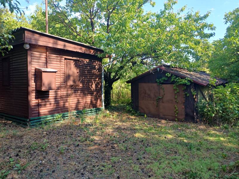 Gyönyörű, ősfás telek hangulatos faházzal!Solymár külterületi részén, szép környezetben, közel a lakóövezethez eladó egy 1076 nm-es telek rajta két jó állapotú faházzal és melléképülettel.Az első faház (\"Lada\" típusú) 1975-ben épült, a másik (\"Jitka \"típusú)1984-ben épült közvetlenül hozzá. Van átjárási lehetőség a két rész között. A házhoz egy hangulatos terasz kapcsolódik, és egy pince is épült (kb.12 nm).A telken villany (25 A), ásott kút van. :). Utcából víz, gáz beköthető.Az ingatlan zártkerti művelés alól kivett terület és gazdasági épület. |
