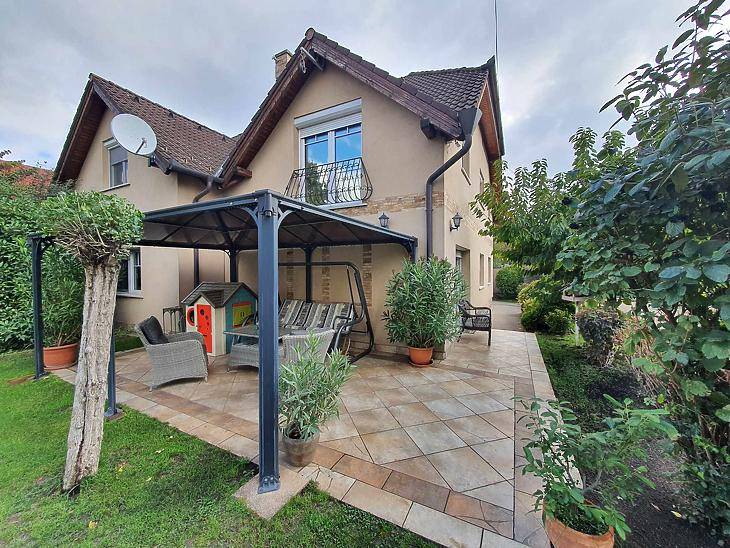 XVII. KERÜLETBEN: RÁKOSKERESZTÚRON, CSENDES MELLÉKUTCÁBAN, ELADÓ EGY KÖZEL NULLA ENERGIAIGÉNYŰ, JÓ ÁLLAPOTÚ, NAPPALI+ 4 SZOBÁS CSALÁDI HÁZ, NAGY MELLÉKÉPÜLETTEL, AMI MAGÁBA FOGLAL EGY DUPLA GARÁZST, VALAMINT EGY 60 M2-ES AMERIKAI KONYHÁS NAPPALI + 1 SZOBÁS LAKÁST. A TELEK 710 M2-ES, GYÖNYÖRŰEN PARKOSÍTOTT.A HÁZ JELLEMZŐI:Építész tulajdonosok által megtervezett, és magas minőségű anyagokból megépített, rendkívül jó elosztású, masszív családi ház.Az épületek elhelyezkedése miatt, nagy zöld területtel és intim kerttel rendelkezik. A ház az elmúlt években is folyamatos fejlesztéseken esett át, ennek köszönhető, hogy a 12 kw-os napelemrendszer, a hőszivattyús, mennyezeti fűtési és hűtési rendszerrel működtetve, fedezi a ház energiaigényét. Ugyanakkor rendelkezik gázkazánnal is.A homlokzat 15 cm-es dryvit szigetelést kapott, a nyílászárók szintén hőszigeteltek.A komfortot növeli a házhoz csatlakozó két fedett terasz.A nappali és szobák laminált parkettásak, míg a többi helyiség egyedi mediterrán stílusú járólappal burkolt.A konyha kialakításánál, az angol konyhastílus volt a meghatározó. A konyhabútor, tömörfából, méretre készült. A tűzhellyel együtt a vételár részét képezi. Ugyanakkor a házban található beépített bútorok is egyedileg, tömörfából készültek és szintén a vételár részét képezik.A nappali kandallóval ellátott.Az emeleten, yacht stílusát idéző pihenőszoba került kialakításra. Szintén az emeleten beépítésre került egy infraszauna is.Az összes hálószoba, nagyméretű gardróbszekrénnyel ellátott.A fürdőszobákban kád és zuhanyzó is helyet kapott, valamint a földszinten egy mosókonyha is rendelkezésünkre áll.A telken különálló melléképület, földszinti része 60 m2-es, 2 állásos garázs. Alkalmas elektromos autók töltésére. További 1 autó számára alakítottak ki fedett beállót.Az emeleten egy 60 m2-es, amerikai konyhás nappalis, 1 hálószobás, zuhanyzóval és káddal ellátott fürdőszobás lakás került kialakításra, ami igény szerint könnyen átalakítható, a válaszfalak áthelyezésével.A kertben teljes locsolóhálózat került kiépítésre.Az összes kapu és garázsajtó automatán működtetett.A ház fejlett kamera és riasztórendszerrel ellátott.ELRENDEZÉS:Főépület földszint: Konyha + étkező, nappali, hálószoba, fürdőszoba + mellékhelyiség, külön mellékhelyiség, közlekedő előtér, 2 db teraszFőépület emelet: 3 szoba, fürdőszoba + mellékhelyiség, kazánhelyiség, közlekedőA KÖRNYÉK:Az Akadémiaújtelep és Madárdomb szomszédságában, Rákoskeresztúr csendes mellékutcája, jó közlekedésnél. Közelben található iskola, óvoda, gyógyszertár, orvosi rendelő bevásárlási lehetőség.FINANSZÍROZÁS:Tehermentes. Az ingatlan hitelre is megvásárolható. Bankfüggetlen tanácsadóink, az ország összes pénzintézete közül gyorsan és gördülékenyen találja meg az Önnek legmegfelelőbb konstrukciót, egyedi kedvezményekkel. A hitel közvetítés díjmentes.IRÁNYÁR: 256 M FTVEVŐINK RÉSZÉRE A KÖZVETÍTÉS DÍJTALAN!A hirdetésben szereplő adatok tájékoztató jellegűek. |