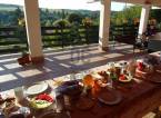 Eladóvá vált Magyarország délnyugati csücskében, a horvát-szlovén határ mentén egy gyönyörű, varázslatos, befogadó tájon, a Dél-Zalai (Letenyei) Dombság közepén, egy barátságos, békés, turisztikai szempontból gyorsan fejlődő kis faluban egy gyöngyszem: Egy több, mint félhektáros, rendezett, domboldali telken két 2014-ben épült szigetelt lakóépületből és két tároló faházból álló megkapó panorámával megáldott, működő szálláshely és rendezvény komplexum. A nagyobb, három szintes, összesen mintegy 700 m² -es épületben, a Rejtekben 6 db, 2, 3, és 4 ágyas fürdőszobás szoba, két nagy közösségi helyiség, nagy terasz, erkélyek, konyha, ping-pong szoba, szerviz, kisegítő és műszaki helyiségek, és egy kis szolgálati lakás található. A szomszédos, 200 m² területű, egy lakószintes Kisrejtekben 3 db 2, 3, illetve 4 ágyas, saját terasszal és jól felszerelt étkezőkonyhával rendelkező, fürdőszobás egyhálóteres apartman, az alagsorban három tároló van kialakítva. 28 férőhelyünk van pótágyak nélkül. A közművek célszerűen és a környezetbarát módon kialakítottak. Elektromos áramból napelemekkel önellátó a létesítmény, a fűtést és melegvíz ellátást fatüzelésű kazánnal és távolról is irányítható elektromos eszközökkel oldottuk meg, a szennyvizet biológiai lebontású rendszer kezeli, a megtisztított víz az ingatlanon belül marad. A tóvá alakítható 100 m3 -es tűzi víz tározót a csapadékvíz tölti.Az üzemeltetésről: A fő profil jelenleg csoportok, családi és baráti társaságok, aktív kikapcsolódást keresők, képzések, céges rendezvények, kisebb konferenciák, tematikus táborok számára a lehető legjobb körülményeket és igényük esetén programokat biztosítani. Szervizműhelyünk mindennel eszközzel felszerelt, ami a kert, az épületek és a kerékpárparkunk fenntartásához szükséges. Programlehetőségek nyáron kimeríthetetlenek, de télen sem lehet unatkozni. Kirándulás, kerékpáros túrázás korlátlanul, Vétyemi ősbükkös, Budafai arborétum, Kék-túra- Rockenbauer Pál turistaút, olajipari emlékhelyek túrák, bemutatók, vadaspark, szőlődombok, eldugott kis tavak, pincesorok, források. Kistolmácson elbűvölő környezet, csodás fürdő- és horgásztó, ingyenes strand. Szécsiszigeten vízimalom, bivalyrezervátum, kastély, évszázados levéltári és könyvtári ereklyék. Letenyén 300 éves platán, kitűnő fagyi és remek pizza. Kerettyén strand a hegytetőn és olajipartörténeti kiállítás. Az ország leghosszabb, Csömödéri kisvasútja Lentitől Kistolmácsig. Lentiben termálfürdő és strand, energiapark. Evezőstúra a hármashatárnál a Kerkán, Murán, bunkerlátogatás, túra a szlovén határ mentén. Pusztaszentlászlón az Aqua Barbara termálfürdő, Becsehelyen csillagvizsgáló. Látogatás Szlovéniába, Lendván vár és a különleges Vinárium kilátó, Dobronakban orchidea farm, energiapark. Mindez 25 km-en belül. A házban van egy \"klubu\", házimozi, sakk, társasjátékok. Ping-pong terem, könyvsarok, gyerek játszósarok is segít a kikapcsolódásban az itt megpihenni vágyókat. Van kiülős, grilltárcsás, szalonnasütős, bográcsozós lehetőség a kertben, illetve a Rejtek teraszán és természetesen a gyerekeknek egy izgalmas játszótér. Vannak íjak, vízisport eszközök, horgászfelszerelés. Kiemelt profil a kerékpározás, így kerékpártúrákat, kerékpáros táborokat is szoktak itt szervezni. A kerékpározás lehetőségei végtelenek, a választék óriási az országúti és trekking túrázástól a gravel és MTB kalandokig. Kölcsönözhető kerékpárflottával rendelkező hely közel 50 kerékpárból áll a gyerekkerékpároktól az e-bikeokig. Gasztronómiai programok: Pincelátogatás - borkóstoló, pálinkakóstoló, Zalai finomságok különleges vacsorája, rétesparti, kemencés parti, prószaparti, bográcsparti. Remek olcsó éttermek a környéken változatos kínálattal.Mindössze 10 kilométernyire az autópályától! A legtöbb navigációs program jól idevezet. Vonat, VOLÁN busz Nagykanizsára jön, illetve a busz átszállással Letenyéig jár, sőt a Rejtekig is eljön naponta egyszer-kétszer. A Rejtekben egymást érik a tematikus táborok, csoportos rendezvények.Természetesen a jelenlegi szálláshely és programközpont hasznosítási formán kívül sok más célra alkalmas az ingatlan: társasüdülő, képzési központ, idősek otthona, alkotóház, rekreációs, illetve egészségügyi intézmény, workshop helyszín stb. |