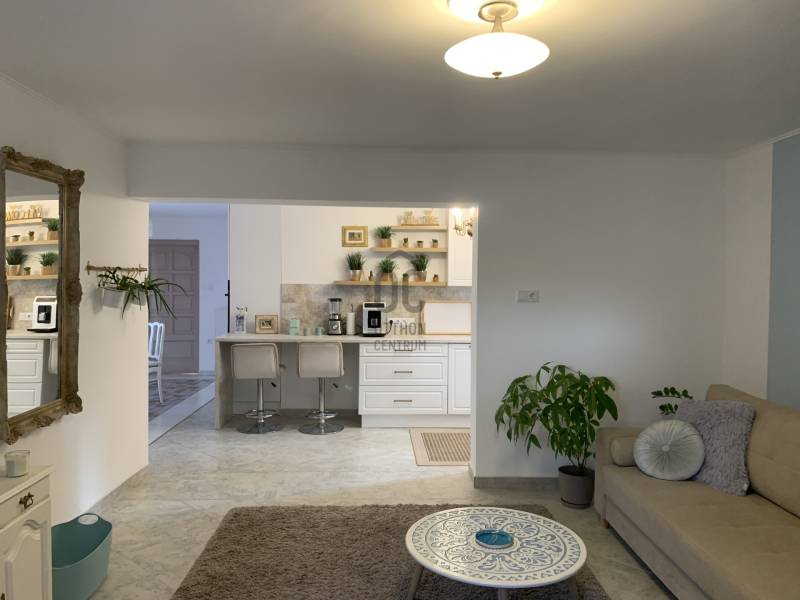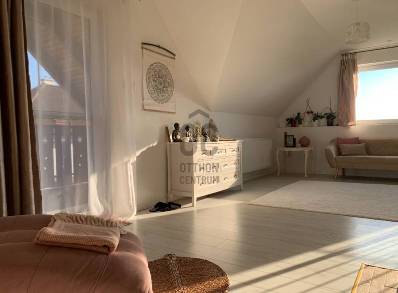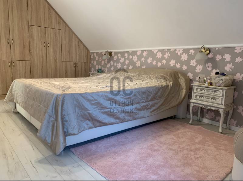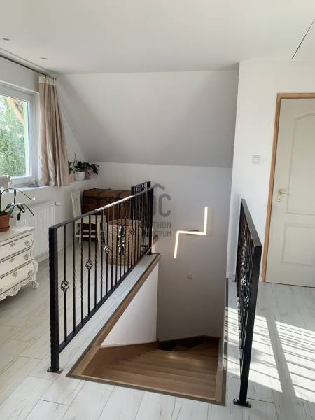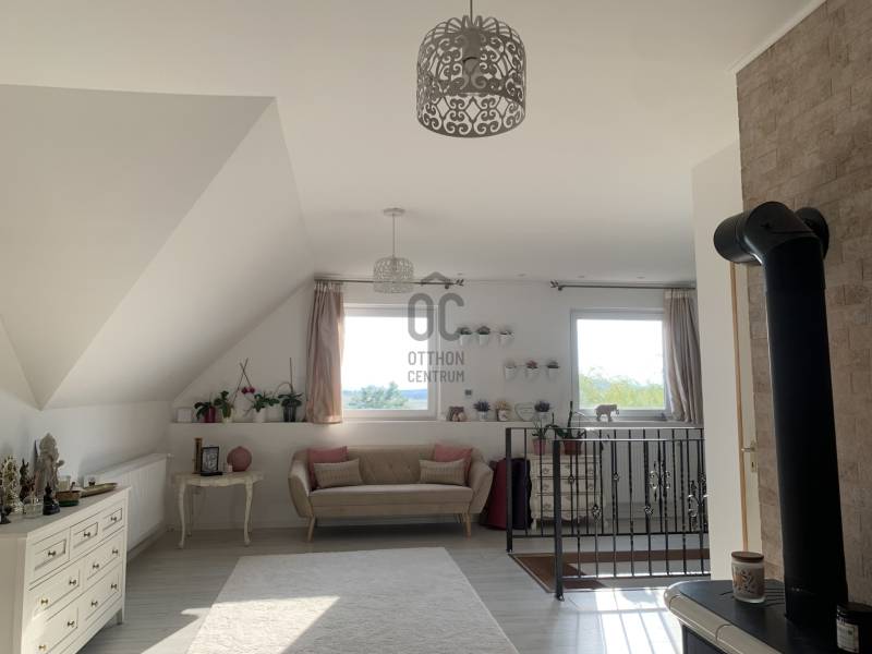 Örök panoráma a Káli - medence pereménA Művészetek Völgye tőszomszédságában, Monostorapátiban eladóvá vált ez a 2002-ben épült, újszerű, hangulatában mégis bájosan rusztikus családi ház. Az ingatlan legnagyobb értéke a mesés elhelyezkedés, hiszen már a kapun belépve elénk tárul Hegyesd valóban hegyes, vulkanikus bazaltkúpja. De ugyanilyen páratlan kilátás nyílik a házat szinte körülölelő monostorapáti erdőre is.A csendes, igényes utcában lévő ingatlant 2022-ben belül teljeskörűen felújították, ekkor építették be a tetőteret is. Itt a két tágas hálószoba mellett helyet kapott egy fürdőszoba – különálló mosdóhelyiséggel –, valamint két terasz is. A tetőtér leghangulatosabb része mégis a hatalmas, fényes nappali – középpontjában egy rusztikus kályhával. Így akár a hűvösebb őszi napokon, a kályha tüze mellett is gyönyörködhetünk a hegyesdi naplementék színkavalkádjában.A földszinten egy roppant tágas, egybenyitott térben található a konyha-étkező-nappali hármasa. Az ízléses és praktikus konyha szintén a 2022-es felújítás során került kialakításra. A nappaliban emellett található még egy – akár hálószobaként is használható – dolgozó, valamint egy fürdőszoba is (az emelethez hasonlóan itt is külön mosdóhelyiséggel). Mivel a ház előszobájából külön ajtókon keresztül közelíthető meg a földszint és az emelet, ezért az összterületében 217 négyzetméteres ingatlan arra is lehetőséget ad, hogy abban két teljes értékű lakrészt alakítsunk ki.Műszaki paraméterek:telek mérete: 1177 m2pinceszint: 46m2földszint: 89m2tetőtér: 82m240 cm-es tégla falazat, hőszigetelő vakolat, 40 cm kőzetgyapot födém szigeteléskorszerű műanyag nyílászáróka teljes víz, fűtés-és villamos rendszer cseréje 2022-ben megtörténthárom fűtésrendszer: új kondenzációs gázkazán/vegyestüzelésű kazán/kályhalépcsőzetesen kialakított telek, parkosított kert, termő gyümölcsfák, fűszernövényekHa egy igazan nyugodt, kedves szomszédokkal korul vett, festői szépségű tajon szeretne élni, hívjon es nézzük meg együtt ezt a meleg családi otthont! |