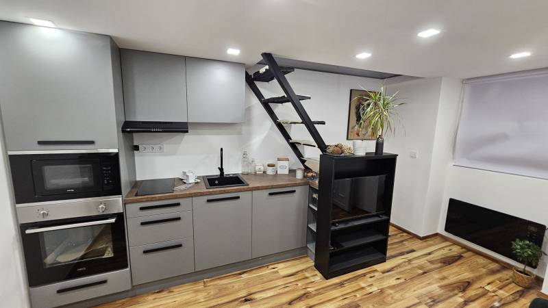 Peterdi utca – galériás minilakás modern kialakítássalBudapest VII. kerületében, a Peterdi utcában eladó egy frissen felújított, galériás minilakás. Az ingatlan egy nagyobb földszinti lakás ügyvédi megosztással elkülönített, önálló része, külön bejárattal és saját mérőórákkal.A lakás kis mérete ellenére jól átgondolt: a galéria alatt és felett is minden funkció helyet kapott, a gépesített konyha egyedileg ide tervezett bútorral készült, a fürdőszoba pedig modern és energiatakarékos felszereltséggel várja új tulajdonosát.Főbb jellemzők:Galériás kialakítás üvegkorláttalAsztalos által készített, gépesített konyhabútorModern fürdő törölközőszárítóval és fűtőpanellelSaját mérőórák, külön bejáratPrémium felújítás, azonnal költözhetőTökéletes választás azoknak, akik egy kis, mégis minden szempontból élhető és igényes otthont keresnek a belváros közelébenA képek REFERENCIA fotók!!! |