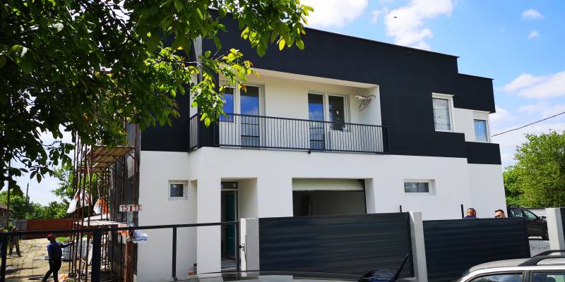Pestszentlőrinc egyik legkedveltebb részén a Ganzkertvárosban 143,22 m2-es, kétszintes, 5 szobás, garázsos, új építésű, dél tájolású ikerház 2 fürdőszobával, terasszal, emeleti erkélyekkel 2025 tavaszi átadással kulcsrakészen eladó.Aszfaltozott utca, összközmű. 6,25 KW-os napelem rendszer 10 KW-os akkumulátorral. Elektromos kapuk. Redőnyök szúnyoghálóval. Épített utcafronti kerítés. Térburkolások. Infrafűtéses padlófűtés. Villanybojleres meleg víz ellátás. Rendkívül alacsony rezsi. 3 rétegű üvegezéssel ellátott homlokzati nyílászárók. Vasbeton alap és födémek. Tégla falazat. Hőszigetelt aljzat, főfalak és födém. A belső ajtók, szaniterek, burkolatok, falfestés választható. Közelben iskola, óvoda, bölcsőde, üzletek. Díjmentes, bankfüggetlen hiteltanácsadással is segítjük vásárlását. Egyedi kamatkedvezmények. Hívjon bizalommal! |