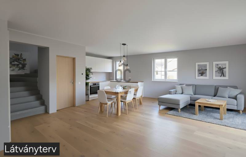 Nagytétényi új építésű ikerházat kínálunk megvételre, mely kiváló választás lehet mind fiataloknak, mind idősebbeknek.Az ingatlan XXII. kerület nyugodt \"zsákutcájában\" egy és két szintes családi házak szomszédságában épül.A tulajdonos eddig épített ingatlanaihoz hasonlóan itt is a letisztult stílus és a minőségi anyagok felhasználása a jellemző .A netto 85 m2-es lakás belső terei az építtető több éves tapasztalatai és hosszú tervezői munka eredményeként kerültek kialakításra, figyelembe véve minden részletet. A lakásban a nappali-étkező-konyha kényelmesen elfér, mely egy nagy 15 m2-es terasszal és a saját kerttel kapcsolódik össze. A földszinten egy 4,5nm-es fürdőszoba és egy kamra is helyet kapott, így biztosítva a kényelmessé életteret az egész család számára. A három hálószoba és a nagy fürdőszoba az emeleti szinten került elhelyezésre.Az épület kiemelkedő hőszigetelő képességgel rendelkezik, Leier 30 N+F kerámia téglából és 10cm homlokzati szigeteléssel épül. Fűtése és meleg víz ellátása kondenzációs kazánnal történik, a fűtés hőleadása padlófűtésen keresztűl történik. Az ingatlan hűtéséről 4db (nappali és 3szoba) légkondicionáló gondoskodik.A kivitelező elképzelése szerint a szobákban laminált parketta, míg a többi helyiségben kerámia burkolatok készülnek. A lakás tulajdonosa az egyedi mérőóráknak köszönhetően pontosan annyit fizet, amennyit valóban használ. A lakások saját kerttel és egy nyitott gépkocsi beállóval rendelkeznek.Az ingatlan környezete is ideális, hiszen a XXII. kerület fejlődő területén található, a tömegközlekedési eszközök mindössze 5 perc sétára vannak.Ha Ön is szeretne egy modern otthont, amely minden igényt kielégít, akkor ne habozzon, hívjon most!Az építkezés elkezdődött, a várható átadás időpontja: 2025 december 31. |