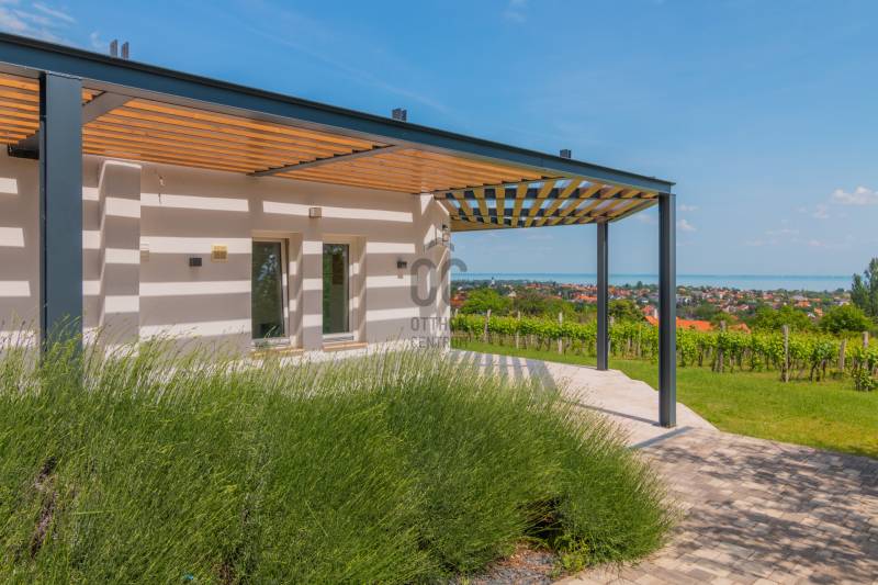 CSOPAKI ÖRÖKPANORÁMÁS BIRTOK, DIZÁJNER ÉPÜLETTEL keresi új gazdáját, 349M Ft-os irányáron! PANORÁMÁS: lenyűgöző, teljes balatoni panoráma SZEPARÁLT: kíváncsi tekintetektől mentes, intim NAGYSTÍLŰ: elegáns, egyedi, karakteres épület, borospincévelGAZDASÁGOS: \"H\" tarifa, padlófűtés hőlégszivattyúval, klímák, bevizsgált kútAz épület:- 127, 27 m2-es lakóterületű, 75m2-es hatalmas, giga-panorámás árnyékolós terasszal - hatalmas nappali-étkező-konyha, gardrób, 2 fürdőszoba, 3 WC, háztartási helyiség, közlekedők, borospince- víz, villany, csatorna, aktív-szenes/UV szűrős fúrt kút- \"H\" tarifa, 3x32A, 3 db hűtő-fűtő klíma, hőlégszivattyús padlófűtés, 2db vaskályhaA kert:- 3096m2-es szőlőbírtok, melyhez opcionálisan kb, még egyszer ekkora is megvásárolható- 4 db autó kényelmesen parkolhatAz alaprajz tájékoztató jellegű, nem méretarányos, de remélem, segíti az eligazodást...AZ ILYEN ADOTTSÁGÚ BIRTOKOK MÁR ELFOGYTAK, DE ÖNNEK MOST AKÁR LEHETNE:....... |