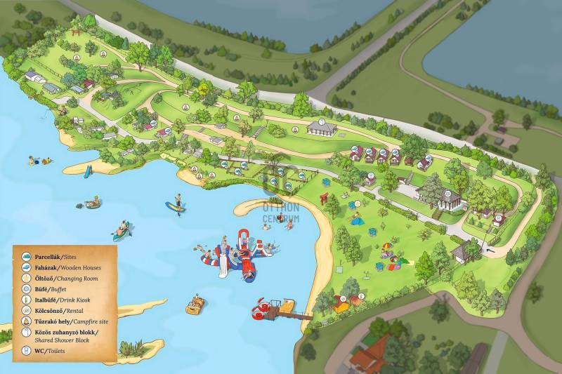 A délegyházi tavak legszebb részén található, több évtizede működő üdülőterület teljes infrastrukturális háttérrel és hűséges vendégkörrel várja új tulajdonosát. Ez a különleges adottságokkal rendelkező helyszín ideális alapja lehet egy újabb sikertörténetnek.KIEMELKEDŐ ADOTTSÁGOKKözvetlen vízpart: A mintegy 500 méteres partszakaszon elterülő, tágas terület lenyűgöző panorámát kínál a délegyházi tóra és annak szigeteire.Kristálytiszta víz: A tó kavicsos, lassan mélyülő partja ideális fürdőzéshez.Teraszos kialakítás: Összesen közel 4 hektárnyi belterület, látványos és tagolt domborzattal.Bejáratott vendéglátás: A kemping több mint 40 éve működik, stabil törzsvendégkörrel. Kényelmükről helyszíni büfé és melegkonyhás étkezési lehetőség gondoskodik.KÖZMŰKAPCSOLATOK ÉS TECHNIKAI HÁTTÉRA területen adott a vezetékes víz- és villamosenergia-hálózat.Saját fúrt kút áll rendelkezésre a vízellátás biztosítására.A gázvezeték és a szennyvízcsatorna közvetlenül az ingatlan előtt húzódik, így a csatlakozás lehetősége adott.Jelenleg zárt emésztőrendszer működik.STRAND ÉS SZOLGÁLTATÁSOKGondozott, füves partszakasz öltözőkkel, zuhanyzókkal, mosdókkal és kényelmes pihenőhelyekkel.Vendéglátóegységek: büfé, melegkonyha, lángossütő.Szórakozási lehetőségek: darts, röplabda, vízibicikli, gyermekcsúszda.KEMPING ÉS SZÁLLÁSLEHETŐSÉGEK200 sátorhely, ebből 100 áramvételi lehetőséggel rendelkező lakókocsihely, rövid és hosszú távra egyaránt.Négyfős faházak (7 db) saját terasszal, fürdőszobával, WC-vel, valamint hűtőszekrénnyel, mikróval és TV-vel felszerelve.Külön kialakított grill-, bogrács- és tűzrakóhelyek állnak rendelkezésre.RENDEZVÉNYEK ÉS PROGRAMOKÉvek óta népszerű helyszíne különféle eseményeknek: horgász-, vízi-, erdei- és önvédelmi táboroknak, céges csapatépítőknek, valamint hétvégi, élőzenés nyári programoknak.ELHELYEZKEDÉSBudapesttől mindössze 20 km-re található, autóval kevesebb mint fél óra alatt megközelíthető.Tömegközlekedés: a legközelebbi buszmegálló kb. 3 km-re, a vasútállomás 5 km-re helyezkedik el.Ez a csaknem 4 hektáros, közvetlen vízparti ingatlan ideális választás kemping, üdülőhely, strand, tábor, rendezvényhelyszín működtetésére.Ragadd meg a lehetőséget!Írj történelmet a Kempinggel, és válj a következő évtizedek sikeres üzemeltetőjévé! |
