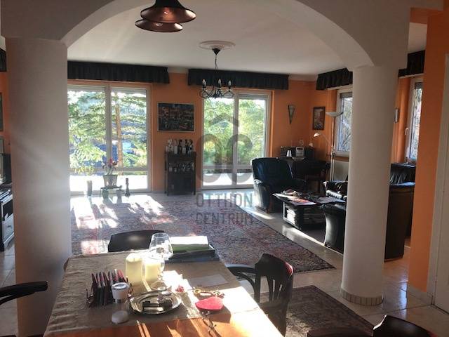 Második kerület méltán népszerű város részén Adyligeten kínálunk megvételre egy jó hangulatú azonnal költözhető 275 nm-es családi házat.Igazi madárcsicsergős erdő közeli ,csendes utca átmenőforgalomtól mentes.2003-ban épült ingatlan 585 nm- es telken helyezkedik el,három szintre tagolódik.Garázsszint,közösségi tér,emeleti privát szféra.Házat zöld buja növényzet veszi körül ,nagy méretű teraszokkal,Nappaliból egy nagyon impozáns téli kertbe léphetünk ki,amit rossz időben is zavartalanul használhatunk.Igényesen megépített ház,fűtéséről vadonat új kondenzációs kazán gondoskodik.Hűtését a tetőtérbe telepített klímaberendezéssel oldották meg.Garázs szinten ,találhatunk egy szaunát ,ami a lakók kényelmét szolgálhatja,tusolóval.Borkedvelőknek borospince áll rendelkezésre.Két autó kényelmesen elhelyezhető.Földszinten , óriási nappali,étkező,konyha egy térben helyezkedik el ,igazán monumentális látvány.Emeleten három háló két fürdőszoba kapott helyet.Nagy hálóhoz \"master bedroomhoz\",kádas,tusolós fürdőszoba,garderobe szoba kapcsolódik.Minden hálónak erkély kapcsolata van,így zavartalanul gyönyörködhetünk a környék panorámájában.Az ablakokat motoros redőnyőkkel szerelték fel,így a mozgatásuk nem jent problémát.Tisztelt érdeklődő várom megtisztelő hívását,hétvégén is. |