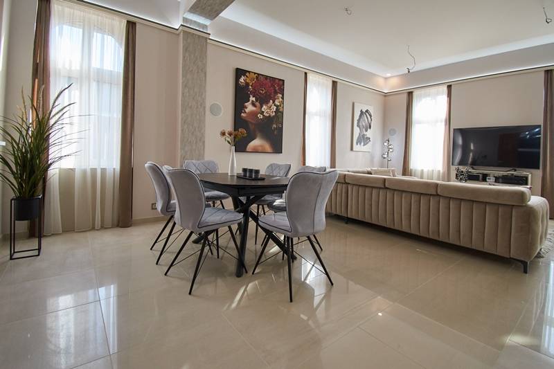 VI. ker belváros szívében, Podmaniczky utcában egy nappali + 3 hálószobás , 2 fürdőszobás luxuslakás teljes bútorzattal, csodálatos élettér, ragyogó befektetés.Felszereltség:- 3 rétegű üvegezés a 6 kamrás műanyag nyílászárókon (0,7K)- Motoros alumínium redőnyök- Padló -és falfűtés Kondenzációs kazánnal.- Hűtő-fűtő klímarendszer Minden szobában- Gépesített konyha- Riasztó, Safe- Ledes fő-és hangulatvilágítás rendszer- \"Stand by\" kapcsoló rendszer- Masszázs kád- Teljes falfelület dryvit hálózva a repedések elkerülése érdekében- Teljes falfelület tapétázva- Teljes hangszigeteltség Blue Aqusto és Üveggyapottal- Egyedileg gyártott fa ajtók, bútorokKözponti elhelyezkedésének köszönhetően tömegközlekedéssel is jól megközelíthető.Várjuk hívását! |