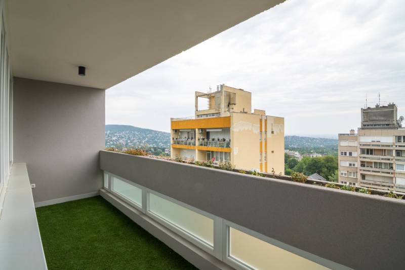 Eladó teraszos, örökpanorámás újonnan felújított lakás Kuruclesen – természetközeli luxus a város szélén.Budapest II. kerületében, a Budakeszi út egyik legkeresettebb részén, az Ökopark közvetlen szomszédságában eladásra kínálunk egy frissen és teljeskörűen felújított, 70 m²-es (tulajdoni lapon), panorámás lakást. Az ingatlan a 8. emeleten helyezkedik el, két lifttel rendelkező társasházban, azonnal költözhető állapotban. A lakás ideális választás mindazok számára, akik értékelik a természet közelségét, de nem mondanának le a kiváló infrastruktúráról sem.Az épület: Nem csúsztatott zsalus technológiával épültek, hanem hagyományos technológiával. Vasbeton pillérváz, 38-as téglával falazva. Iványi László Ybl díjas építész tervei alapján.Főbb jellemzők:* Lakás alapterülete: 70m² nettó*Terasz: 10 m², Teraszon új fix üvegszerkezetek, homlokzati falak felújítva, holland gyep. Örökpanorámás kilátással a Budai-hegyekre és az esti városi fényekre, beleértve a Parlament látványát* Elrendezés: nappali + 2 hálószoba, déli-délkeleti tájolással* Tároló: 6 m² zárt pinceszinti helyiség* Parkolás: 1 db zárt felszíni beálló a társasház kertjében* Állapot: teljeskörűen felújított, újonnan gépesített, még nem lakott* Fűtés: házközponti rendszer saját hőközponttalMűszaki tartalom és felszereltség:* Új elektromos és gépészeti rendszerek (víz-, lefolyó- és fűtésrendszer)* Prémium szaniterek: Grohe, Hansgrohe, Duravit* Klimatizált nappali és hálóhelyiség* Energiahatékony nyílászárók: 3 rétegű üvegezés (Salamander, Ug=0,6 W/m²K)* Új burkolatok: nagyméretű greslapok és laminált padló* Új homlokzati nyílászárók (Salamander 3 rétegű üveggel, Ug=0,6 W/m²K), Új beltéri ajtók* Új IKEA konyhabútor beépített Bosch és Whirlpool gépekkel (mosogatógép, sütő, főzőlap, hűtő, elszívó)* Redőny- és riasztórendszer előkészítés* LED világítás, dimmelhető lámpák, rejtett világítás* Belső wifi-hálózat kiépítésének előkészítése* KapitelefonElhelyezkedés és infrastruktúra a közelben:A lakás természetvédelmi terület mellett helyezkedik el, pár perc sétára a János-hegytől, Zugligettől és a Budakeszi Vadasparktól – ideális aktív életet élőknek, családoknak, kutyásoknak.* Lauder Javne Iskola, Külker Strand, uszoda, játszóterek* Budagyöngye Bevásárlóközpont* Lidl, Aldi, Tesco, Príma, Müller, DM (Budakeszin)* STOP SHOP (Hűvösvölgyben)Közlekedés:* 22, 22A, Volánbusz megálló 80 méterre (Budakeszi, Páty, Telki)* Széll Kálmán tér 10 perc alatt elérhető busszal vagy autóval* Gyermekvasút Szépjuhászné megálló gyalogosan is gyorsan elérhetőEz a tájékoztatás nem minősül nyilvános ajánlattételnek. Bővebb információ és megtekintés időpontja egyeztetés alapján. |
