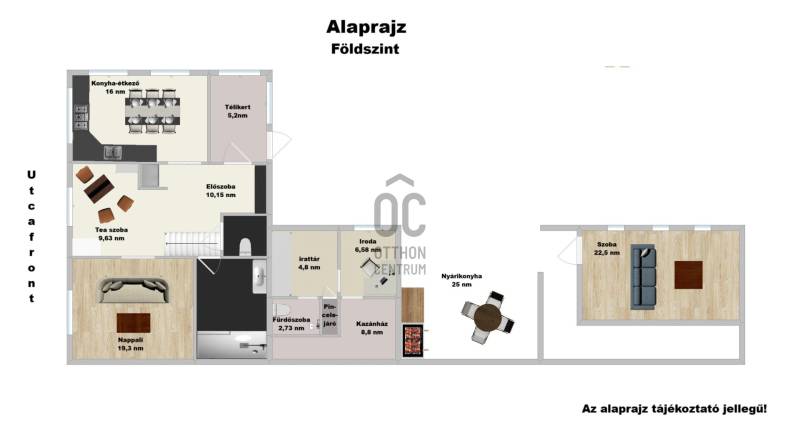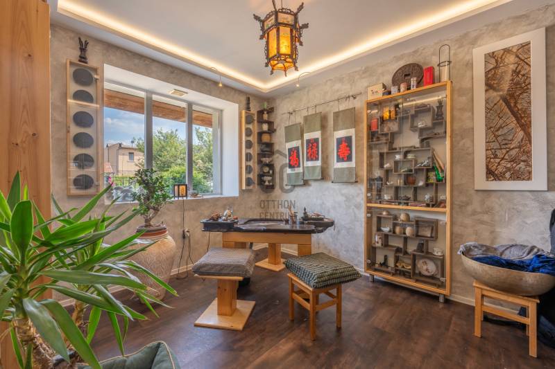 | Részletes leírás Eladásra kínálunk egy egyedi kialakítású, nettó 138 m²-es családi házat egy 746 m²-es, parkosított telken Szigethalom szívében!Az ingatlan 2017-ben teljeskörű felújításon esett át, mely során korszerűsítették a gépészetet, burkolatokat és nyílászárókat is. A fűtés és hűtés modern légcsatornás klímával megoldott, melyet gázcirkó egészít ki, így a hőkomfort minden évszakban garantált.A ház praktikus elosztásának köszönhetően akár kétgenerációs otthonná is alakítható: a hátsó részben található egy külön bejáratú szoba, amely könnyűszerkezetes, hang- és hőszigetelt technológiával épült – ideális lehet önálló lakrész kialakítására.A munkavégzéshez is kiváló feltételeket biztosít az otthonban kialakított kis irodahelyiség, amelyben helyet kapott a kazánház és egy zuhanyzós fürdőszoba is, így a home office is kényelmesen megoldott.A házhoz tartozik továbbá egy 25 m²-es, fedett nyári konyha, amely tökéletes helyszíne lehet a baráti vagy családi összejöveteleknek.A gondozott kert igazi ékköve az ingatlannak: dísznövényekkel, egy kis tóval és hangulatos hidacskával teszi varázslatossá a kültéri időtöltést.Főbb jellemzők:Nettó 138 m² lakótér746 m² parkosított telek25 m²-es nyári konyhaLégcsatornás klímás hűtés-fűtés + gázcirkóKülön bejáratú szoba – akár második lakrésznekHome office lehetőség irodával és saját fürdővelEgyedi légtechnikai megoldásHangulatos, rendezett kert tóval és virágokkalNe hagyja ki ezt az egyedi lehetőséget – ideális választás családosoknak, többgenerációs együttélésre, vagy akár vállalkozáshoz is! |