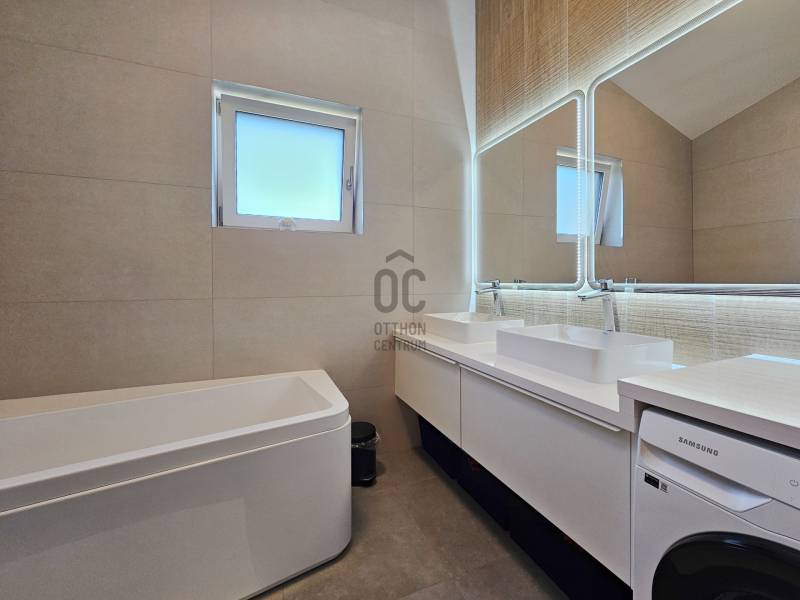 Új otthon, új élet – költözz be Üröm legszebb részére!Üröm legexkluzívabb részén, az Ezüsthegy Villaparkban kínálunk megvételre egy háromszintes, 5 szobás, duplakomfortos, teljesen berendezett ikerházat, amely 2024-ben épült, és minden tekintetben a jövő otthonát képviseli.Főbb jellemzők:Tágas belső terek, gondosan kialakított elrendezés – ideális nagyobb családnak isMennyezeti hűtés-fűtés – energiatakarékos, kényelmes klímavezérlésJakuzzi ellenáramoltatóval – relaxálj saját privát wellnessedben!2 állásos garázs + 3 kültéri beálló – kényelmes parkolás vendégeknek isElektromos autótöltési lehetőség (3x32A)Okosotthon-érzés: elektromos zsaluzia + szúnyogháló, robotfűnyíró, öntözőrendszer, riasztó + kamerarendszer, kapunyitóPrémium anyagok, ízléses, modern burkolatok, korszerű épületgépészetLakópark előnyei:Az Ezüsthegy Villapark egy frissen épült, zöldövezeti, családbarát környezet, ahol a nyugalom, a természet közelsége és a modern városi kényelem találkozik. A magastetős, elegáns épületek, a panorámás teraszok, a minőségi kivitelezés és az AA+ energiahatékonyság garanciát jelentenek arra, hogy hosszú távon értékálló otthonod lesz.Műszaki extrák:Monolit vasbeton szerkezet3 rétegű nyílászárók, biztonsági bejárati ajtóModern szigetelés, korszerű mennyezeti hűtés-fűtés levegő-víz hőszivattyúvalSzobánként vezérelhető termosztát + internetes távvezérlésLaminált padló, csúszásgátlós Gres lapok, választható csempeburkolatokKertkapcsolat, burkolt terasz, üvegkorlátos erkélyKiknek ajánljuk?Annak, aki nem kompromisszumot keres, hanem otthont. Aki fontosnak tartja az alacsony fenntartási költséget, a biztonságot, a természet közelségét, és aki szívesen ébred madárcsicsergésre – 20 percre Budapest szívétől.Ne maradj le róla! Vedd fel velem a kapcsolatot még ma, és nézd meg élőben ezt a páratlan ingatlant!Az új otthonod már vár rád – csak a bőröndödet kell hoznod. |