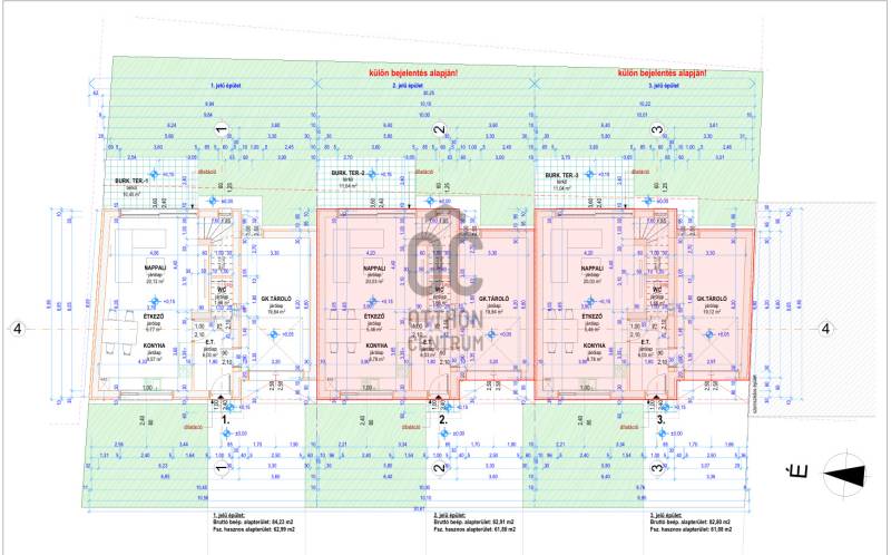 Debrecen kedvelt részén, a Hatvan utcai kert csendes, új építésű övezetében, magas műszaki tartalommal rendelkező, jó elrendezésű, kétszintes, sorházi lakások eladók. Az ingatlanok nappali + 3 szobásak, dupla komfortúak, a földszinten garázzsal, terasszal, és önálló kertkapcsolattal. Illeték mentes vásárlás, kedvező hitelkonstrukció és vásárlási feltételek.Az egyedi kialakítású, napfényes lakás nappali + 3 szobás, kétszintes és kertkapcsolatos:földszinten: nappali-konyha-étkező, előszoba, wc-kézmosóval és garázsI. emeleten: 3 db közlekedőből külön nyíló hálószoba és háztartási helyiség2-es lakásMagas műszaki tartalom akár egyedi igényekre szabva:- külső falak Porotherm 30 cm tégla, homlokzati 10 cm grafitos hőszigeteléssel, az egyes sorházak között és a két szélső tűzfalon ásványgyapot szigeteléssel- a földszint padlólemezében 12 cm lépésálló EPS szigetelés, míg az emeleten 5cm lépésálló EPS szigetelés- padlásfödém hőszigetelése szálas ásványgyapot szigetelés 30cm vastagságban- 3 rétegű üvegezésű 6 légkamrás műanyag nyílászárók- elektromos alumínium redőnyök egyedileg is vezérelhető távirányítással- mennyezethűtés- levegő-víz hőszivattyú padlófűtéssel és mennyezethűtéssel- H-tarifa 3X16A- riasztó rendszer telepítéséhez szükséges vezeték és hálózat telepítés- Távvezérelhető, hőszigetelt, szekcionált garázskapuk barna színben, 2 db távirányítóval- kertkapcsolat- várható átadás 2026 szeptemberTovábbi kérdéseire állok rendelkezésére, hívjon a hét bármelyik napján. |