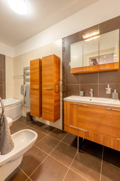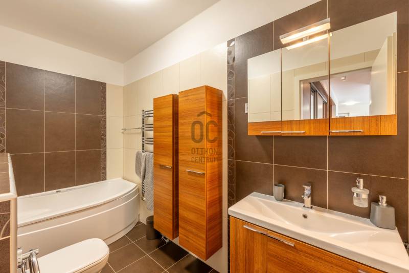 Eladásra kínálok Budapest XI. kerületének egyik legkedveltebb, zöldövezeti részén, a Kőérberek–Tóváros Lakóparkban egy 1. emeleti, 78 m2-es világos, 4 szobás, tágas, dupla erkélyes, újszerű lakást, amely nagyobb családok számára is ideális otthon lehet.A lakáshoz két teremgarázs-beálló + 2 db tároló tartozik, melyek 5 évre szóló kizárólagos használati jogát a vételár magában foglalja. Amennyiben a beállók megvásárlása is szükséges, ezek ára 10.000.000 Ft/db, amely a lakás vételárán felül fizetendő.A liftes társasház első emeletén található az ingatlan. Elosztása nappali + 3 hálószoba, valamint 2 fürdőszoba. A lakáshoz két erkély tartozik, összesen 17 m²-en. A fűtés és hűtés fan-coil rendszerrel megoldott, a konyha teljesen gépesített, a lakás szinte teljesen bútorozott, így az új tulajdonos akár azonnal költözhet is.A házról és a környékrőlA társasház 2012-ben épült. Csendes, rendezett, barátságos környezetben helyezkedik el, a Kamaraerdő közvetlen közelében. A tömegközlekedés kiváló: a 187-es busz és a 41-es villamos megállója pár perc sétával elérhető, így könnyen megközelíthetők Buda és Pest központi részei. Az M7-es és az M0-ás autópályák közelsége autós közlekedés szempontjából is előnyös.A lakóparkon belül és annak közvetlen közelében számos szolgáltatás megtalálható: SPAR, pékség, gyógyszertár, drogéria, orvosi rendelő, illetve egy sportközpont (fitneszterem, uszoda, strand, tenisz- és focipályák). Néhány perc autóval pedig Budaörs nagyáruházai (TESCO, Auchan, IKEA) is könnyedén elérhetők.Jöjjön el, nézze meg személyesen – és szeret bele első látásra!Egyedi igényekre szabott lakáshitelekkel állunk rendelkezésére. Bankfüggetlen hitelcentrumunk az országban elérhető összes bank és hitelintézet ajánlatát versenyezteti az Ön számára díjmentesen. Munkatársaink nagy szakmai tapasztalattal várják Önt az előre egyeztetett időpontban akár a normál munkaidő után is.Bővebb információért és a megtekintéssel kapcsolatban hívjon bizalommal! |