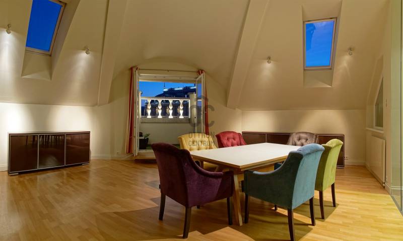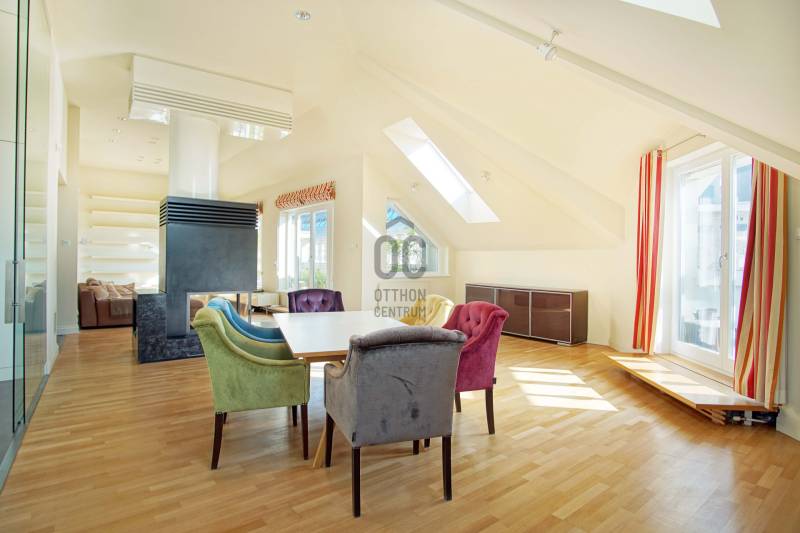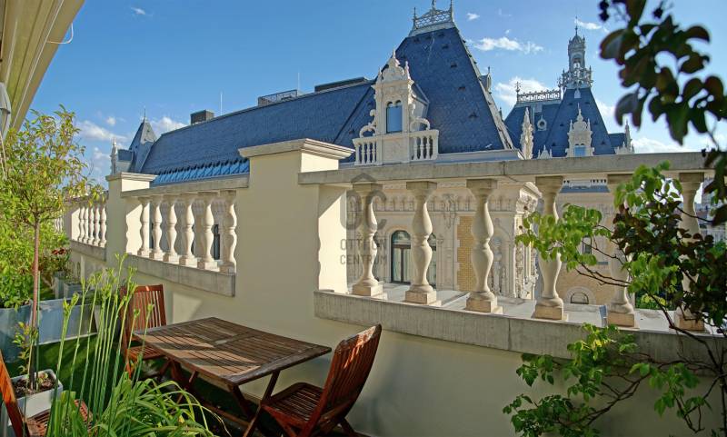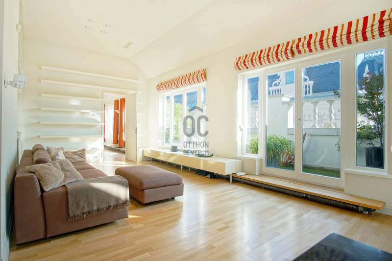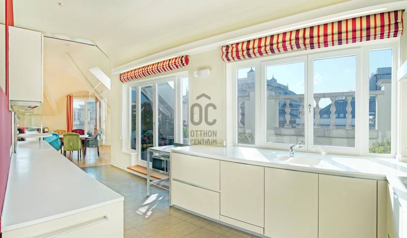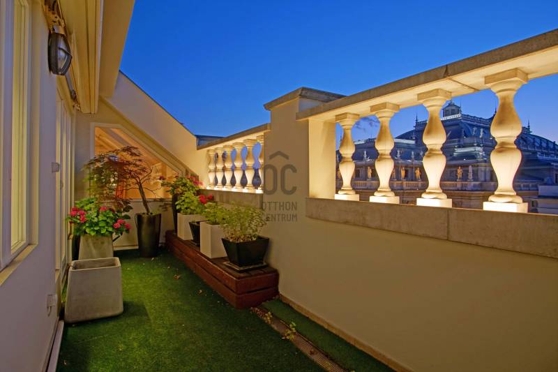 Kivételes lehetőséget kínálunk Budapest egyik legpatinásabb épületében, az Andrássy út 27. szám alatt, a Fischer–Sonnenberg palota legfelső szintjén. A 289 m²-es, két szintes luxuslakás páratlan panorámával rendelkezik: közvetlen kilátás nyílik az Operára, a Bazilikára, a W Hotelre, a Budapest Eye-ra és a Budai-hegyekre.Az ingatlan főbb jellemzői:- Hasznos alapterület: 289 m² / 45 m² terasz- Elrendezés: két nappali, három hálószoba, három fürdőszoba, vendégmosdó, három terasz, tárolók- Alsó szint: 100 m²-es, egybenyitott nappali-étkező-konyha, kandallóval szeparált tér, master bedroom fürdőszobával és gardróbbal, három különleges panorámás terasz- Felső szint: nappali (irodaként is használható), két hálószoba, két fürdő, tárolókFelszereltség a teljesség igénye nélkül:- Központi klímarendszer- Egyedi gázfűtés, padlófűtéssel és kandallóval kiegészítve- Elektromos redőnyök- Riasztórendszer- Automata locsolórendszer a terasz növényzetének- Boffi konyha- Corian pult- Beépített szekrények/bőséges tárolási kapacitásTörténelmi háttér:- Az Andrássy út 27. alatt álló Fischer–Sonnenberg-palota 1884-ben épült Ludwig Schöne tervei alapján, a historizmus jegyében. A neoreneszánsz stílusú épület a sugárút egyik legreprezentatívabb darabja, amelyet a Fischer és Sonnenberg családok megrendelésére emeltek, akik koruk neves polgárai és mecénásai közé tartoztak.- A palota eredetileg bérházként működött, de kialakítása és díszítettsége szinte kastélyokat idéz: elegáns homlokzata, díszes kovácsoltvas kapui, valamint míves belső terei a századforduló budapesti nagypolgárság életstílusát tükrözik. Az épület ma is őrzi eredeti karakterét, miközben modern funkciókat is kiszolgál – így válik különlegessé mind lakó-, mind üzleti célra.A palota műemléki védettséget élvez. A lakás a 2005-ben történt szintráépítés során került kialakításra, az épület legfelső és legexkluzívabb egységeként.Ideális választás mind lakás, mind reprezentatív üzleti célra, azok számára, akik kompromisszumok nélküli lokációt, történelmi környezetet és kiemelkedő minőséget keresnek.Irányár: 2.050.000 EUR |