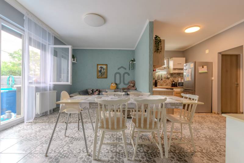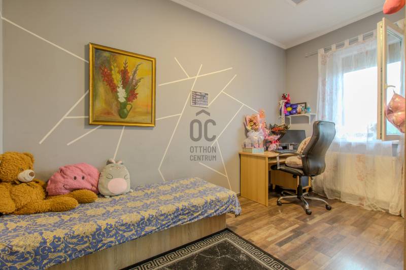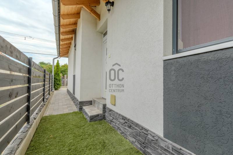Ha modern, alacsony rezsijű, jó elosztású otthont keresel, ahol a kényelem és a praktikum találkozik, ez a 84 m²-es, nappali + 4 szobás ikerház remek választás.A ház kiváló hangszigetelésének köszönhetően a forgalom zaja a belső terekben nem hallható – így a központi elhelyezkedés előnyeit élvezheted, a nyugalom megtartásával. Amit érdemes tudni:-Átgondolt elrendezés: nappali + 4 hálószoba -külön fürdő, WC valamint kamra – ideális családoknak-Minőségi kivitelezés és modern kényelmi extrák-Antracit alumínium redőnyök (a teraszajtón elektromos kivitel)-Szúnyoghálók minden ablakon-Padlófűtés az előszobában, nappaliban, konyhában, fürdőben és WC-ben – a hálószobák radiátoros fűtésűek-Energiatakarékos megoldások-15 cm grafitos homlokzati szigetelés + padlásszigetelés-Korszerű fűtésrendszer, alacsony fenntartási költségKert és parkolás14 m²-es terasz, gondozott udvar3 autó számára kialakított parkoló ElhelyezkedésForgalmasabb úton, de a házban és az udvaron belül csendes – köszönhetően a modern hangszigetelésnek és zárt kialakításnak.Közelben boltok, iskola, buszmegálló, és főbb közlekedési utak – minden elérhető pár perc alatt. Kinek ajánljuk?Azoknak, akik szeretnének egy modern, alacsony rezsijű házat, jó megközelíthetőséggel, kompromisszummentes belső komforttal. Érdekel?Hívj bizalommal a megtekintésért — az ingatlan kiváló állapotban van!Ha hitelre van szükséged, bankfüggetlen tanácsadóink díjmentesen segítenek a legjobb konstrukció kiválasztásában. Ez az ingatlan egyedi konstrukcióban elérhető, részletek: http://www.oc.hu/felezocsomagEz az ingatlan a \"Hűség csomag\" megbízási portfólióhoz tartozik. Részletek az Otthon Centrum weboldalán. |