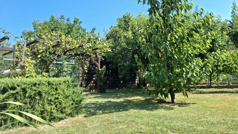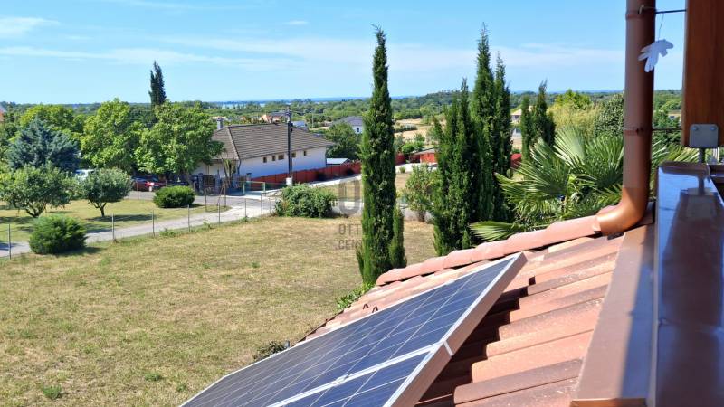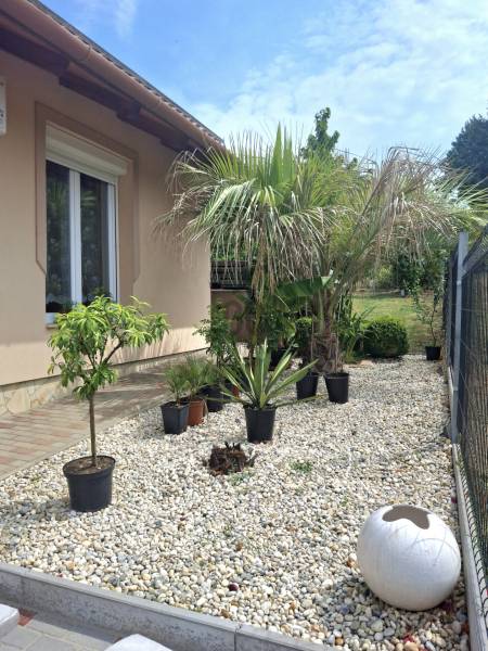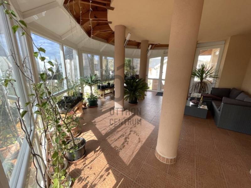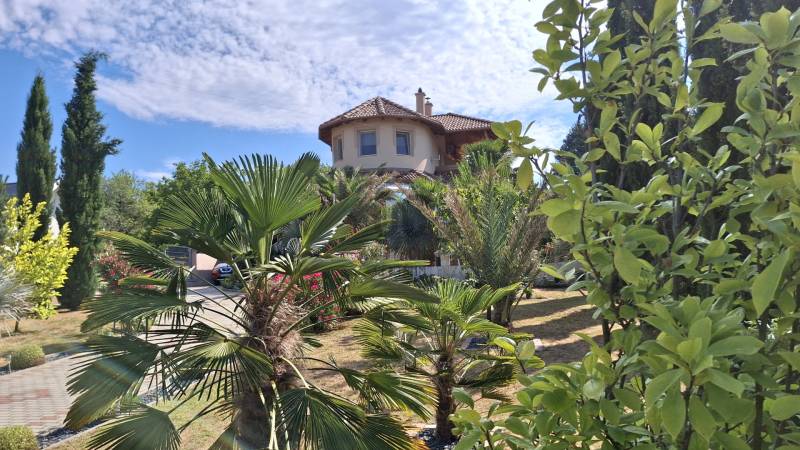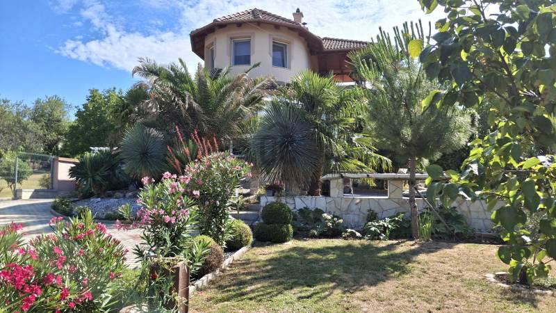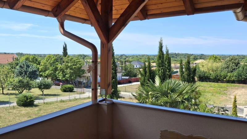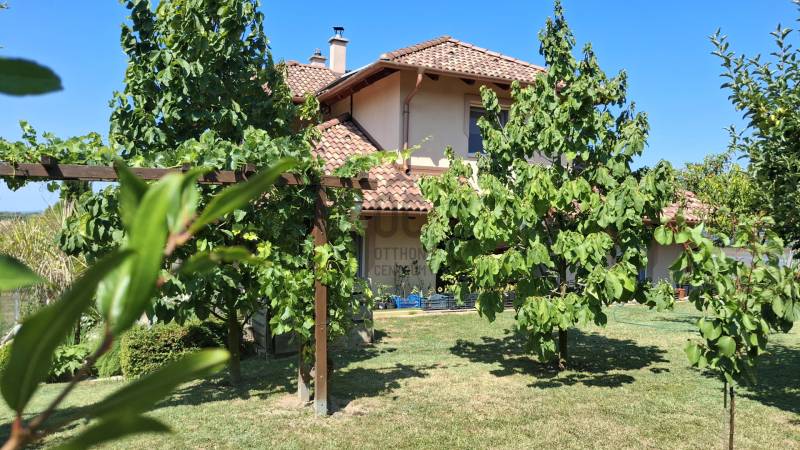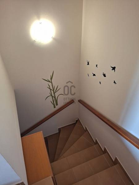 Balatongyörök panorámás, csendes, forgalomtól elzárt, strandhoz közeli részén kínálunk egy 2017-ben épült mediterrán stílusú, nettó 150m2-es lakóházat, gyönyörűen parkosított, 1022nm-es telekkel, alacsony rezsivel.KIEMELT MEGBÍZÁS AZ OTTHON CENTRUM KÍNÁLATÁBAN!Az ingatlan fő jellemzői:- aszfaltos, minimális forgalmú úton megközelíthető- BALATONI részpanorámás telek és ház, kilátással a település felett húzódó csodaszép, ritkás, fenyvessel tarkított Keszthelyi-hegység csúcsára is- az udvar előkertből, oldal és hátsókertből áll, rendezett, parkosított, körbekerített- összközműves ingatlan saját 30m mély FÚRT KÚTTAL- 2.5kW-os NAPELEMRENDSZER segíti csökkenteni a villanyszámlát 13 panellel- 2 féle fűtési rendszer: gázcirkó és vízteres kandalló keringeti a meleg vizet, melynek hője a padlóban, illetve a radiátorokban kerül leadásra- a nappaliban inverteres KLÍMA került beszerelésre- a melegvizet 2 villanybojler adja- a ház födéme SZIGETELT, mediterrán betoncseréppel héjazott- a ház 38-as porotherm TÉGLÁBÓL épült, szigetelt- az első lakószint alatt található az ablakos, gépészetnek is helyt adó pince- a földszinti részen található egy üvegezett terasz, az előtérből nyílik a wc-kézmosó, a hálószoba, a gardrób, a zuhanyzós fürdőszoba, valamint a konyha-étkező-nappali- az emeletre kényelmes lépcsőn jutuk fel, itt található egy panorámás, tágas szoba, teakonyha, zuhanyzós fürdőszoba és egy kisebb szoba, valamint egy nagy, fedett terasz teljes kilátással a Balaton Keszthelyi-öblére- fedett és nyitott autóbeállási lehetőség is adott.- a nyílászárók műanyagok, hőszigeteltek, redőnnyel és szúnyoghálóval ellátottak- minden helyiség ablakos, világos- az étkező-nappalit és az emeleti teraszt a déli nap éri, míg a szobákat és az üvegezett teraszt a délutáni- 2 GENERÁCIÓNAK is kiváló- a kertben 13 féle PÁLMA található, ezek mellett pedig termő gyümölcsfák és bokrok (alma, körte, őszibarack, nektarin, indián banán-pawpaw, szőlő, málna, fekete szeder)- a kert igazi ritkaság, mely az évek során összegyűjtött különleges fajták és szeretettel gondozott munka eredménye- a strand gyalogosan elérhető„Sohasem felejtem azt a pillanatot, amikor én ezt a tündérországot először megláttam.” Szólnak Eötvös Károly – író, a település szülöttének szavai.Balatongyörök egy község Zala vármegyében, a Keszthelyi járásban, a Balaton északi partján, a 71-es főút mellett. A település két vasúti megállóhellyel rendelkezik, valamint sűrű autóbuszjárat köti össze Keszthellyel és Tapolcával. Nyári időszakban rendszeres hajójárat indul Keszthelyre, valamint Balatonmáriafürdő, Szigliget és Badacsony érintésével Fonyódra.Balatongyörök legismertebb pontjai a Szépkilátó és a györöki strand. A balatongyöröki strand vize kiváló minőségű és kristálytiszta, minden évben a legjobbaknak járó kékhullám zászló kitüntetéssel díjazott.Ha felkeltettem érdeklődését ezzel a korszerűen megépített, nyaralónak vagy állandó lakhatásra is ideális ingatlannal, várom megtisztelő hívását.Angol leírásFamily house with a panoramic view of the Balaton and low utilitiesIn the panoramic, quiet part of Balatongyörök, with no traffic, close to the beach, we offer a Mediterranean-style, net 150 sqm residential house built in 2017, with a beautifully landscaped, 1022 sqm yard, with low utility costs.The main features of the property:- Accessible by an asphalt road with minimal traffic- Land and house with a panoramic view of Balaton, with a view to the peak of the beautiful, rare, pine-covered Keszthelyi Mountains stretching above the settlement- The yard consists of a front garden, a side garden and a back garden, arranged, landscaped and fenced- Full public utility supplied property with its own 30m deep drilled well- A 2.5kW solar panel system helps reduce the electricity bill with 13 panels- 2 types of heating systems: a gas based and a wooden burning stove circulate the hot water, the heat of which is released in the floor and in the radiators- The living room is equipped with inverter air conditioning- Hot water is provided by 2 electric boilers- The roof of the house is insulated and covered with Mediterranean concrete tiles- The house is built of 38 porotherm tiles, insulated- Below the first living floor is the basement with windows, hosting the machines of the heating system and the well.- On the ground floor there is a glazed terrace, from the hall we can enter to the guest toilet with sink, to the bedroom, a wardrobe, a bathroom with a shower, and to the kitchen-dining-living room- We reach the first floor by a comfortable staircase, there is a panoramic, spacious room, kitchenette, bathroom with shower and a smaller room, as well as a large, covered terrace with a full view of the Keszthely bay of Balaton- Covered and open parking is also available.- The doors and windows are plastic, thermally insulated, equipped with shutters and mosquito nets- All rooms have windows and are bright.- The dining-living room and the upstairs terrace are exposed to the midday sun, while the rooms and the glazed terrace are exposed to the afternoon sun.- Excellent for 2 generations- There are 13 types of palm trees in the garden, as well as fruit trees and bushes (apples, pears, peaches, nectarines, Indian banana-pawpaws, grapes, raspberries, blackberries)- The beach is within walking distance\"I will never forget the moment I saw this fairyland for the first time.\" The words of Károly Eötvös - writer, native of the settlement.Balatongyörök is a village in the county of Zala, in the district of Keszthely, on the northern shore of Lake Balaton, next to highway 71. The settlement has two railway stops and a frequent bus route connects it with Keszthely and T