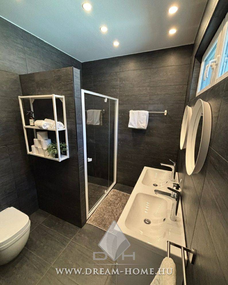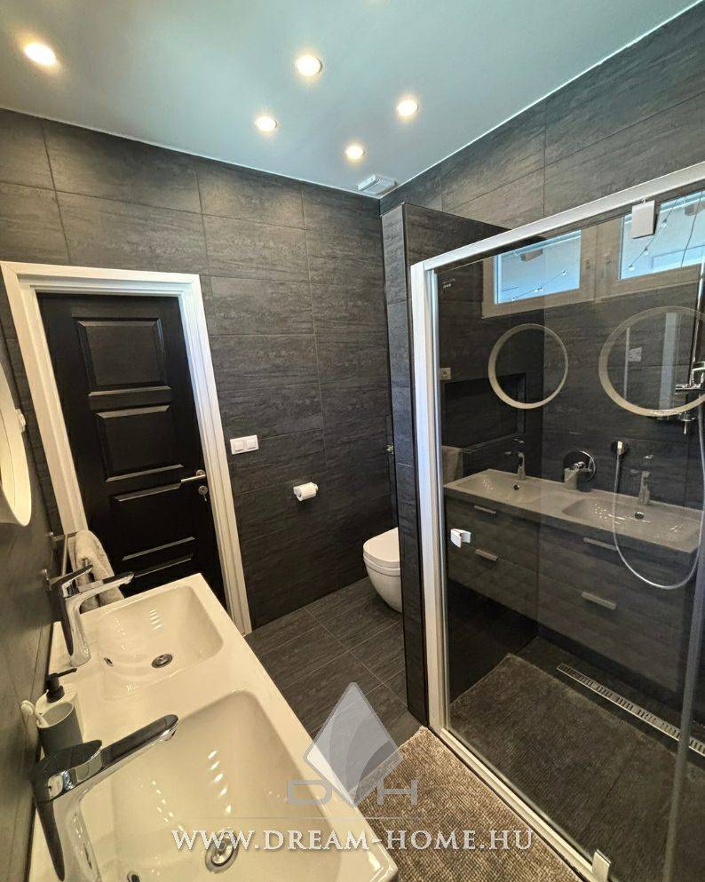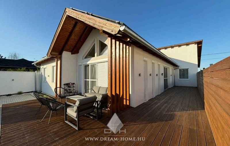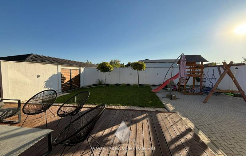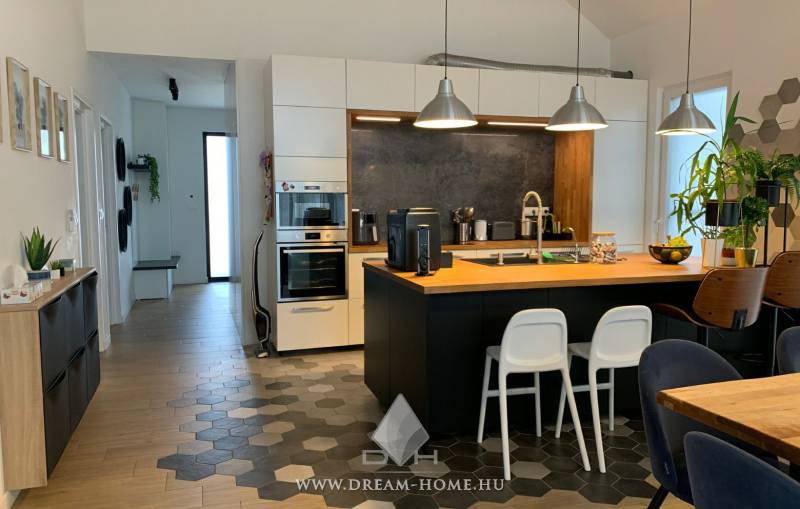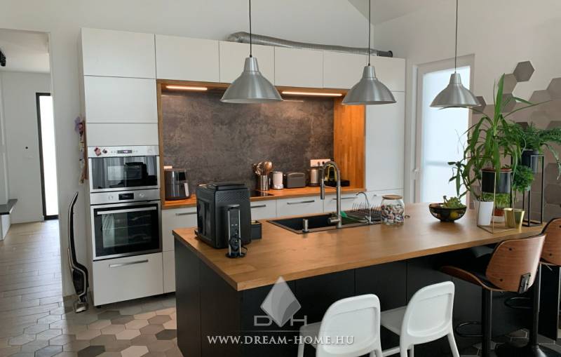 Eladó egy különleges otthon, amely nem csupán egy ház, hanem egy életstílus, ahol a modern technológia és a fenntarthatóság találkozik a kényelemmel. Ez a 2019-ben használatba vett ingatlan olyan megoldásokat kínál, amelyek nemcsak a jelen, hanem a jövő igényeinek is tökéletesen megfelelnek. Ha Ön egy olyan otthonra vágyik, ahol egyszerre érezheti a kényelemet és az energiatakarékosság nyújtotta előnyöket, akkor ez a ház minden elképzelését felülmúlja.Képzelje el, hogy reggelente egy, parkosított kertre ébred, ahol minden növény gondosan ápolt, az öntözőrendszer gyönyörű és automatikusan biztosítja a megfelelő vízellátást. A terasz alatt egy fúrt kút rejtőzik, amely szinte észrevéve látja el a kertet mindig, így a növények frissen zöldellnek. Az előkertben 4-8 autó kényelmesen elfér a térkövezett parkolóhelyeken, így nem csak Önnek, de vendégeinek is elegendő helyet biztosít.Ahogy belép a házba, egy tágas, világos nappali-konyha-étkező tér fogadja, amely az emelt belmagasság és a látszó fa tartószerkezet miatt különleges, egyedi atmoszférát áraszt. A napfény szinte árad a nagy üvegfelületeken keresztül, melegséget hozva a belső terekbe, mindig be a modern kialakítás és a természetes elemek harmonikus együttes teremt otthonos légkört.A ház minden részletében ott van a fenntarthatóság és az energiatakarékosság gondolata. A mennyezetbe épített 40 cm vastag kőzetgyapot, a 15 cm-es homlokzati és a 12 cm-es aljzatszigetelés gondoskodik arról, hogy a hőszigetelés mindig optimális legyen. A padlófűtés egész házban – sőt, a garázsban is – egyenletes hőérzetet biztosít, csak az alacsony havi fűtési költséget, mindössze 14.000 forint.Az ingatlan legnagyobb előnye a megújuló energiaforrásokban rejlik. A 15 kW-os hibrid inverteres napelemrendszer nemcsak a ház teljes energiaigényét fedezi, de az elektromos autók számára is kiépített töltőhálózat áll rendelkezésre. Így Ön akár teljesen zöld módon közlekedhet, anélkül, hogy aggódnia kellene az energiaellátás miatt, hiszen a házban 3x32A teljesítmény áll rendelkezésre.Az ingatlan minden részlete a kényelem és a biztonság szolgálatában áll. Az elektromos, alumínium redőnyök nemcsak a nyári meleg ellen védenek, hanem fokozzák a hőszigetelést is, és biztosítják a privát szférát. A hálószobában inverteres klímák gondoskodnak a kívánt hőmérsékletről, a légszűrők pedig megszűrik a port és a pollent, hogy Ön mindig tiszta, friss levegőben pihenhessen.Ez az otthon tökéletes választás mindazok számára, akik olyan házat keresnek, amely egyszerre modern, energiatakarékos és fenntartható. Egy hely, ahol minden apró részlet átgondolt, ahol a technológia és a természet tökéletes összhangban van egymással. Ha Ön a jövő otthonát keresi, hosszú távon is élvezheti a kényelmet és a nyugalmat, akkor ez az ingatlan mindazt megadja, amire csak vágyik.Ismerje meg személyesen is ezt az energiatakarékos álomotthont – vegye fel velem a kapcsolatot!Harmath-Hegedűs Anikó+36 20 351 8852KMUA1180 |