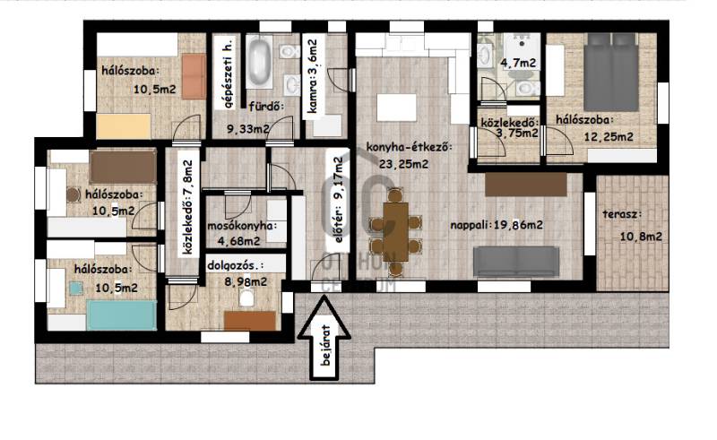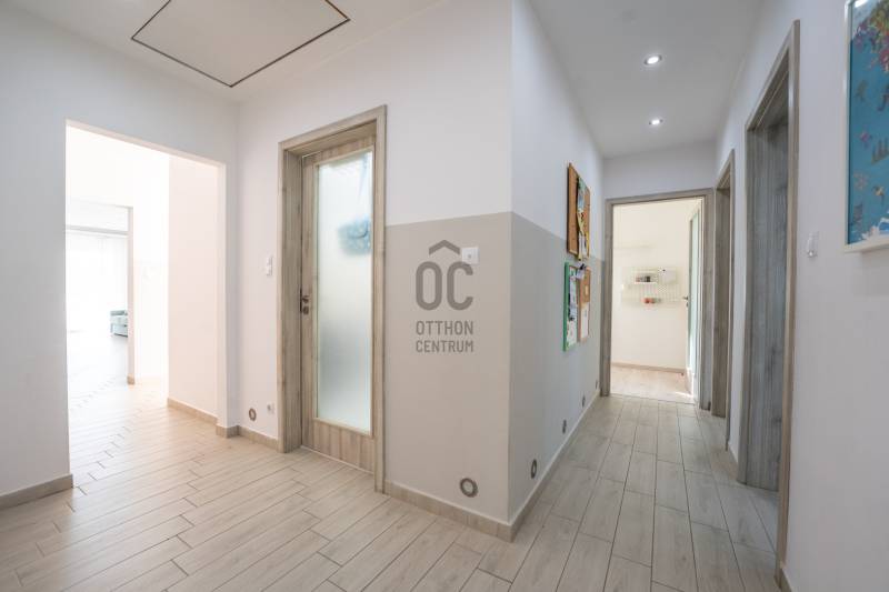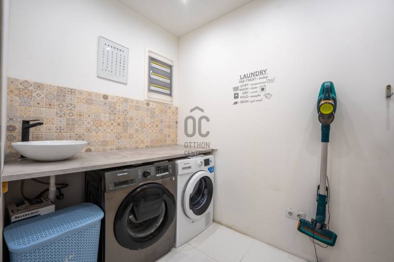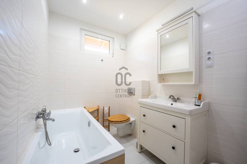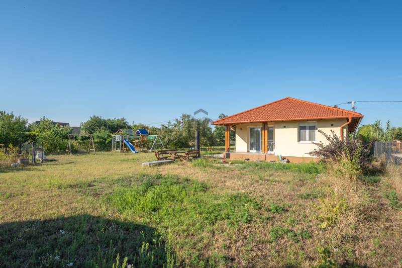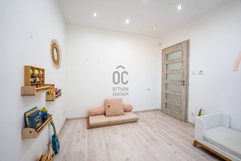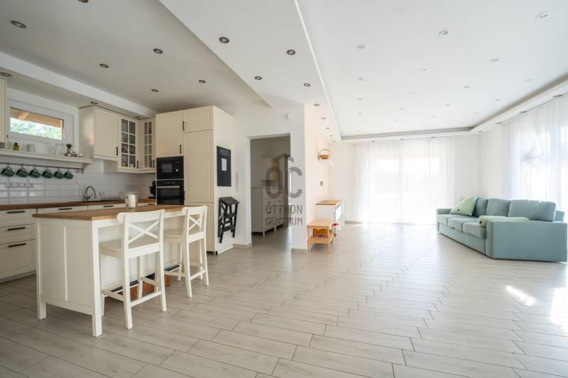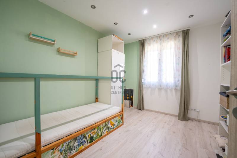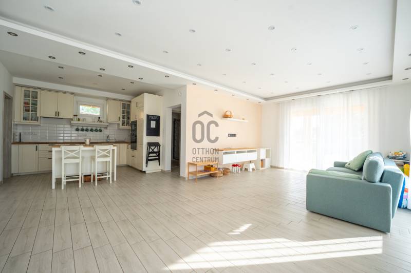 Eladó családi otthon Gárdony Dinnyés városrészének egyik legcsendesebb, aszfaltozott zsákutcájában, ahol az utcában több kisgyermekes család is él – így ideális környezetet kínál gyermekes családoknak!A 2021-ben épült, nettó 150 m²-es, korszerű, A+ energetikai besorolású ház egy 1161 m²-es telken helyezkedik el. Az otthon elosztása tudatosan családközpontú: 4 hálószoba (szülői háló + három gyerekszoba), külön dolgozószoba, nappali, két fürdőszoba WC-vel (egy zuhanyzós, egy kádas), külön mosókonyha, tágas konyha-étkező, kamra és kertkapcsolatos, fedett terasz tartozik hozzá.Az otthon kiváló műszaki felszereltséggel rendelkezik: • DAIKIN hőszivattyús fűtés-hűtés rendszer helyiségenként szabályozható • 3 rétegű műanyag nyílászárók redőnnyel és szúnyoghálóval • Okos otthon funkciók: mobilról vezérelhető fűtés-hűtés, riasztó és kamerarendszer • LED világítás minden helyiségben • A ház 15cm-es géppel szárított, hossz-toldott, csiszolt fa pallóvázból épült. A ház falaiba 15cm szigetelés került míg a homlokzat 12cm-es grafitos szigetelést kapott.Az padló szigetelés 10cm-es lépésálló míg a födém 25cm-es szigeteléssel védett. A ház alacsony fenntartási költsége (5 fős család esetén is csak kb. 36.000 Ft/hó rezsi) kiemelkedő az energia hatékony kialakításnak és a H-tarifás mérésnek köszönhetően.A gyermekek biztonsága és kényelme kiemelten fontos: • Saját játszótér a kertben függőhíddal, mászókákkal, csúszdával • Mozgásérzékelős világítás a gyermekszobák előtti folyosón • Huzatmentes mennyezeti hűtés és padlófűtés – kellemes klíma egész évben • Külön mosókonyha a családi logisztika megkönnyítésére • Minden szobában internet és TV-csatlakozás • Beépített, gépesített konyha – indukciós főzőlap, sütő, mosogatógép, mikrohullámú sütőA 100 m²-es leválasztott veteményeskert ideális a gyerekekkel való közös kertészkedéshez, valamint egész évben friss zöldséget biztosít a családnak. A telken több gyümölcsfa is található (alma, sárgabarack, őszibarack, mogyoró).Családbarát környezet: • Az utca forgalommentes és biztonságos – ideális gyermekeknek • Óvoda, iskola (köztük nyelvi tagozatos gimnázium) helyben elérhető • Játszótér pár perc sétára • Agárd 5 perc, Székesfehérvár 15 perc, Budapest 40 percAz ingatlan CSOK+ támogatásra alkalmas, költözhető augusztusban.Ha szeretne egy valóban gyermekbarát, tágas és korszerű családi otthonban élni, ne hagyja ki ezt a lehetőséget!Megtekintés előzetes egyeztetéssel rugalmasan lehetséges.#ELADÓ, #Dinnyés,#150m, #fedett terasz, #okos otthon, #hőszivattyú, #nappali+5szoba, #családbarát,Ez az ingatlan a \"Felező csomag\" megbízási portfólióhoz tartozik. Részletek az Otthon Centrum weboldalán. |