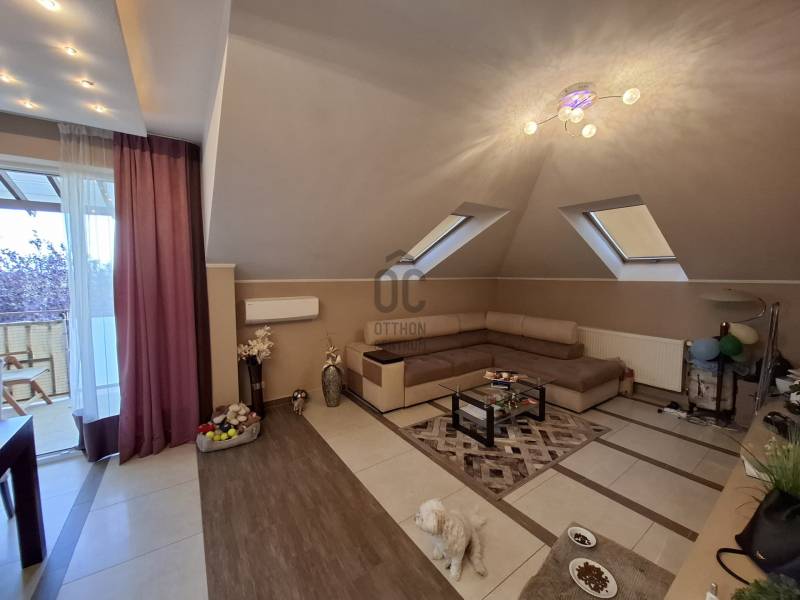 Üllő egyik legkedveltebb részén, a csendes és biztonságos Napraforgó Liget Lakóparkban kínálunk megvételre egy kiváló elrendezésű, tégla építésű, gyönyörű modern lakást. Ár: 66 500 000 FtAlapterület: 52,19 m2Szobaszám: 2 szoba + nappali-étkező-konyhaEmelet: 2. tetőtérFőbb jellemzők:- 2010-ben épült tégla építésű társasházi lakás beton alapon, korszerű 15 cm külső szigeteléssel.- Praktikus elosztás: 2 kényelmes szoba, tágas nappali-étkező-konyha, fürdőszoba, közlekedő.- Modern teljes felszereltség: beépített bútorok (indukciós főzőlap, sütő, mosogatógép), előszoba fal, gardrób szekrény.- Kiváló gépészet: házközponti fűtés egyedi mérőkkel, előtérben padlófűtés, többi helyiségben radiátoros hőleadás.- Hűtő-fűtő klíma (3,5 kW) a nappaliban- Napkollektor a tetőn – alacsony rezsi!- Műanyag nyílászárók, redőnyökkel és szúnyoghálóval, tetőtéri ablakokon sötétítő reluxa.- nappali felőli erkély 3,45 m2, szoba felőli erkély 4,77 m2- Óriási biztonság: riasztó, elektromos kapu- Saját kocsibeálló tartozik hozzá.- Közös, fedett-zárt biciklitároló, babakocsi tároló és kis zöld udvar a társasházban.- Akár teljes bútorzattal is eladó (megegyezés szerint)- Összközműves, azonnal költözhető, kiváló lakókörnyezet Üllő egyik legnyugodtabb zöldövezeti részén!- közelben minden megtalálható (bevásárlóközpont, piac, aldi, pepco, penny, lidl, fodrász üzletek, maximum 5 perc távolságra bölcsőde, óvoda- a vasútállomás 10 perc, buszközlekedés is adott Budapest irányába, valamint az MO-ás és M4-es is kb. 2 perc autóval.Az ár tartalmazza a beépített gépesített konyhabútort (indukciós főzőlap, sütő, mosogatógép), valamint a gardrób szekrényt, előszoba bútort!Kiváló infrastruktúra, nyugodt környék, remek otthon pároknak vagy kis családoknak!Az ingatlan tehermentes, azonnal költözhető!Amennyiben hitelre van szüksége, irodánkban teljes körű ügyintézéssel, ingyenes és bankfüggetlen hitel tanácsadással várjuk.Bővebb információkkal és megtekintéssel kapcsolatban várom megtisztelő hívását a hét bármely napján! |