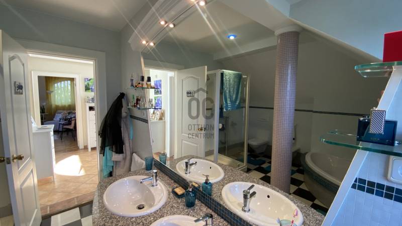 Kisorosziban, a Cseres -tó partján,1890 m2-es telken , 2000-ben épült 333 m2-es, szintenként 111 m2 alapterületű luxus mediterrán villát kínálunk eladásra.Ha nyugodt és zöld környezetben képzeli el új otthonát, ahol azt érzi, hogy egész évben nyaral, akkor ezt a feltétlenül nézze meg!A házat egy építészmérnök tervezte és saját cége által épült fel, ez garancia a jó minőségre és időtállásra.Mostani állapotát 2018 elején nyerte el a földszint és az első emelet.Az ingatlan tulajdonságai:➡️ hatalmas parkosított, kerti tavas elő- és hátsó kert ➡️ hatalmas terasz, amire ráfér a ráncfelvarrás (burkolatok, homlokzat), emeleten terasz is van csodás kilátással a tóra és a visegrádi várra➡️D-i tájolás➡️ műanyag ablakok és fa belső ajtók➡️ minőségi , időtálló hideg-meleg burkolatok és szaniterek➡️ 4 részre szakaszolt gázcirkó fűtés, csak padlófűtés van az egész házban➡️ a nappali ékessége egy fatüzelésű kandalló is➡️ egyedi mérőórák: gáz és villany➡️ vízellátás: saját fúrt kútból történik a teljes ház vízellátása, beleértve a fűthető medencét is➡️ 2 féleképpen fűthető garázslejárat ➡️ wellness \"részleg\": fűthető 9x3 méteres, 170 cm mély medence; finn szauna zuhanyzóval, ➡️ összesen 5 hálószoba (2 földszinten, 3 emeleten); földszinten és emeleten is 2 fürdőszoba (mindkettőben kád + zuhany + WC + bidé + 2 állásos mosdókagyló) ; 1-1 külön álló WC is van➡️ pinceszint: 2 állásos garázs, hatalmas szoba, mosókonyha, kazánház, kamra, medencetér ahol a gépháza van➡️ a beépített szekrények a vételár részét képezik, a konyha is ; minden más megbeszélés tárgyát képeziEgyéb, fontos információ:✅ az ingatlannak 2 utcáról is van bejárata, jelen esetben autóval csakis a hátsó kapun lehet behajtani❗ ház állapota az ami a képeken is látható, a lakószintek szép, megkímélt állapotban vannak, a pinceszintre ráfér a \"ráncfelvarrás\", ahogy a front homlokzati részére is, valamint a terasz burkolatra is és a tetőn is imitt-amott pótolni kell a zsindelyt, ✅ a ház melletti terület sok mindenre alkalmas, az utólag lett a \"birtokhoz\" hozzá csatolva✅ a ház teljes mértékben átalakítható \"zöld\" házzá, amennyiben valaki ebben gondolkodik (napelem, hőszivattyú stb)✅ mediterrán hangulatú az egész villa, akik a minimalista stílust kedvelik nem fognak beleszeretni egészen biztosanAZ INGATLAN MEGTEKINTHETŐ:✅ személyesen,✅ online személyes bejelentkezéssel.Ehhez fogható ízléses, családi házzal ritkán találkozni.Ha nem egy dobozra vágyik, hanem egy karakteres, minden igényt kielégítő meleg otthonra, ahol egész évben olyan, mintha nyaral, akkor megtalálta!Üdvözli új otthona! FINANSZÍROZÁSBAN (ONLINE ÜGYINTÉZÉSSEL IS) SEGÍTÜNK:❗ Bank-független hitelcenterünk díjmentesen versenyezteti minden bank és hitelintézet ajánlatát.❗ Önnek nincs más dolga, mint beszélgetni munkatársunkkal, majd a megversenyeztetett ajánlatokból kiválasztani a hosszútávon is a legmegfelelőbb konstrukciót.❗Szakértőink 20 éves szakmai tapasztalattal és egyedi igényekre szabott, fogyasztóbarát lakáshitelekkel, babaváró hitellel, teljes körű CSOK PLUSZ ügyintézéssel várják Önt.❗ Előre egyeztetve akár a normál munkaidő után is.Megtekintési időpontért, bővebb információért, kérem hívjon bizalommal!Ez az ingatlan a \"Hűség csomag\" megbízási portfólióhoz tartozik. Részletek az Otthon Centrum weboldalán. |