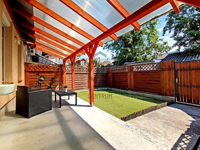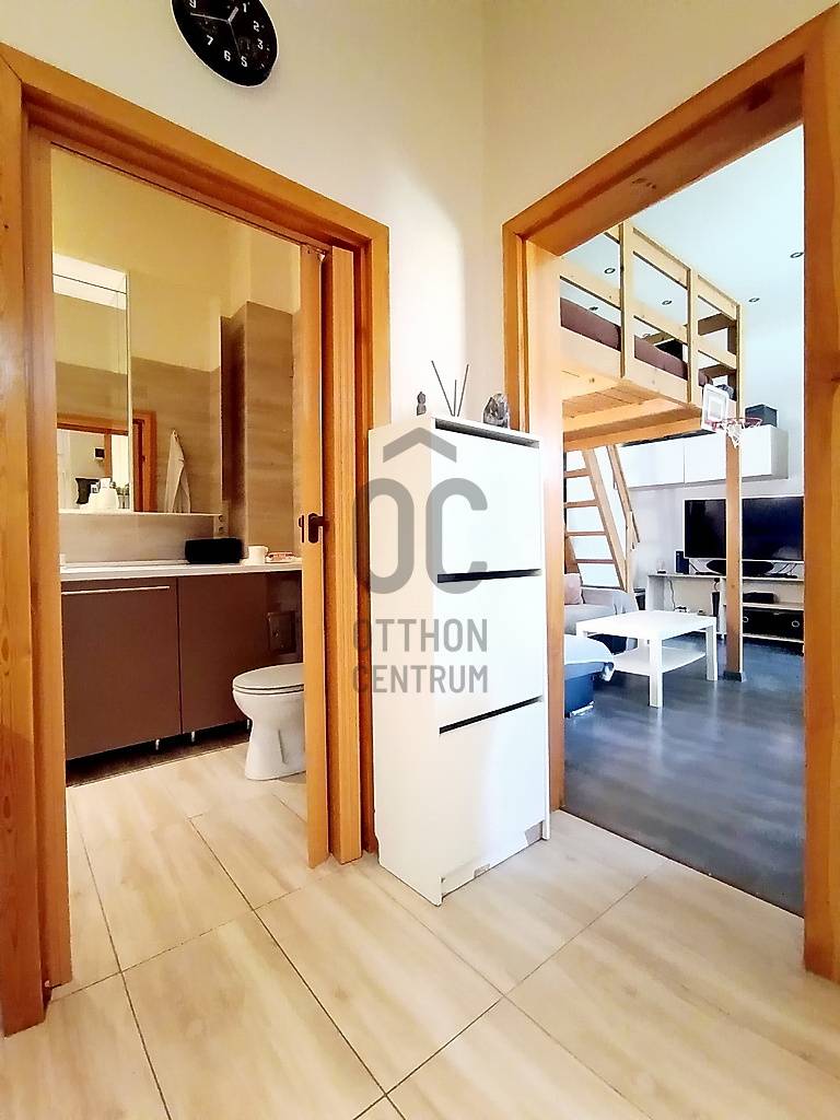 Egy reggeli kávézás / egy kellemes ebéd / egy kis délutáni szieszta / egy meghitt, gyertyafényes vacsora / egy sütögetős grill party a családdal, barátokkal a teraszon…??? Vagy esetleg egy kis pihenés / napozás / medencézés / kertészkedés a teljesen leválasztott, kizárólagos használatú saját udvaron...??? És mind ez egy csendes, nyugodt kertvárosi környezetben lévő, kívül-belül esztétikailag és műszakilag is pár évvel ezelőtt felújított, társasházi lakással a háttérben... Higgye el, hogy ez egyáltalán nem lehetetlen !!! :) Ha mindig is erre az életérzésre vágyott, akkor ne is keresgéljen / nézelődjön tovább, mert szerintem biztos, hogy megtalálta !!! :)IV., Újpest kertvárosi részén - a városközponttól is mindösszesen csak 2-3 perc sétatávolságra - a Lőrinc utcában kínálok eladásra egy kis létszámú, kulturált (csendes, barátságos, segítőkész) lakóközösséggel büszkélkedő, tégla építésű társasházban lévő, a mai kor igényeinek megfelelően kialakított, bútorozott és gépesített, 5 cm vastagságú külső (dryvit) hőszigeteléssel és egy energiatakarékos hűtő-fűtő klímaberendezéssel is tovább komfortosított (rezsicsökkentett), pár évvel ezelőtt esztétikailag és műszakilag is felújított és azóta is megkímélt állapotban lévő, keleti tájolású, közvetlen napsütötte (rendkívül világos), az előtte lévő 16 m2 nagyságú - teljes alapterületében fényáteresztő, UV szűrős polikarbonát tetővel fedett - teraszára és a további kb. 30-35 m2 nagyságú, saját, kizárólagos használatú, teljes mértékben elszeparált zöld kertjére / járdás udvarára panorámás - a földhivatali bejegyzés / tulajdoni lap szerint 35 m2 alapterülettel - de a nappaliban megépített 5 m2-es fekvőgalériának köszönhetően, a valóságban és használhatóságában is már 40 m2-es (!!!) alapterülettel büszkélkedő öröklakást, amelyhez még egy önálló, zárható, porszáraz, kb. 8 m2 alapterületű, téglaépítésű udvari tároló és egy kb. 15 m2-es fedett gépkocsi beállóhely is hozzá tartozik !!! :)A lakás - acélbetétes, több ponton záródó - felső világító ablakos biztonsági ajtaján belépve a praktikusan bútorozott, 2 m2-es előszobát is magába foglaló, teljes egészében beépített bútorokkal és gépesítéssel is (munkalapba épített 4 zónás elektromos főzőlap + külön beépített elektromos sütő, mikrohullámú sütő, teleszkópos (ki-be húzható) pára-, és szagelszívó berendezés, mosogatógép és fagyasztós hűtőszekrény) ellátott, kényelmes méretű (5 m2-es) konyhába érkezünk - ahonnan közvetlenül akár a 22 m2 alapterületű + 5 m2-es „hálószobaként funkcionáló” fekvőgalériával is büszkélkedő, laminált parkettával burkolt, két óriási üvegfelületű - közvetlen napsütötte / rendkívül világos - több légkamrás, hő-, és hangszigetelt műanyag ablakkal, parapetes kivezetésű gázkonvektorral, nagyon jól és kényelmesen bútorozható nappaliba vagy akár a kényelmesen / komfortosan kialakított, teljesen bebútorozott és egy automata mosógéppel is begépesített, egy nagy méretű fürdőkádnak és egy nagyon kényelmesen használható WC-nek is (az összesen 6 m2 alapterületén belül) praktikus helyet biztosító - egy a falra szerelt elektromos melegítő panellal külön befűthető - fürdőszobába jutunk át !!!Az ingatlanban történő közüzemi fogyasztások mérése és számlázása természetesen mind-mind saját mérőórákon keresztül, \"amennyit fogyaszt, annyit fizet\" alapon történik !!! A társasházon / lakáson belül a telekommunikációs szolgáltatások (nagy felbontású kábeltévé, nagy sebességű internetkapcsolat) is természetesen mind-mind igénybe vehető !!!A közös költség (a felújítási alappal, a szemétszállítási díjjal, a lakásbiztosítási díjjal és a társasház kezelés díjával együtt) mindösszesen csak 17.600,- Ft havonta !!!Az ingatlan IV., Újpest központjától (3-as metró, 28 féle (nappali és éjszakai) BKK-, és több távolsági (Volán) buszjárat, a 12-14-es villamosjárat, óvodák, bölcsőde, általános iskolák, gimnáziumok, orvosi rendelő, gyógyszertárak, önkormányzati hivatalok, vásárcsarnok (újpesti piac), kulturális központ (színház), élelmiszer boltok, posta és bankfiókok… kellemes sétával is mindösszesen csak 2-3 percnyire(!) található !!!Személygépjárművel rendelkezőknek a parkolás a társasház zárt udvarán belül kialakított, fedett (tetővel rendelkező) - ehhez a lakáshoz közvetlenül hozzátartozó, saját kizárólagos használatban lévő, kb. 15 m2 alapterületű - gépkocsi beállóhelyen, további gépjármű(vek) esetén közvetlenül a társasház előtti részen, vagy a környező közterületeken (utcákban) ingyenesen megoldott !!!Egyedülállóknak, életkezdőknek, újrakezdőknek, akár még a családalapító fiatal pároknak vagy - a társasház / lakás az akadálymentessége miatt - az idősebb korosztálynak is nagyon jó szívvel ajánlom !!! Ez a lakás a kiváló lokációjának, a folyamatosan karbantartott, jó esztétikai és műszaki állapotának, a rendkívül gyors és nagyon kedvező feltételekkel történő kiadhatóságának köszönhetően a befektetési céllal vásárlóknak is egyaránt kitűnő választás lehet !!!A lakás önálló helyrajzi számon nyilvántartott társasházi albetéttel, rendezett 1/1-es tulajdonjogi viszonnyal és teljes tehermentességgel rendelkezik! A lakás birtokba adása - az adásvételi szerződés megkötésétől számítva - maximum 2-3 hónapon belül biztosított!Éljen a lehetőséggel, jöjjön el és nézze meg személyesen, győződjön meg mindenről a saját szemével, kérdezzen bátran, beszélgessünk róla, tudjon meg mindent és szeressen bele… ;)Az