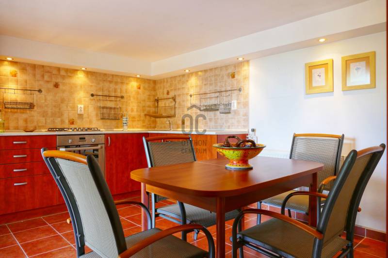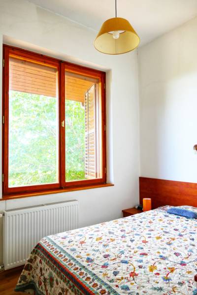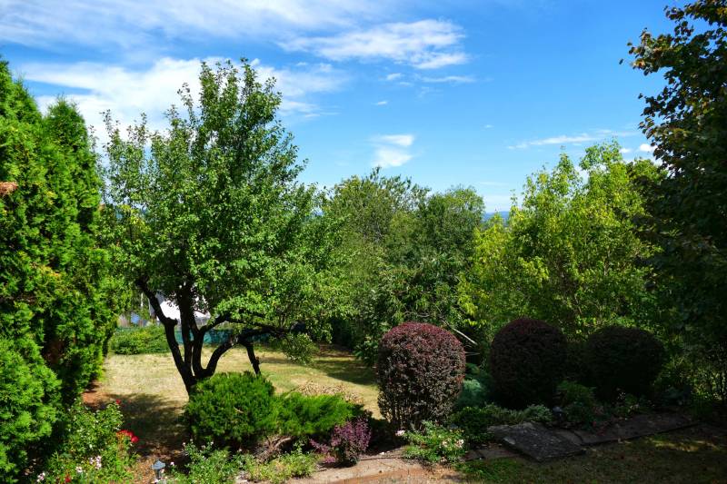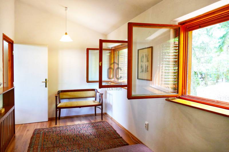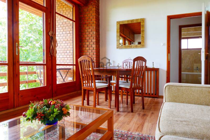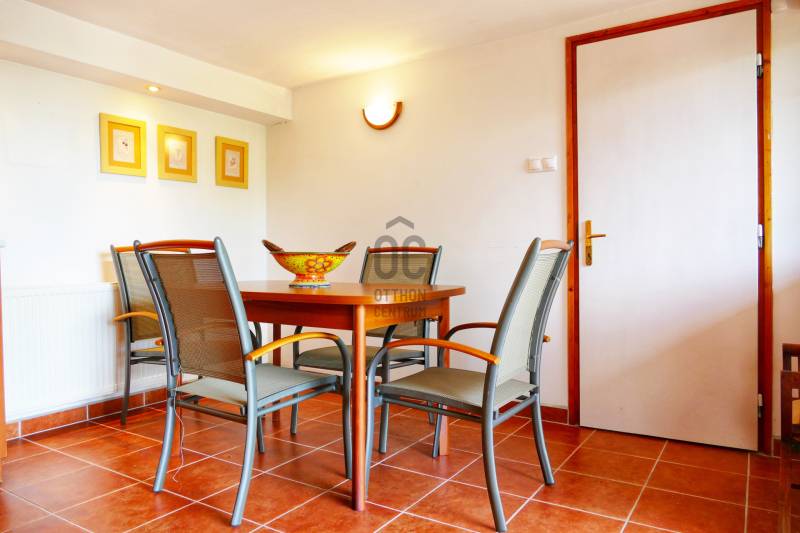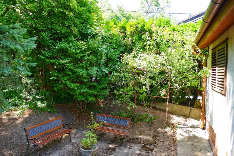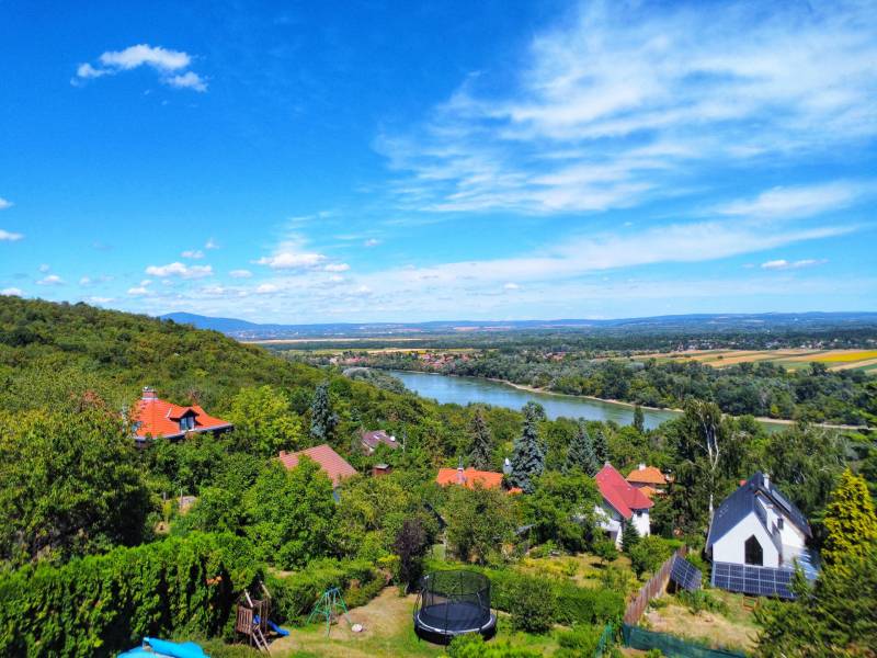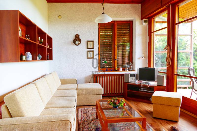 Szentendre, Boldogtanya belterületén, téliesített hétvégi ház eladó!TELEK:- 959 nm- panorámás- csendes környék- aszfalt úton megközelíthető- bekerített minden oldalról- autóbeálló , díszkő burkolatú- rendezett, ápolt kert- előkertben fenyőfák adják az árnyékot a kövezett terasz részre- a telek hátsó oldala enyhén lejtős,- oldalkert részben örökzöldek, gyümölcsfák ( cseresznye, mogyoró és szilva) , cserjék, évelő virágok- kert jelentős része füvesítettHÉTVÉGI HÁZ : - 1970-es években épült- tégla építésű- 2006-ban teljes körű felújítást végeztek a tulajdonosok.- a ház megkímélt, újszerű állapotban van- két különálló részből áll- a lakótér két szoba, nappali, konyha, fürdőszobából áll- 55 nm- belmagassága 280 cm-beépített bútor az előszobában- a nappaliból és az egyik hálószobából csodálatos panorámában lehet részünk.- Nappaliból egy 11,5 nm fedett erkélyre juthatunk ki.-parketta burkolat , fürdőszobában , konyhában, előszobában járólap- gáz cirkó fűtés, radiátorral- télen temperálva van a hőmérséklet- nyílászárók fából- nagy ablakokon a nappaliban redőny, a kisebb ablakokon zsalugáter- kert kapcsolatos szint 35 nm két részből áll, az egyik rész 16 nm, ebből kb 5 nm zuhany kabinos fürdőszoba, valamint egy sport szoba ( 11 nm) oldalfal hosszúságban beépített szekrényekkel a másik rész ( 20nm) is két helyiségből áll, egy konyha- étkezővel, és egy nagy tároló, beépített bútorokkal, szekrényekkel- terasz és kert kapcsolat - a ház teljes bútorzattal eladó ( néhány személyes tárgy kivételével) - Keleti fekvésű |