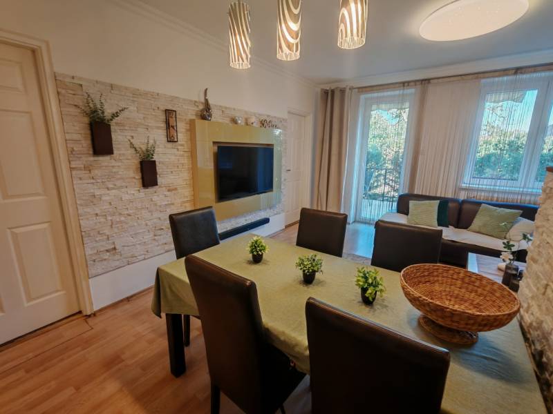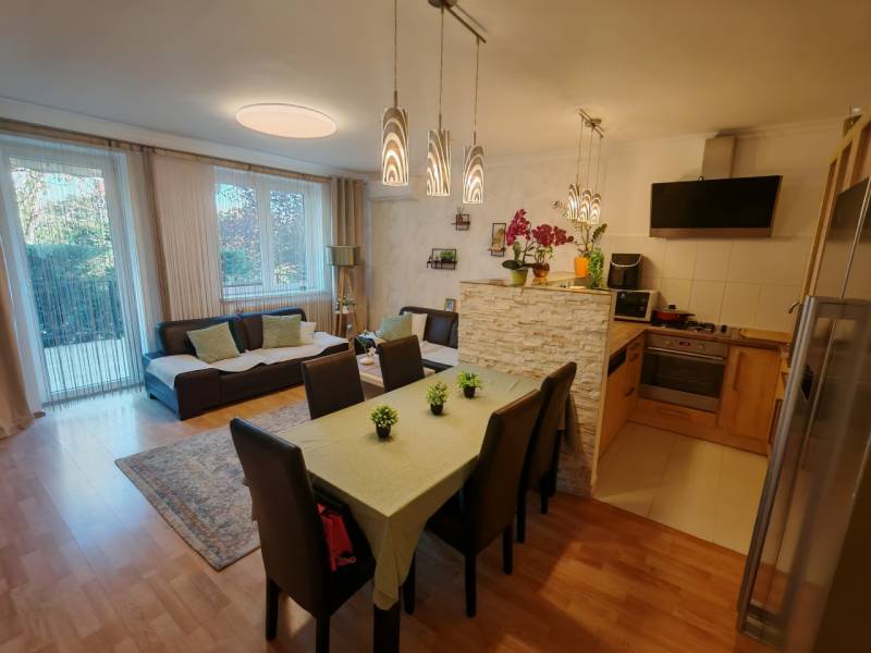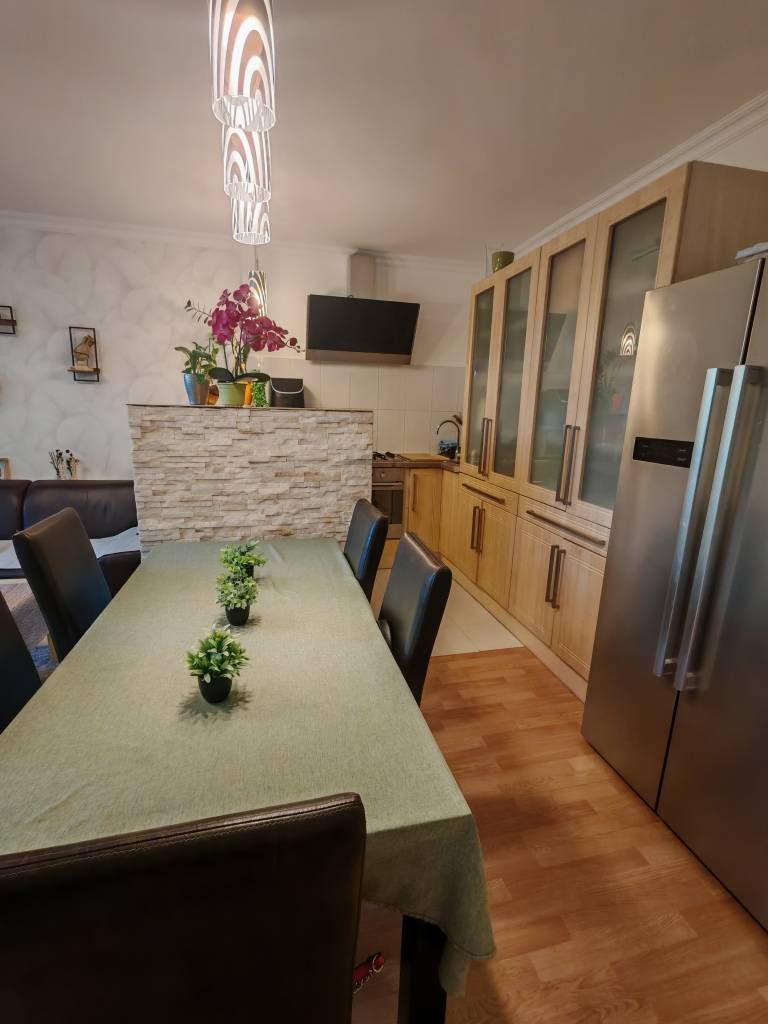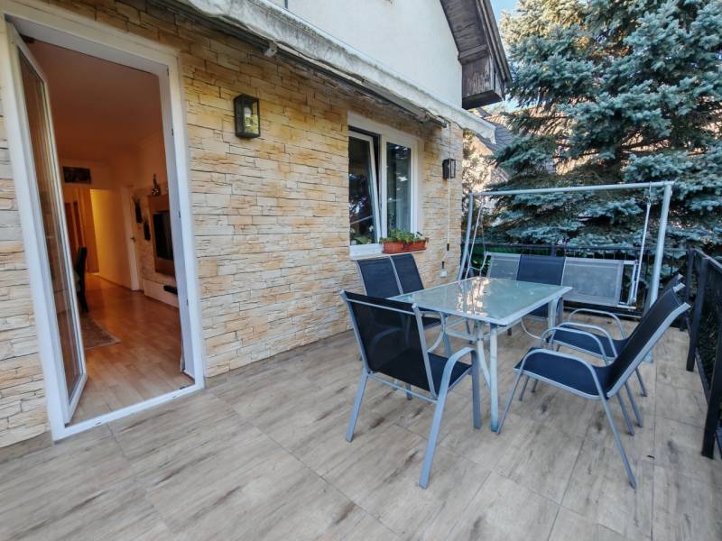 Csak nálunk!Otthon Start hitel is igényelhető!Csömör, Ibolya utca – családbarát ikerház lakás saját kerttelBudapest XVI. kerületének szomszédságában, Csömör csendes utcájában eladó egy 1990-ben épült, tégla ikerház egyik lakása.Az ingatlan nettó 89 m² lakótérrel rendelkezik, amelyhez tartozik egy 45 m²-es garázs és mosókonyha szint, valamint egy 24 m²-es terasz, amely közvetlenül a nappaliból nyílik.Belső elrendezése:-Előszoba – 5,13 m²-Közlekedő – 5,1 m²-Amerikai nappali + étkező – 26,8 m²-Konyha + étkező – 9,18 m²-Szoba – 9 m²-Szoba – 11,1 m²-Szoba – 12 m²-Szoba – 12 m²-Fürdő – 8,13 m²-WC – 1,85 m²-Terasz – 24,1 m²A fő falak 50 cm vastag téglából épültek szigetelés nincs,de nem indokolt,mert kiváló a hőtartása az ingatlannak.Műanyag nyílászárók 2 réteg üveg 5 légkamra. Gázkazán a mosókonyhában nem a lakótérben ,radiátoros fűtéssel.2 db inverteres klíma 320 m² saját kert, amely a ház mögött helyezkedik el, így nyugodt, intim hangulatot biztosít.Garázs + 3 felszíni autóbeálló.Iker szomszéd lakás az emeleten helyezkedik el nyugodt csendes család kiváló hangszigetelés ügyvédi megosztási szerződés van az ingatlanhoz.Hitelezhető az ingatlan!Az kertkapcsolatos lakás ideális választás lehet családok számára, akik Budapest közelségében, mégis nyugodt, kertvárosi környezetben keresnek otthont.Kiváló közlekedés.Jöjjön el nézze meg tegyen ajánlatot!I.V. |