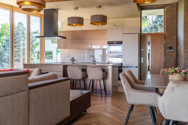 Egy ingatlan, amely újradefiniálja a prémium otthon fogalmát: háromszintes ikerház-rész lifttel, pazar panorámával és kiemelkedő minőséggel. Üdv itthon! RÖVID ÖSSZEFOGLALÓIII. kerület Testvérhegyen, Domoszló útján eladó ez a 2024-ben épült ikerház jellegű, jogilag társasházként nyilvántartott kivételesen magas minőségű lakás. A telek össz. területe 2030m2, melyre 2 épület, 2-2 lakással épült. A ház nyélen keresztül megközelíthető, így az utcától védett, csendes és privát. A kert megosztásra került, így a lakáshoz tartozik egy 111m2-es privát kertrész. A lakás alapterülete a garázsszinttel és a beépített terasszal együtt 206m2, melyhez tartozik egy 48m2-es tetőterasz csodás zöld panorámával, illetve a hálószobákból nyíló további 30m2 erkély. Három szinten 4 háló, ebből háromnak saját fürdője van, dupla állásos garázs elektromos töltővel. A beruházó magának tartotta meg, saját ízlése és igényszintje szerint fejezte be. Eddig jól hangzik? Alább részletesebben a további információk.LOKÁCIÓ – TESTVÉRHEGYA Domoszló út környezete Testvérhegy egyik legkedveltebb része – egy olyan kertvárosi szeglet, ahol a családok nyugalmat, biztonságot és minőségi életet találnak, miközben a főváros pezsgése is karnyújtásnyira van.Itt reggelenként friss levegő madárdal és hegyi panoráma látványa fogad, de iskola, bolt, kávézó vagy uszoda sincs több mint pár perc autózásra vagy sétára. A környék rendezett, gondozott, tele van családi házakkal, óriási fenyőkkel és meglepően jó közösséggel. A Domoszló út ugyan csendes, de közlekedési szempontból kiválóan elérhető: az M0-s gyorsforgalmi út, az Árpád-híd vagy épp Békásmegyer vasútállomása is rövid idő alatt elérhető autóval.Kiváló infrastruktúra – Minden, ami a család kényelméhez kellIskolák, óvodák: A környék kiemelkedő oktatási lehetőségeket kínál, köztük a népszerű Csillaghegyi Általános Iskola, a Bárczi Géza Általános Iskola vagy a Waldorf Óvoda és - Iskola is rövid autóútra található.A közeli Auchan, Decathlon és OBI áruházak mellett elérhető a Római-parti kis piac, a Lajos utcai termelői piac, vagy épp a helyiek egyik kedvence, a Csillag Center, ahol minden kéznél van – patika, posta, pékség és kávézó is. Több magánorvosi rendelő, gyermekorvos és a Szent Margit Kórház is gyorsan elérhető szükség esetén.A környék valódi ereje nemcsak a praktikum, hanem az életminőség:A Római-part 10 percen belül elérhető – bicikliúttal, éttermekkel, fagylaltozókkal és a Dunára néző stégekkel, ahol egy családi délután is nyaralásnak tűnik. A Duna-parti sétány, a Kossuth Lajos üdülőpart és a Fellini Római Kultúrbisztró a helyiek kedvenc találkozóhelyei – kulturális programokkal, élő zenével, naplementés borozásokkal. Csillaghegyi Árpád Forrásfürdő: teljesen felújított, egész évben működő wellness- és élményfürdő – beltéri medencékkel, szaunavilággal, családi élményzónával. Hármashatár-hegy vagy a közeli Kevély-erdő pedig tökéletesek egy hétvégi túrázáshoz, családi piknikhez vagy kutyasétáltatáshoz.A HÁZA ház friss, 2024-es átadással, gondos tervezés és kivitelezés eredményeként jött létre. Az ingatlan már az első pillantásra lenyűgöz: a karakteres, mégis elegáns homlokzat, a nagy üvegfelületek és az egyedi formavilág azonnal kiemelik a tömegből. Az épületben saját, privát lift található, amely megkönnyíti a mindennapokat – generációkon átívelő otthonná is válhat.A három szinten elosztott lakótér belsőépítészetileg is kivételes: letisztult, mégis meleg enteriőr, prémium burkolatok, időtálló anyaghasználat, és minden apró részletre kiterjedő figyelem jellemzi. A nappali tágas és világos, közvetlen teraszkapcsolattal – a panorámás kilátás pedig minden évszakban páratlan élményt nyújt. Magazinba illő en-suite hálószobái privát szférát biztosítanak a család minden tagja számára.Igény szerint szívesen küldök részletes műszaki leírást, amely tartalmazza a az épült általános jellemzőit, a épület-szerkezeti elemek leírását, műszaki specifikációkat, épületgépészeti és elektromos leírást, Smart Home csomag (Okos Otthon) leírást, stb.Parkolás - 2 állásos garázsban, elektromos töltővelKiknek ajánljuk?Ez az ingatlan tudatosan családok számára készült: akik értékelik a természet közelségét, a csendes, biztonságos környezetet, ugyanakkor nem szeretnének kompromisszumot kötni a városi kényelemmel és a minőséggel. A liftes kialakítás többgenerációs együttélést is lehetővé tesz, míg a belső tér rugalmassága alkalmazkodik a változó élethelyzetekhez is.Szívesen részt venne egy élményekkel teli, minden érzékszervre ható ingatlan bemutatón? Csak a megadott számot szükséges tárcsáznia hozzá!----------------------------------------------Díjmentes, bankfüggetlen hiteltanácsadással támogatjuk vevő ügyfeleinket a számukra legelőnyösebb finanszírozási döntések meghozatalában. Opcionálisan igénybe vehető kiegészítő szolgáltatásainkkal – mint ügyvédi közreműködés, energetikai tanúsítvány vagy villamos biztonsági felülvizsgálat – teljes körű szakmai támogatást nyújtunk az adásvétel folyamatának minden egyes lépésénél.----------------------------------------------A hirdetésben szereplő információk tájékoztató jellegűek. A tévedés és az árváltoztatás jogát fenntartjuk. Az esetleges elírásokért és technikai hibákért felelősséget nem vállalunk. |