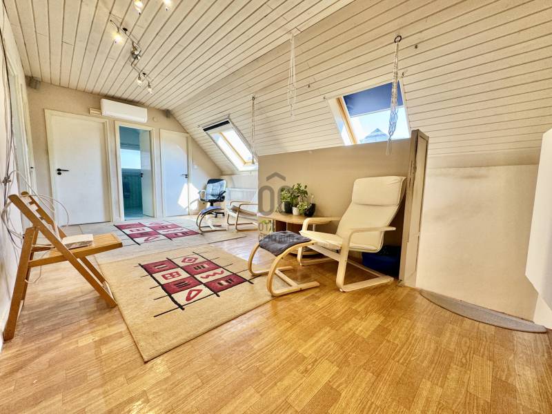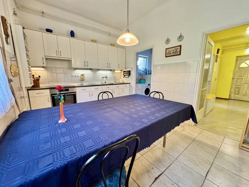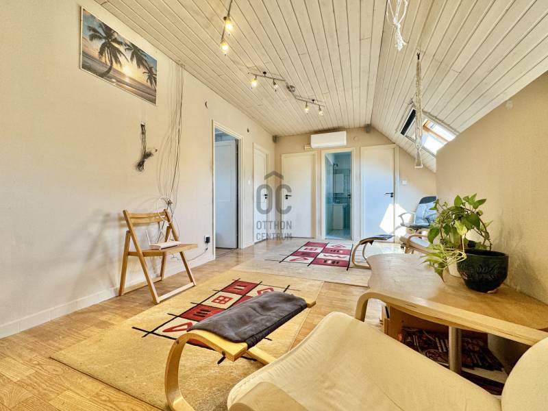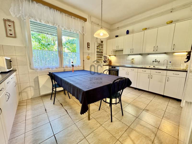 Egy elismert építész saját családjának álmodta meg.Nem akármilyen házról van szó: olyan szakember otthonáról, aki a kerületben számos lakóház és lakás terveit jegyzi. Amikor egy építész magának tervez, nem köt kompromisszumot sem anyagban, sem szerkezetben – ez a ház ennek a gondosságnak a kézzel fogható eredménye.A jelenlegi elrendezés szerint 6 szoba áll rendelkezésre ,de a terek kialakításának köszönhetően könnyedén bővíthető akár 9 szobává is .A téglaépítésű, zsindelytetős ház két szintje ideális választás kétgenerációs együttélésre: külön lakrészek, mégis egy közös otthon. A nagyszülők, szülők és gyerekek úgy élhetnek együtt, hogy mindenkinek megmarad a saját élettere.A belső terek világosak és barátságosak: a nagy könyvespolcos nappali igazi központja a háznak, a szobák napfényesek és jól bútorozhatók. A két szinten külön konyha és több fürdőszoba is helyet kapott, így a családtagok kényelmesen, egymást nem zavarva élhetik a mindennapokat.Műszaki tartalom:•Gáz cirkó fűtés puffer tartállyal kombinálva•Alternatív fűtés vegyes tüzelésű kazánnal•Réz villanyvezetékek az emeleti szinten•Ipari áram a garázsban – műhelyhez, gépekhez vagy elektromos autó töltéséhez ideális•Két klíma a nyári komfortértAz udvar térkövezett, a dupla garázsban két autó fér el, a szabadban pedig további kettő parkolhat. A kert nemcsak tágas, de igazán szerethető is: virágos ablakok, zöld fák, bokrok, és egy öreg diófa, amely árnyékot ad a nyári napokon, s köré gyűjti a családot, ahogy egy igazi otthonhoz illik. A fedett kerti konyha hosszú asztallal és sütővel pedig tökéletes helyszíne a grilleknek és baráti összejöveteleknek.A 1009 m²-es telek szabad teret ad a fantáziának – játszótér, konyhakert, medence, vagy egyszerűen csak egy árnyékos pihenőkert is könnyedén kialakítható rajta.Ez a ház többről szól, mint falakról és tetőről. Ez egy hely, ahol a családi történetek gyökeret vernek – ahogy a kert diófája is teszi, évről évre erősebben. |
