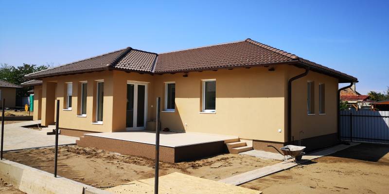 Egyszintes családi ház rendkívül magas műszaki tartalommal! Gyál központjához közel, csendes, új építésű, 123 m2-es, nappali + 4 szobás, 2 fürdőszobás, dél-nyugati tájolású családi ház 640 m2-es telekrésszel 2026 nyári végi átadással kulcsrakészen eladó. Csúcstechnológiájú Daikin hőszivattyú biztosítja a padlófűtést, a mennyezet hűtést-fűtést és a meleg vizet. A nappaliban egy inverteres hűtő-fűtő klíma is kialakításra kerül. Elektromos alumínium redőnyök szúnyoghálóval. Riasztó. Elektromos kapu, garázsajtó. H tarifa. 1x32A és 3x20A. Referenciaház megtekinthető. A fotókon egy rövidesen átadásra kerülő ingatlan látható. Az ingatlant csak irodánk kínálatában találja.Összközműves aszfaltozott, széles utca. Közelben iskola, óvoda, szolgáltató egységek, üzletek. Jó tömegközlekedés.Vasbeton sávalap, 30 cm-es Porotherm tégla főfalak 12 cm-es dryvit hőszigeteléssel. Műanyag homlokzati nyílászárók 3 rétegű üveggel. Fa födém 30 cm. kőzetgyapot hőszigeteléssel. Bramac cserép héjalás. Festés, burkolás, szaniterek, belső ajtók választhatók. A hideg, meleg burkolatokat 6000 Ft./m2 árig, a belső ajtókat 75000 Ft./db. árig tartalmazza a vételár. Mosdó csaptelep: 25 ezer Ft., mosdó: 25. ezer Ft., Kádtöltő csaptelep: 40 ezer Ft., Fürdőkád: 100 ezer Ft., Zuhany csaptelep szett: 40 ezer Ft. Zuhanykabin épített zuhanyhoz: 200 ezer Ft., WC csésze: 25 ezer Ft. (beépített tartályos wc-k kerülnek kialakításra)Magyarország piacvezető hitelközvetítője által egyedi kamatkedvezményekkel és bankfüggetlen, díjmentes hitelügyintézéssel is segítjük vásárlását. Hívjon bizalommal! |